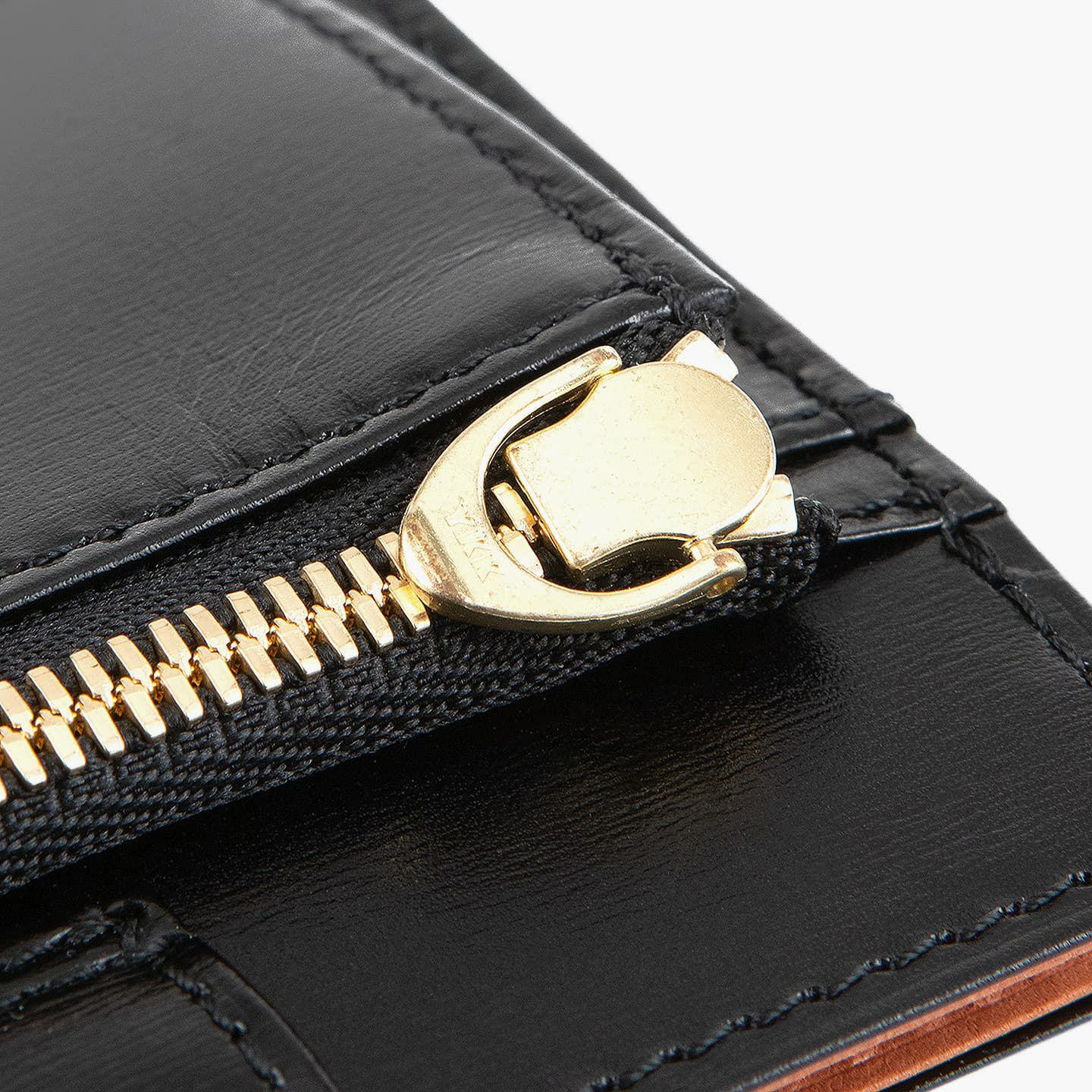 ファスナーは、個々のエレメント全面に入念な磨きをかけた、滑らかなYKKエクセラを採用。小銭入れの使用時にストレスが掛からないように、スペースがなくてもしっかり摘むことができる薄くて小さなスライダーを装備しています。ファスナーの金具には、美しく輝く本金メッキ加工を施しているので、高級感と統一感を醸し出します。