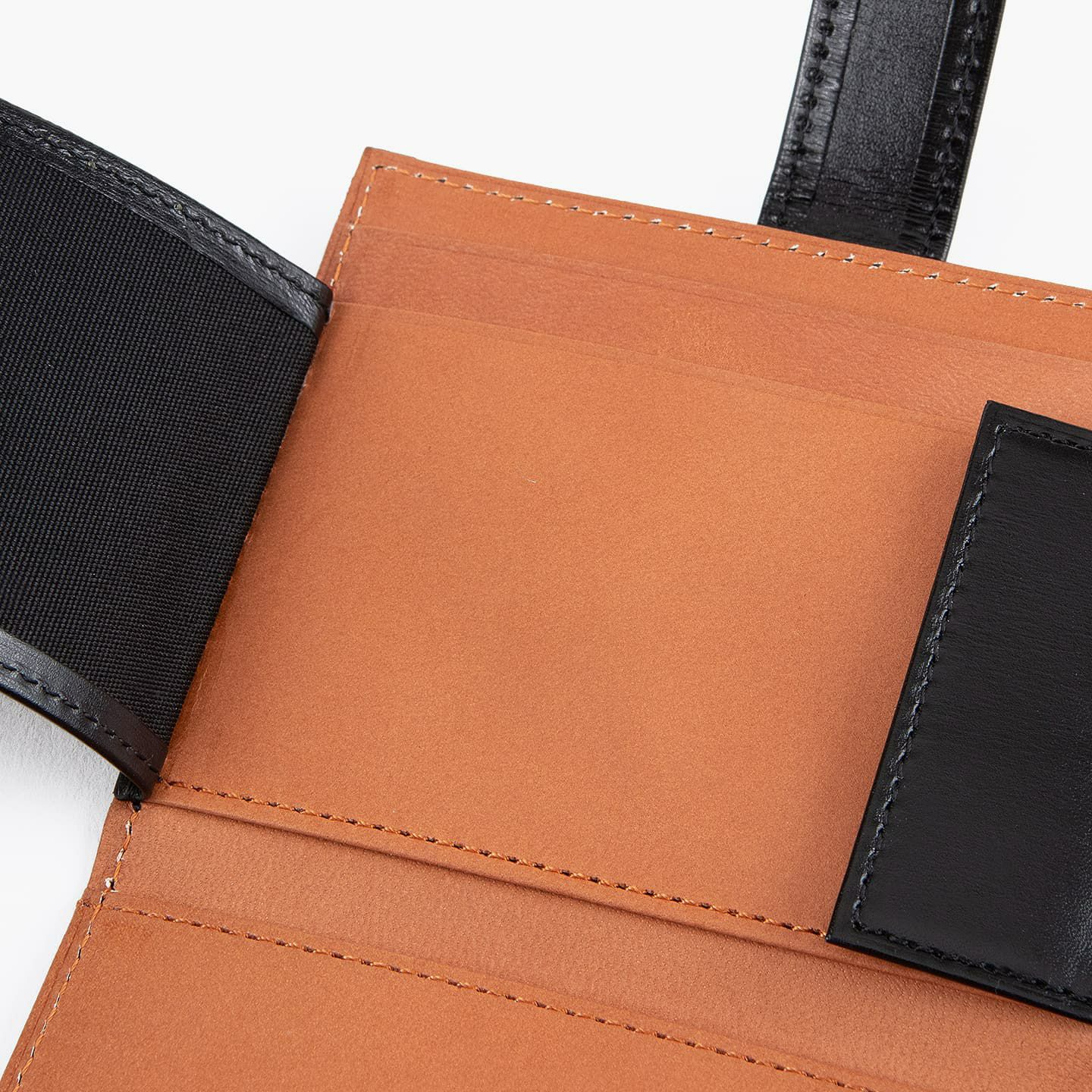 内装の生地には、アウトドア用品などにも使われる「コーデュラナイロン」を採用。一般的に、財布などでの使用は少ないですが、ナイロンの7倍もの強度を誇る耐久性と、優れた耐水性を兼ね備えています。
