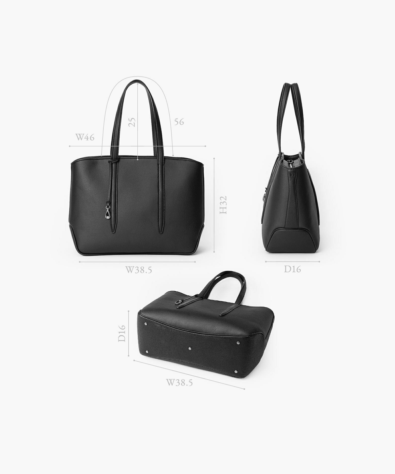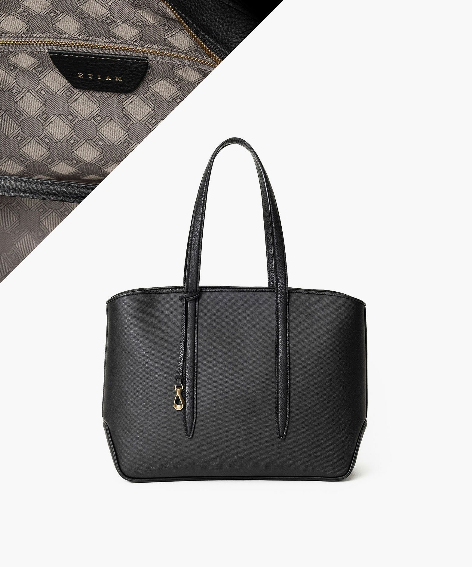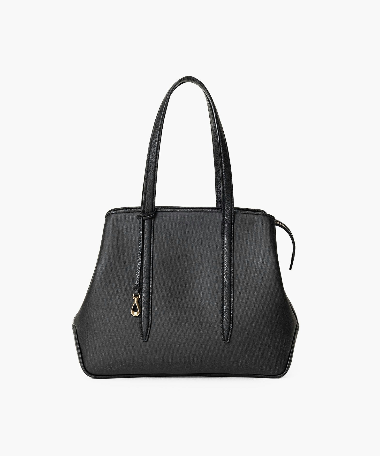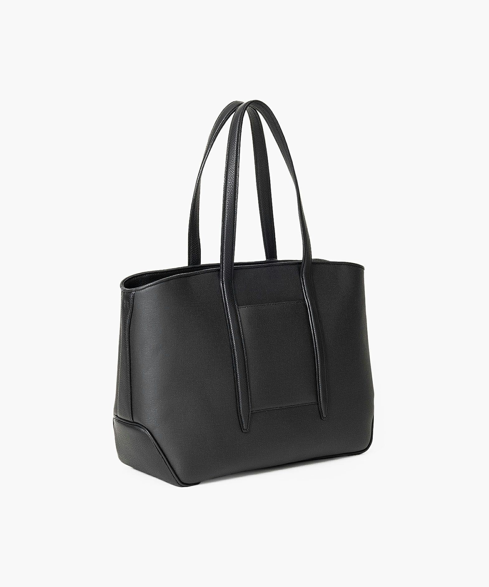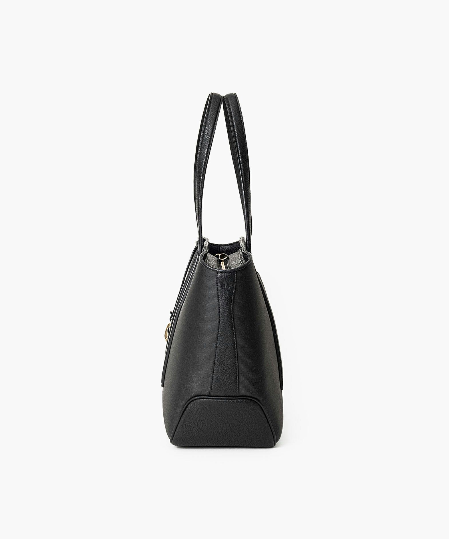 メイン素材の「キャンバス生地」表面に、墨黒のポリウレタン加工を施し、高級感あふれるレザーのような質感を纏わせた、ファスナートートバッグ(L)“Flexi”。独特の風合いを醸し出すとともに、生地目を残しながら汚れが目立ちにくいのも特長で、シルエットを強調するようにレイアウトされた「シュリンクレザー」が、さらに味わいを引き立てながらスタイリッシュな印象を演出。B4サイズ・15インチノートPCを入れられる優れた収納力とともに、荷物が少ないときにはマチを内側に折り畳んでコンパクトにできる設計も魅力。2通りのシルエットを用途に応じてフレキシブルに楽しむことができ、季節を選ばずビジネスにもプライベートにもコーディネートしやすい佇まいが、大人のセンスを満足させてくれる。