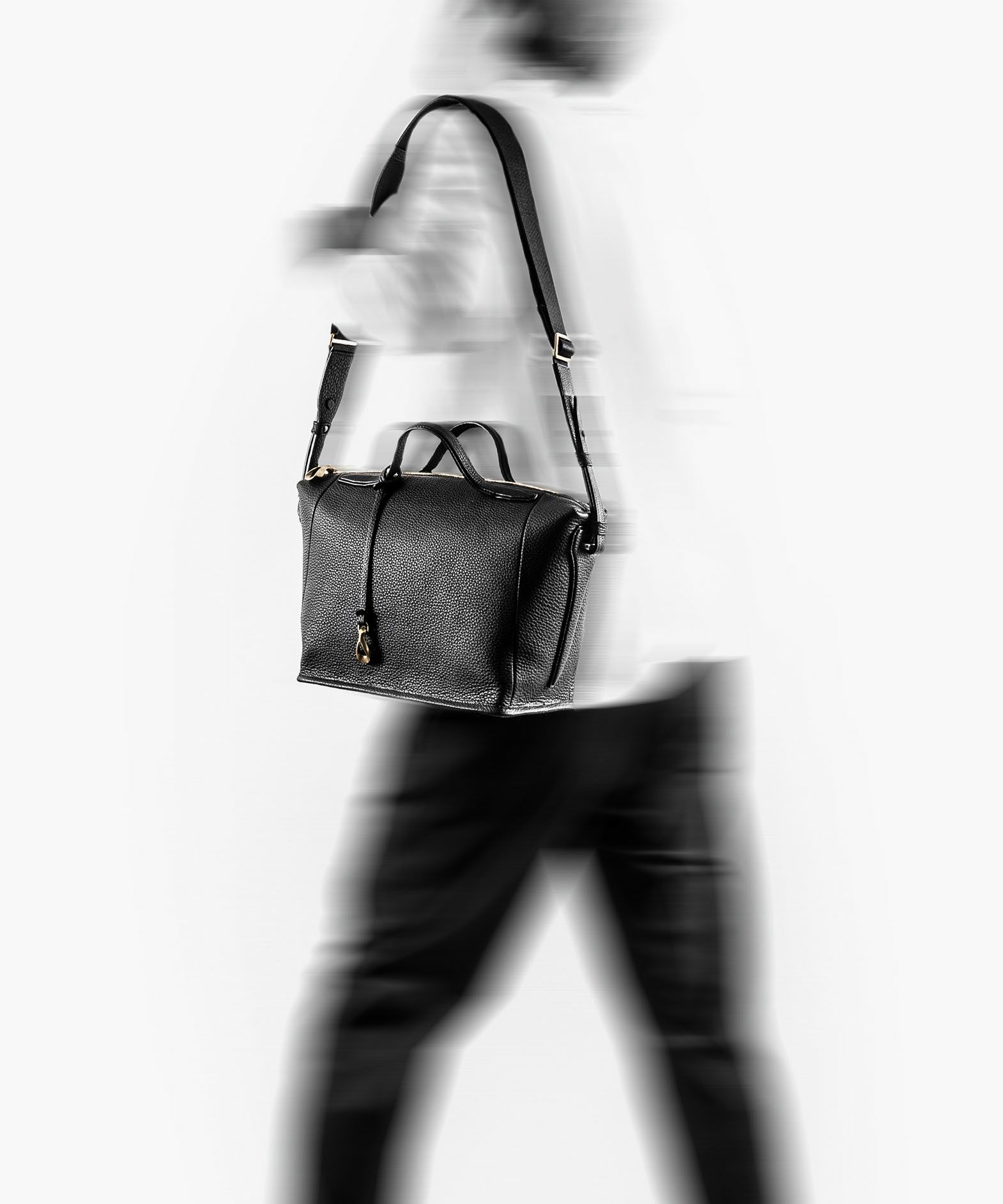 手持ちする上品なスタイルと、肩掛けする軽快なスタイルを融合させ、さらなる使いやすさを引き出す、ボストンショルダーバッグ“Inspire”。シボ感が魅力的な「シュリンクレザー」を纏わせた、ボディ前面と背面のデザインを統一させて、表裏を決めつけない使い勝手の良さも魅力。ボディ上部を底面の横幅よりも長く設計することで、ファスナーが大きく開けられるとともに、肩掛け時には下へと柔軟にたわむ芯使いの工夫も。その際に意外と見えてしまう底面は、しっかりとした構造を追求し、歪まない美しいシルエットへと昇華。ハンドルを設けた上面は、緩やかなアーチ状に膨らませ、持ちやすい快適さを創出。自分らしく2WAYを楽しみながら、自分好みのスタイルで使いこなせ、普段使いを洗練させてくれる。