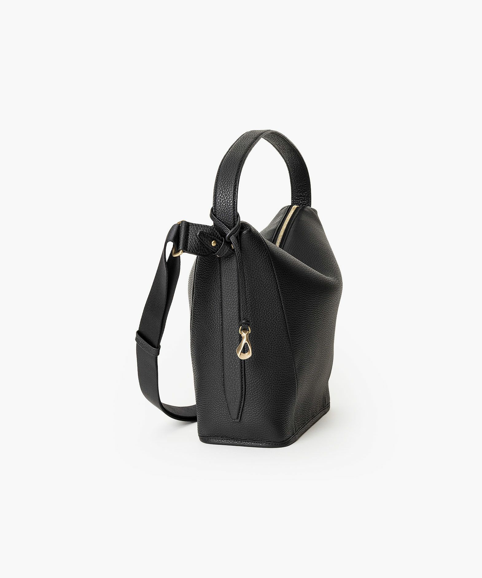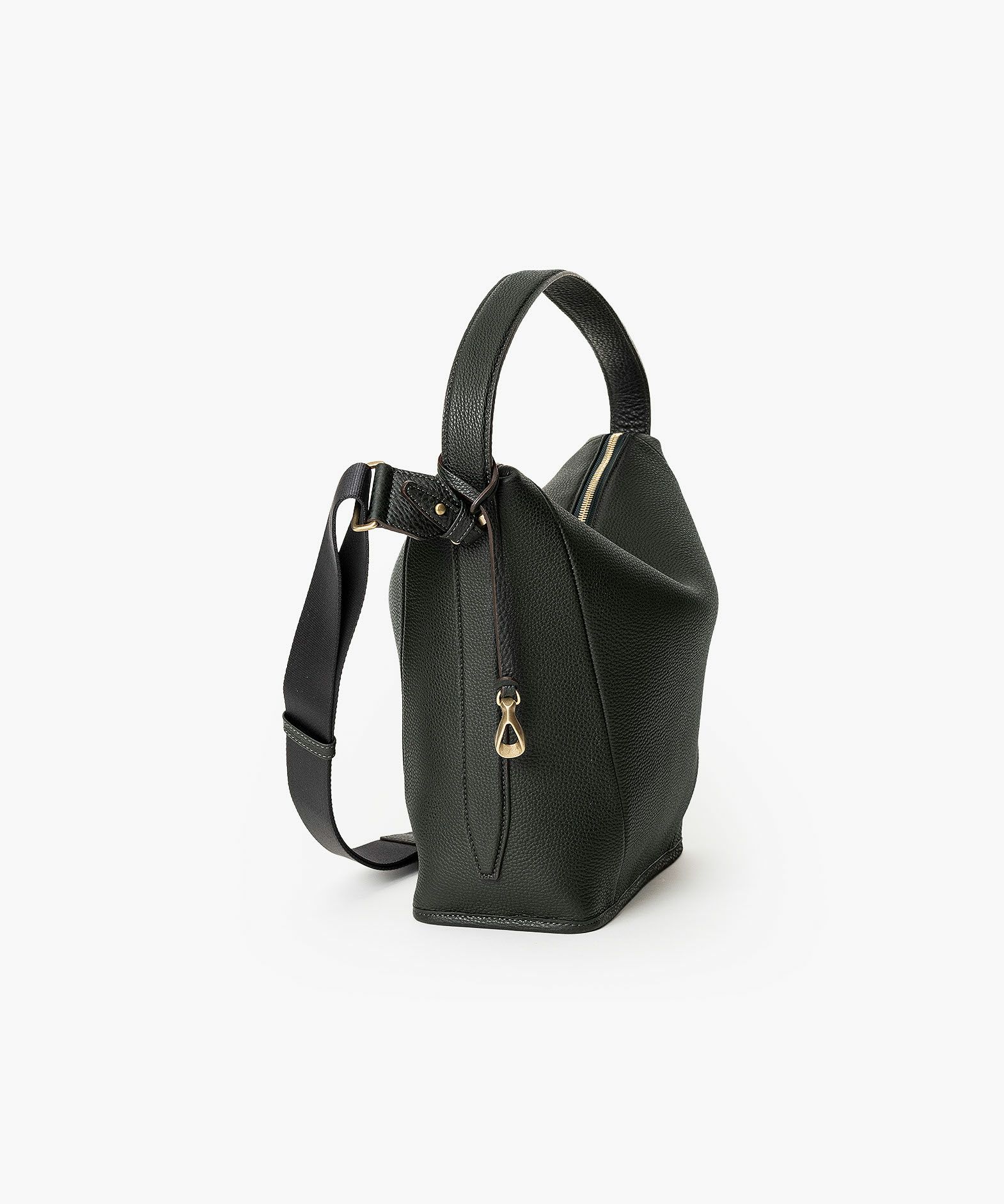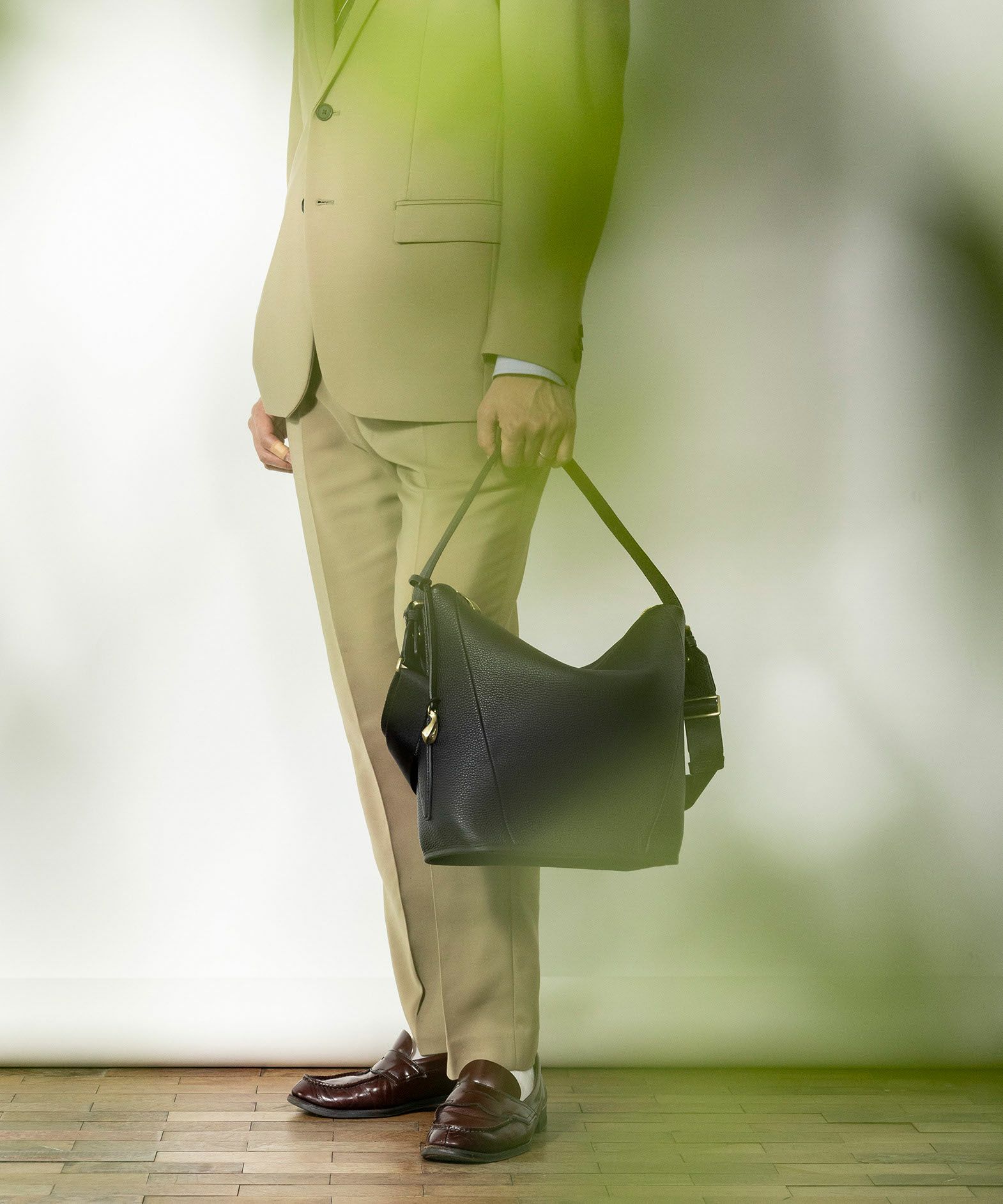 手持ち・肩掛けができる30mm幅レザーハンドルと、斜め掛けもできる38mm幅ショルダーベルトを融合させた、2WAYショルダーバッグ“Union”。シボ感が魅力的な「シュリンクレザー」を纏わせた、ボディ両面の継ぎ目が、緩やかなカーブを描きながら立体的なシルエットを創出。裏面に芯材を施すことで、もちもちとした弾力感とともに、ハンドルを持ったときに上部がたわんで美しいラインへ。取り外しできるショルダーベルトの接続部に採用した真鍮金具が、デザインの上品なアクセントになりながら、斜めに配置させたことで、ボディバッグとして持ち歩くときに体に寄り添わせてフィット。多様なコーディネートにも合わせやすく、自在に持ったり掛けたりできる自由度が、こなれた大人感を演出してくれる。