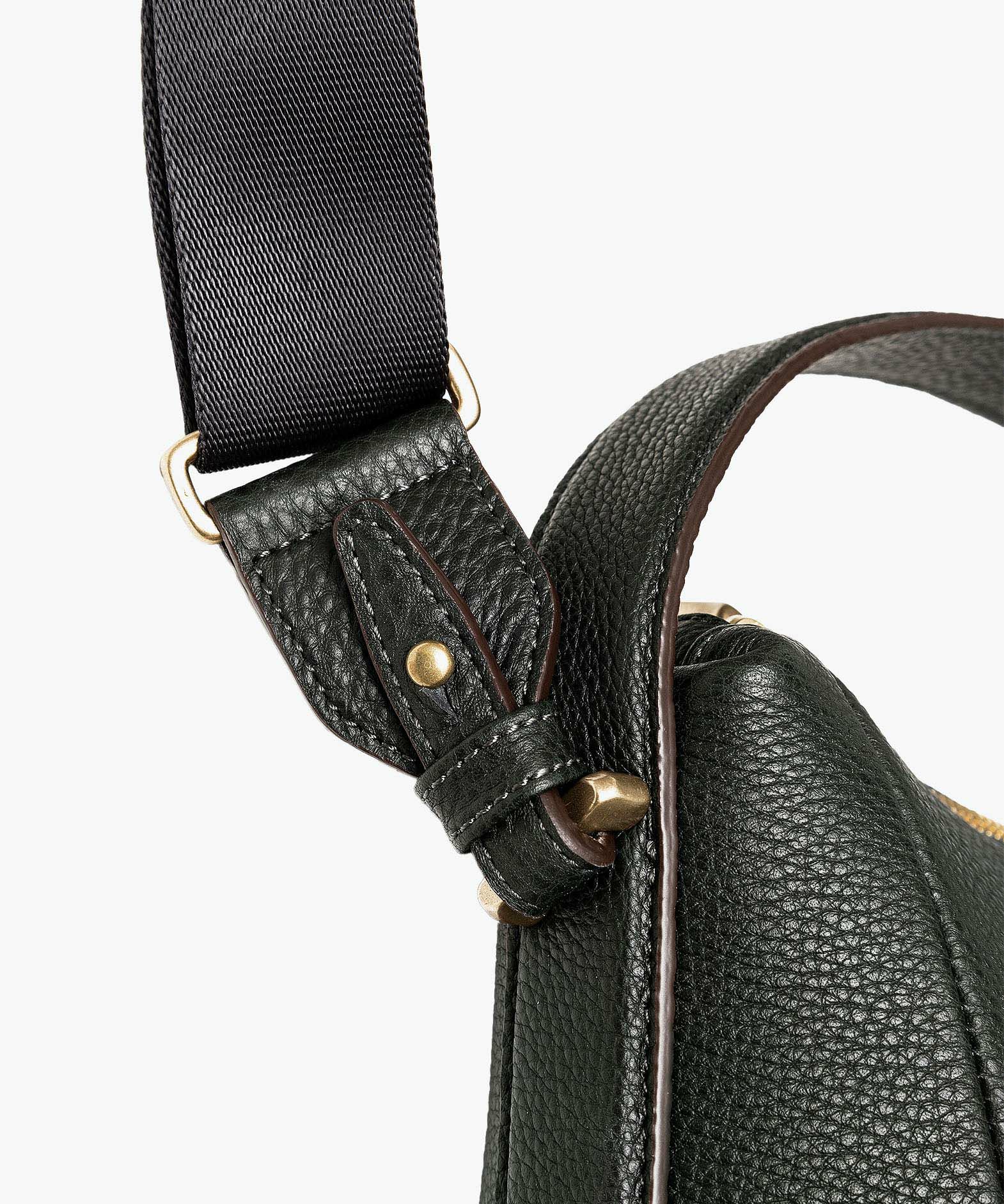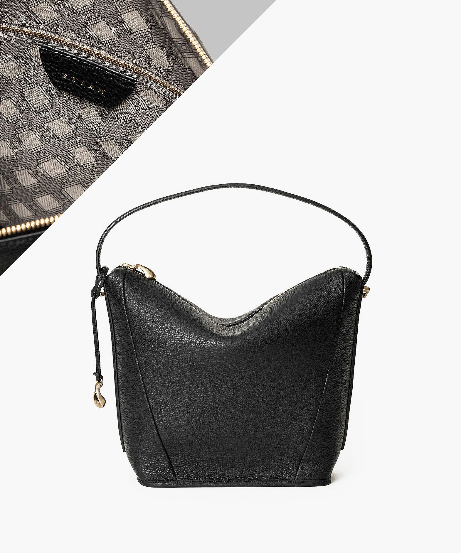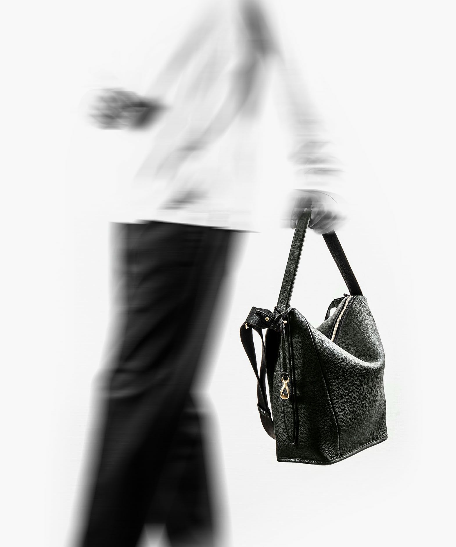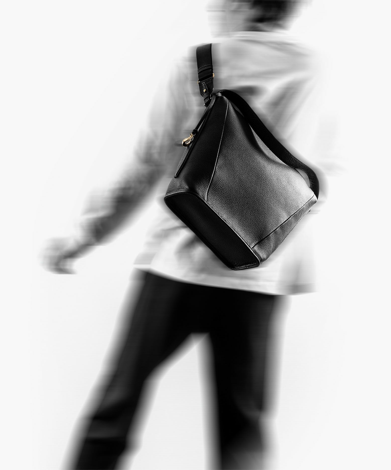 手持ち・肩掛けができる30mm幅レザーハンドルと、斜め掛けもできる38mm幅ショルダーベルトを融合させた、2WAYショルダーバッグ“Union”。シボ感が魅力的な「シュリンクレザー」を纏わせた、ボディ両面の継ぎ目が、緩やかなカーブを描きながら立体的なシルエットを創出。裏面に芯材を施すことで、もちもちとした弾力感とともに、ハンドルを持ったときに上部がたわんで美しいラインへ。取り外しできるショルダーベルトの接続部に採用した真鍮金具が、デザインの上品なアクセントになりながら、斜めに配置させたことで、ボディバッグとして持ち歩くときに体に寄り添わせてフィット。多様なコーディネートにも合わせやすく、自在に持ったり掛けたりできる自由度が、こなれた大人感を演出してくれる。