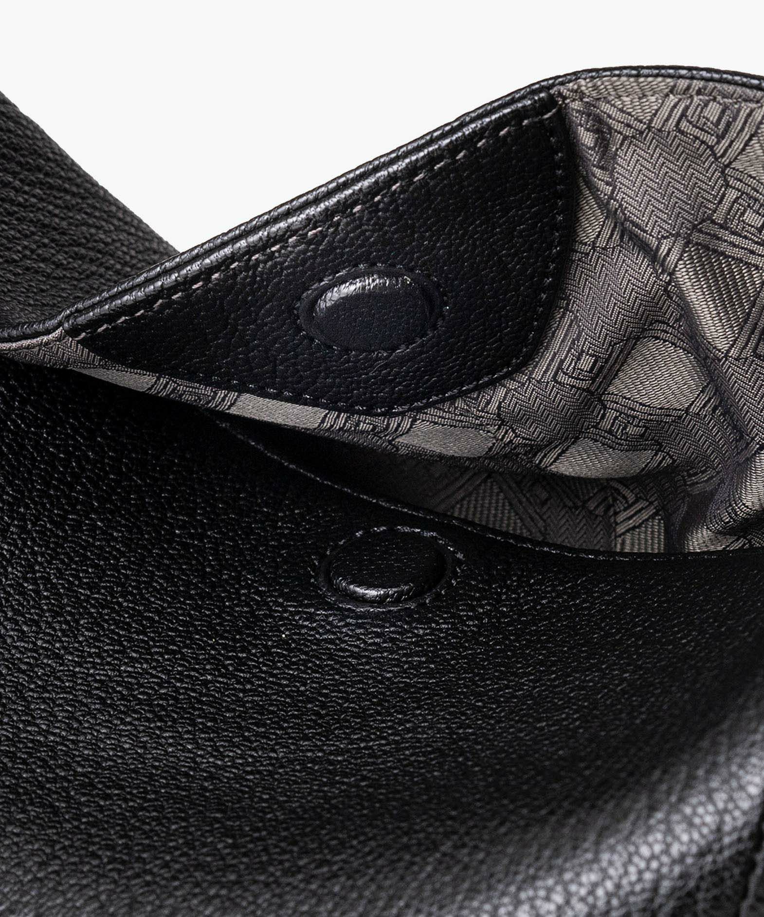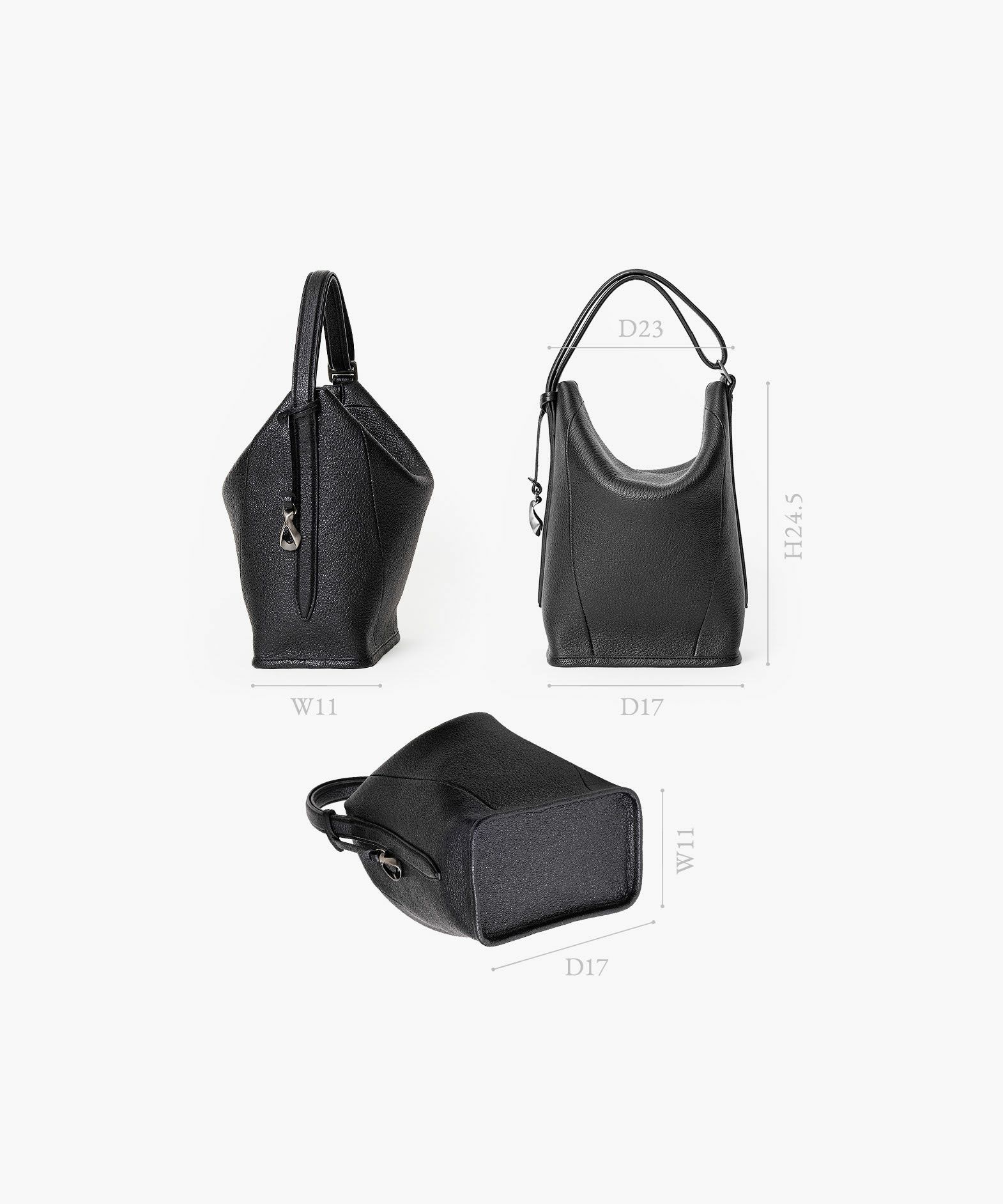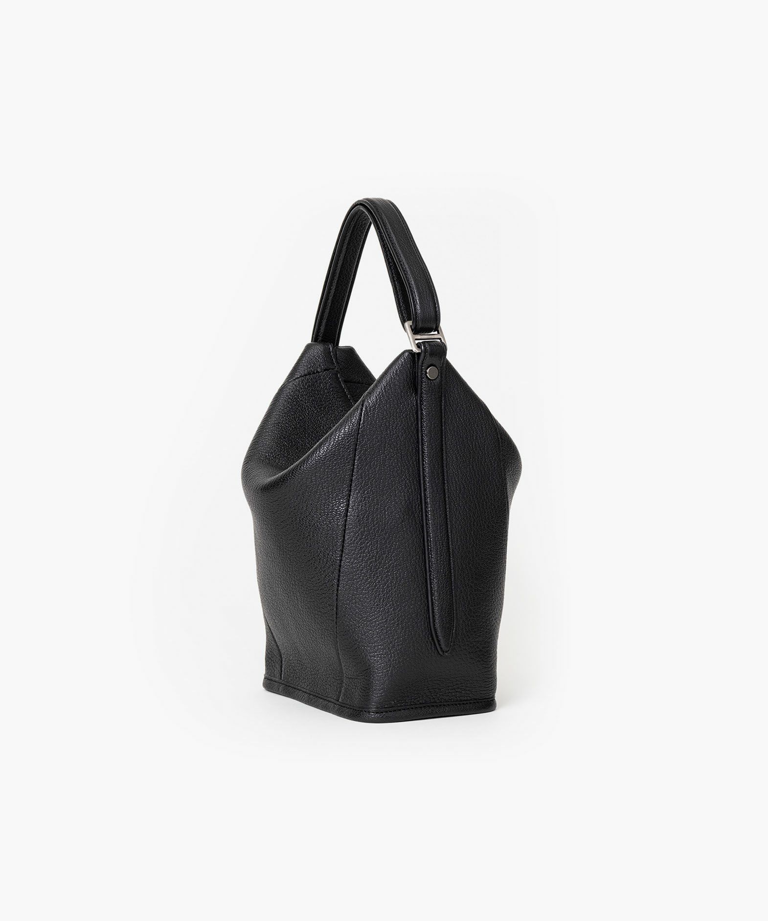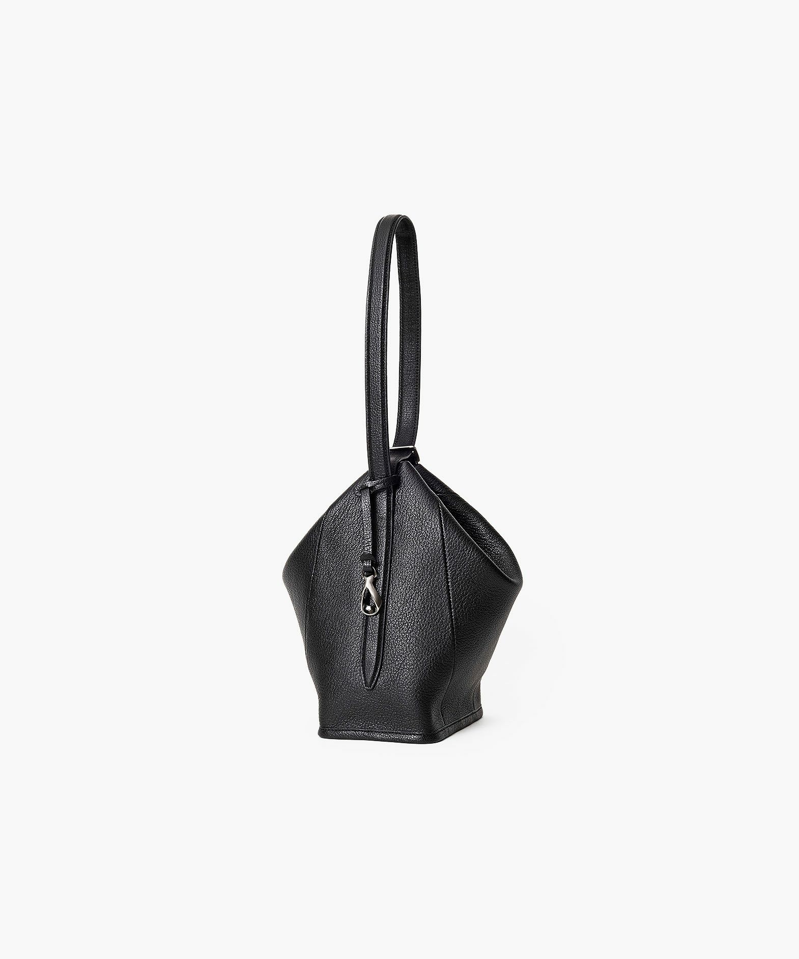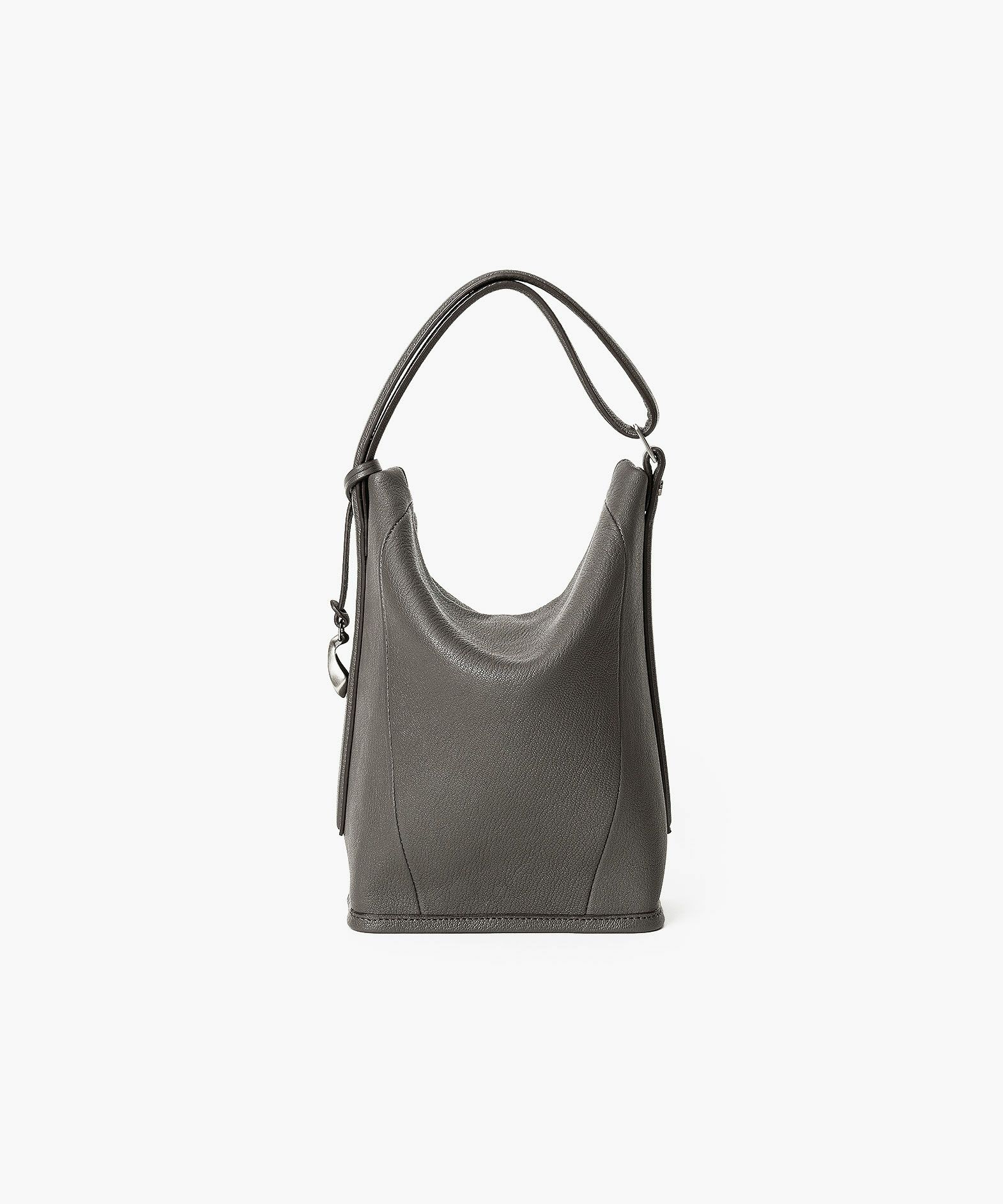 ハンドルを軽やかに手首に引っ掛けて、バッグが自分を追い掛けてくるような軽快さで持ち歩ける、スマートなハンド&バングル“Follow”。フランス・ジュリアン社製ゴードレザー「シェーブル」の外装が、美しく立体的なシボによる高級感で魅了するとともに、キズが目立ちにくく余り経年変化もせず、キレイなままラフに使えるのも魅力。海外の有名メゾンでも愛されている表情に、ETiAM特注によるセミマットを融合させ、高品位なエレガントさへと昇華。ブラックニッケルにシルバーヘアラインを施した、特別仕様のオリジナル真鍮金具は、エッジの効いたアクセントに。二重ハンドルの1本だけを伸ばして異なるフォルムも楽しめ、2つのシルエットともスタイリッシュな佇まいで、大人のこなれ感を纏わせてくれる。
