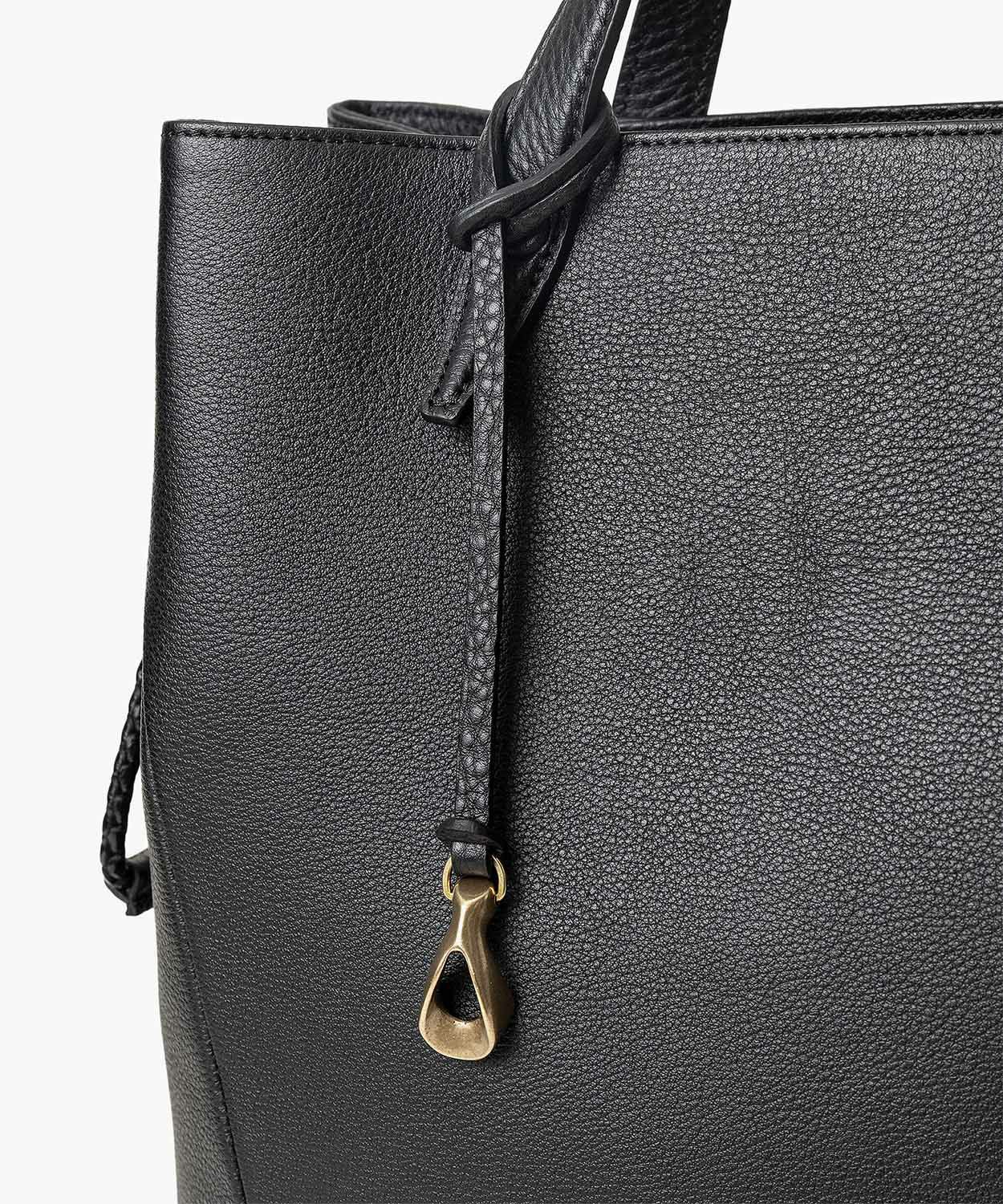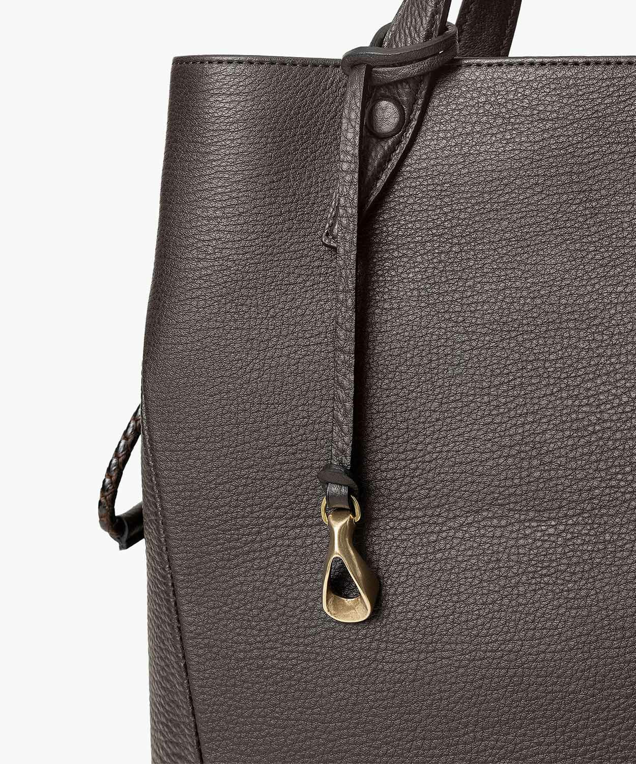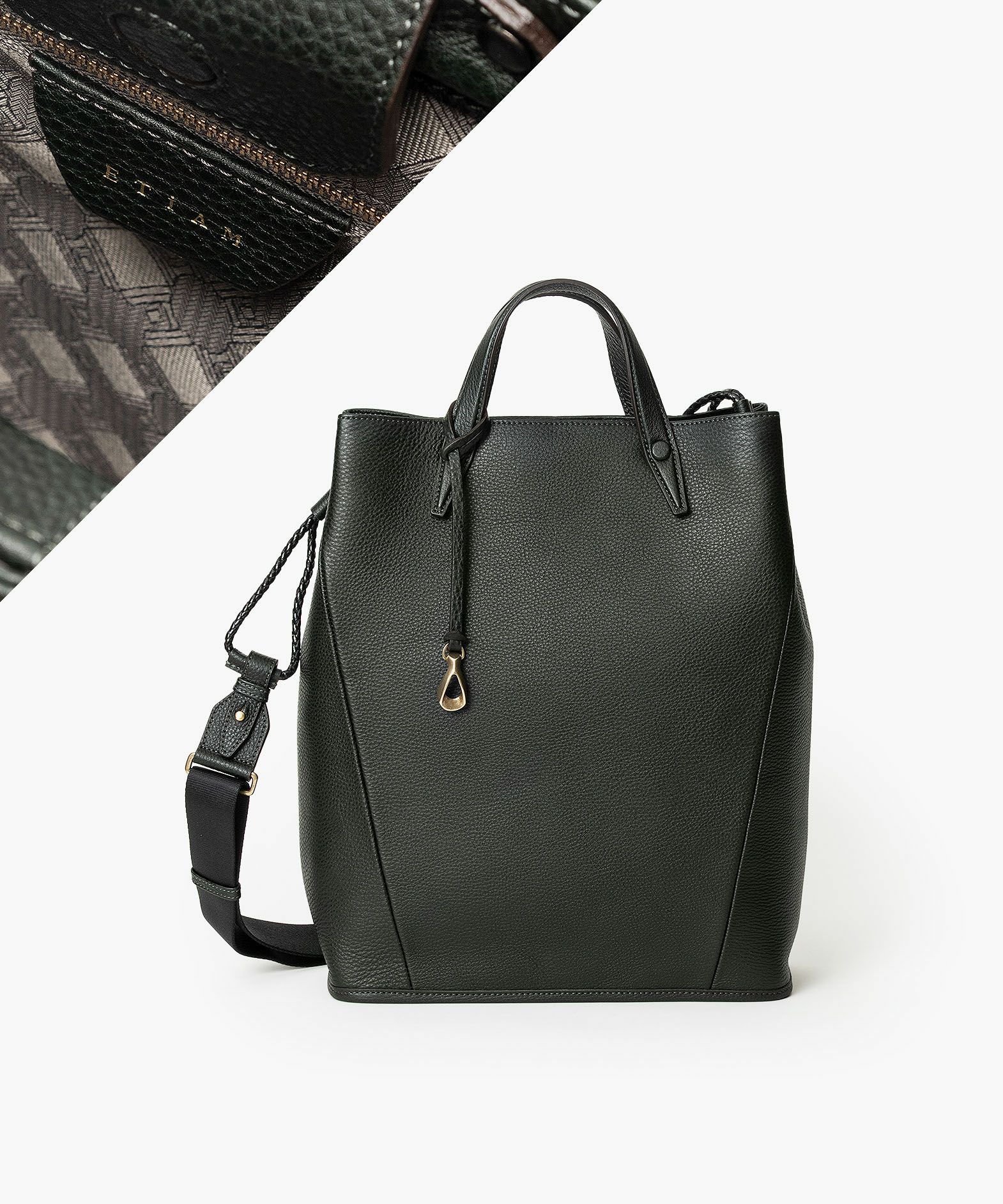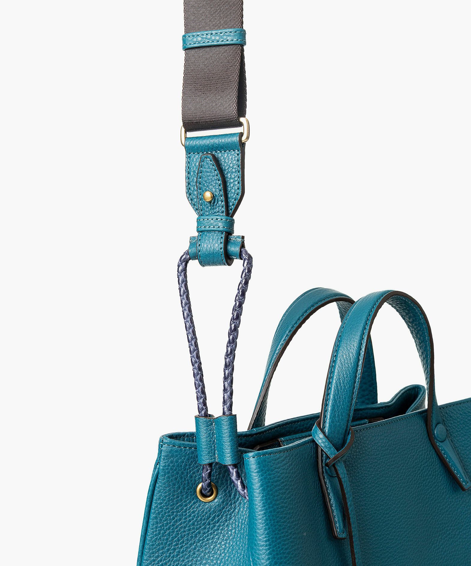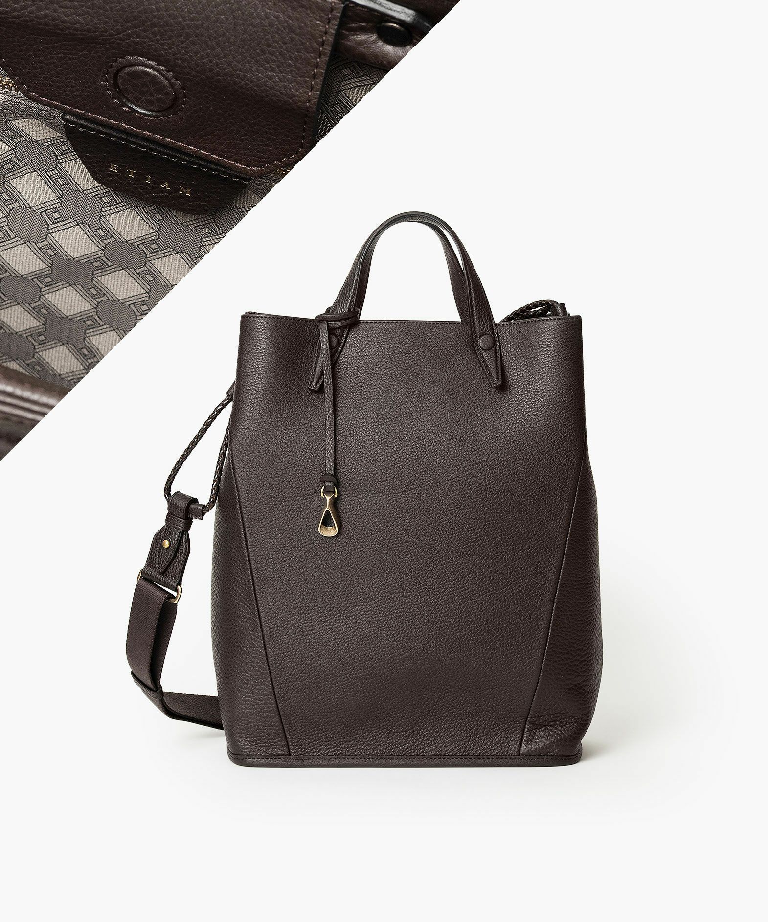 フォルムの変化に対して自然に対応しながら、しっかりとA4サイズを収納できる、ドローストリングショルダーバッグL“Inflect”。シボ感が美しい「シュリンクレザー」のボディに、マチ上部から前面下部にかけた優雅な曲線の繋ぎ目を、左右シンメトリーで設けて縦ラインを強調。巾着型のドローストリング仕様で、紐の動きが美しく絞られたマチに遊び心を添えながら、前面・背面は内装に通すことで、洗練されたスタイリュシュな佇まいへ。レザーを編み込んだような上質なポリエステル製で、先端のレザー部にショルダーベルトを接続できる設計により、軽やかでアクティブな雰囲気を演出。手持ち・手首掛け・肩掛けなど、気分や用途に合わせたスタイルで軽やかに持ち歩くことができ、洗練された印象を引き立ててくれる。