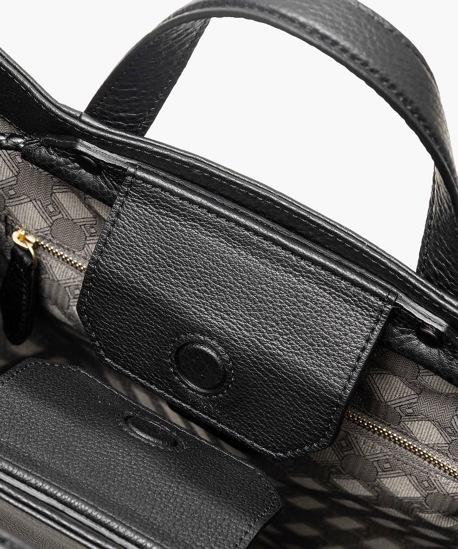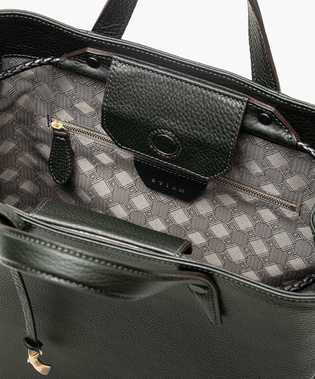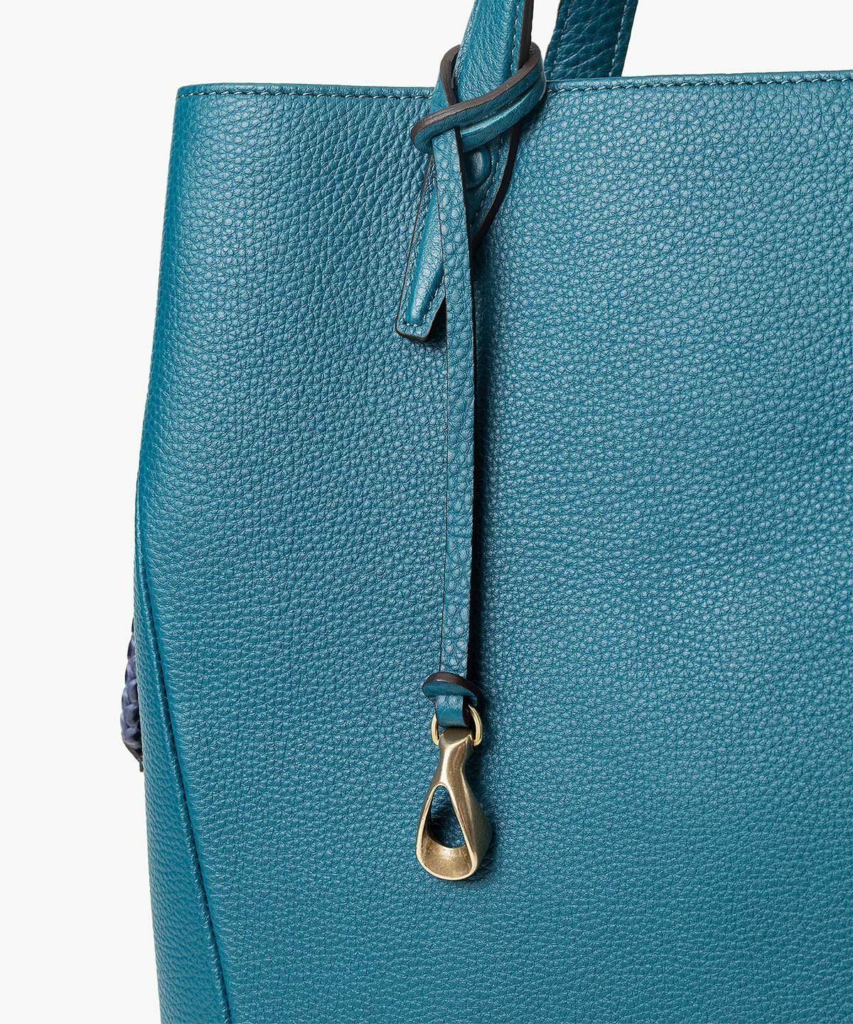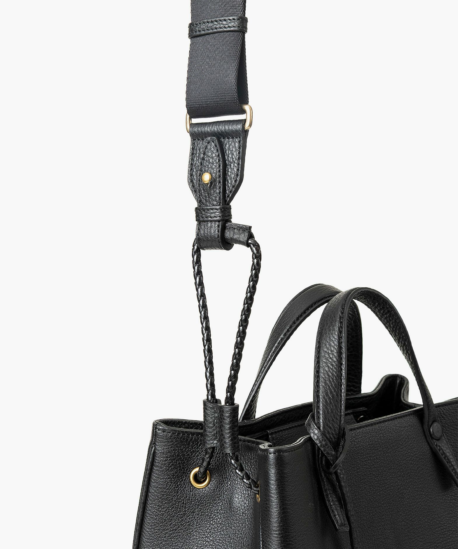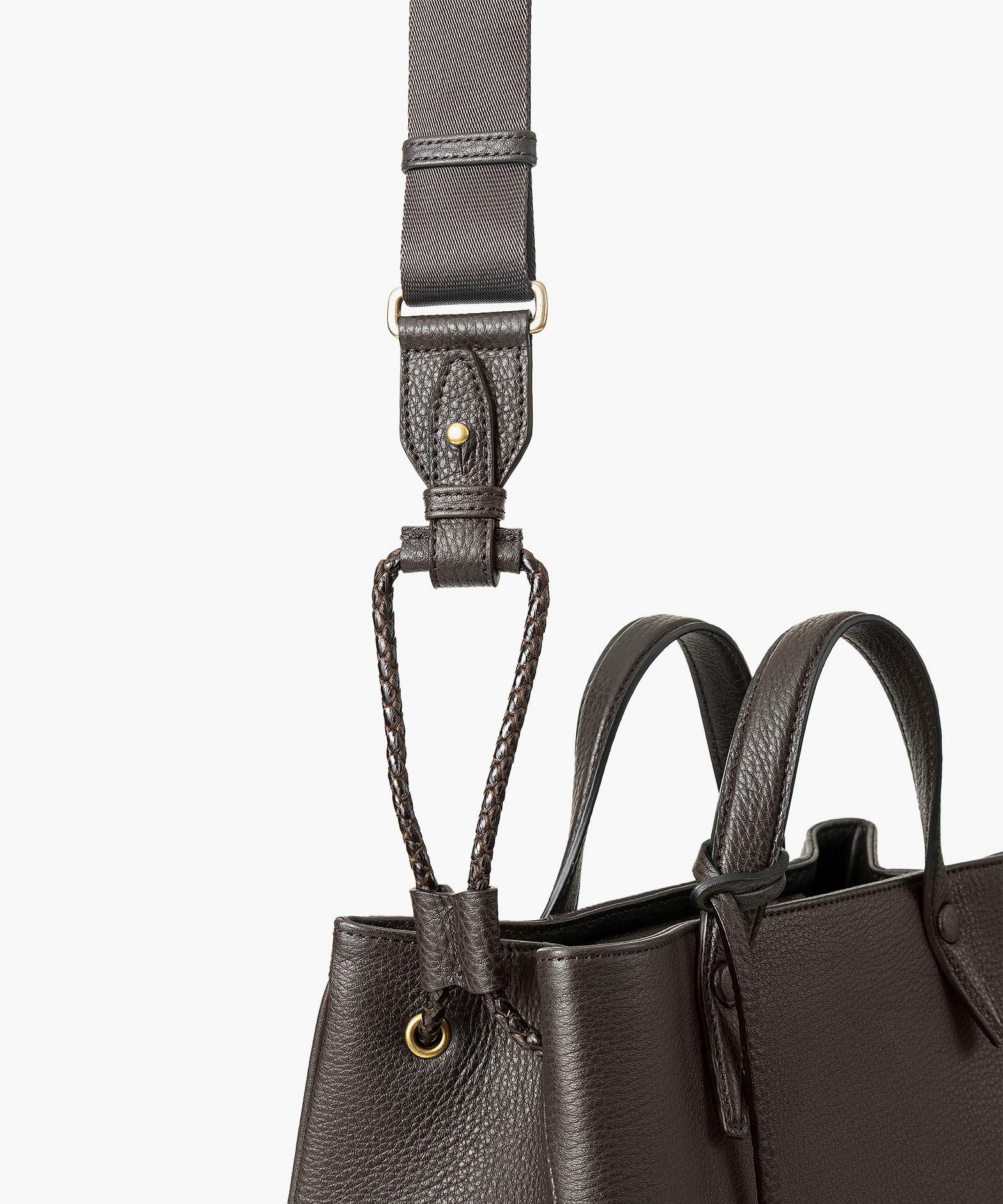 フォルムの変化に対して自然に対応しながら、しっかりとA4サイズを収納できる、ドローストリングショルダーバッグL“Inflect”。シボ感が美しい「シュリンクレザー」のボディに、マチ上部から前面下部にかけた優雅な曲線の繋ぎ目を、左右シンメトリーで設けて縦ラインを強調。巾着型のドローストリング仕様で、紐の動きが美しく絞られたマチに遊び心を添えながら、前面・背面は内装に通すことで、洗練されたスタイリュシュな佇まいへ。レザーを編み込んだような上質なポリエステル製で、先端のレザー部にショルダーベルトを接続できる設計により、軽やかでアクティブな雰囲気を演出。手持ち・手首掛け・肩掛けなど、気分や用途に合わせたスタイルで軽やかに持ち歩くことができ、洗練された印象を引き立ててくれる。