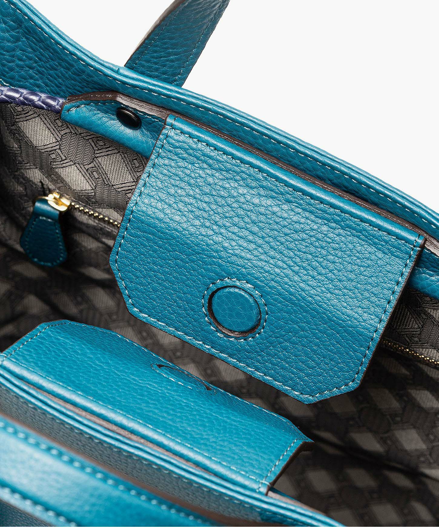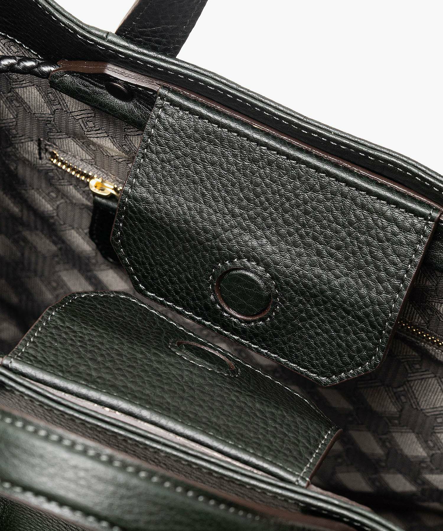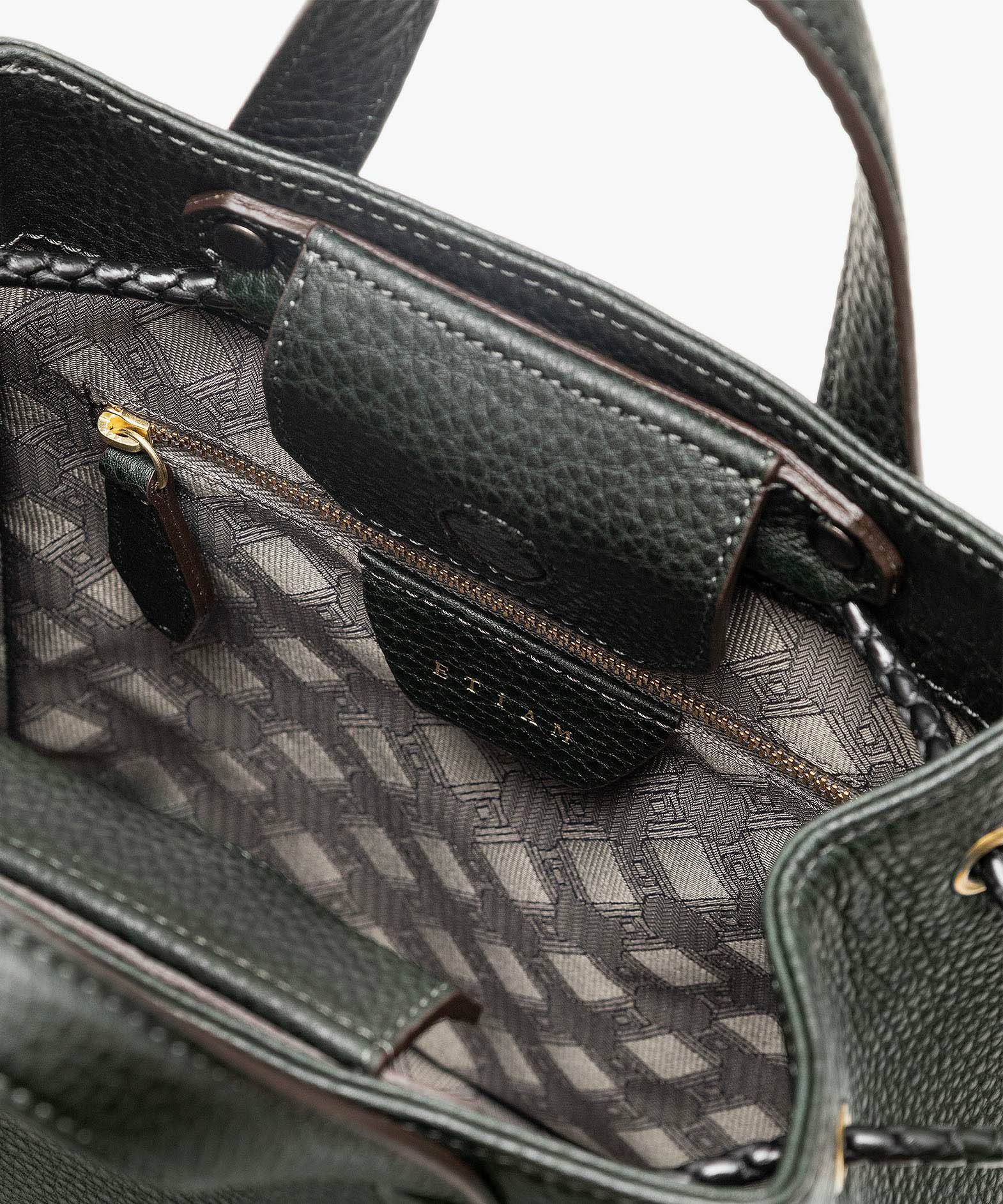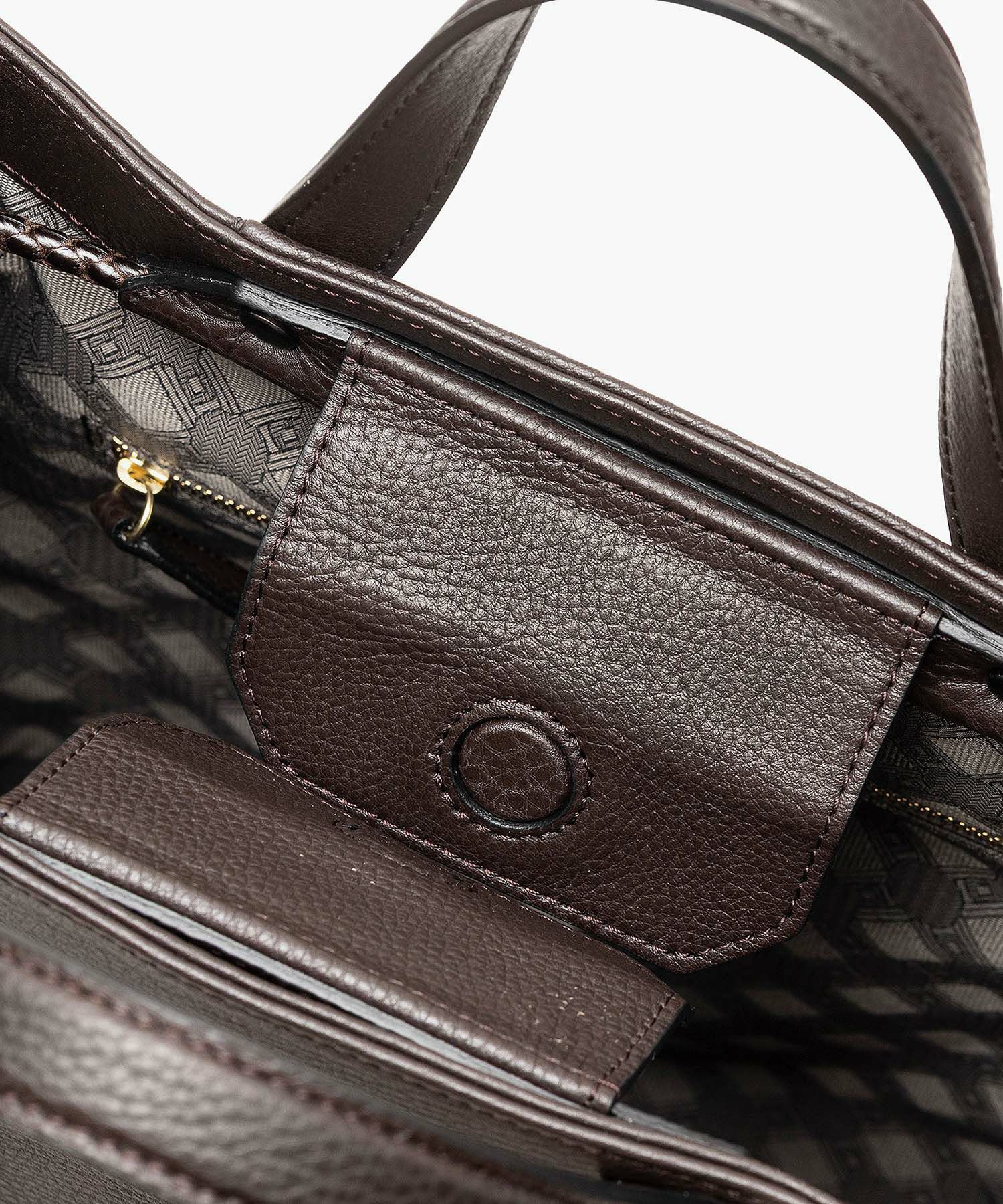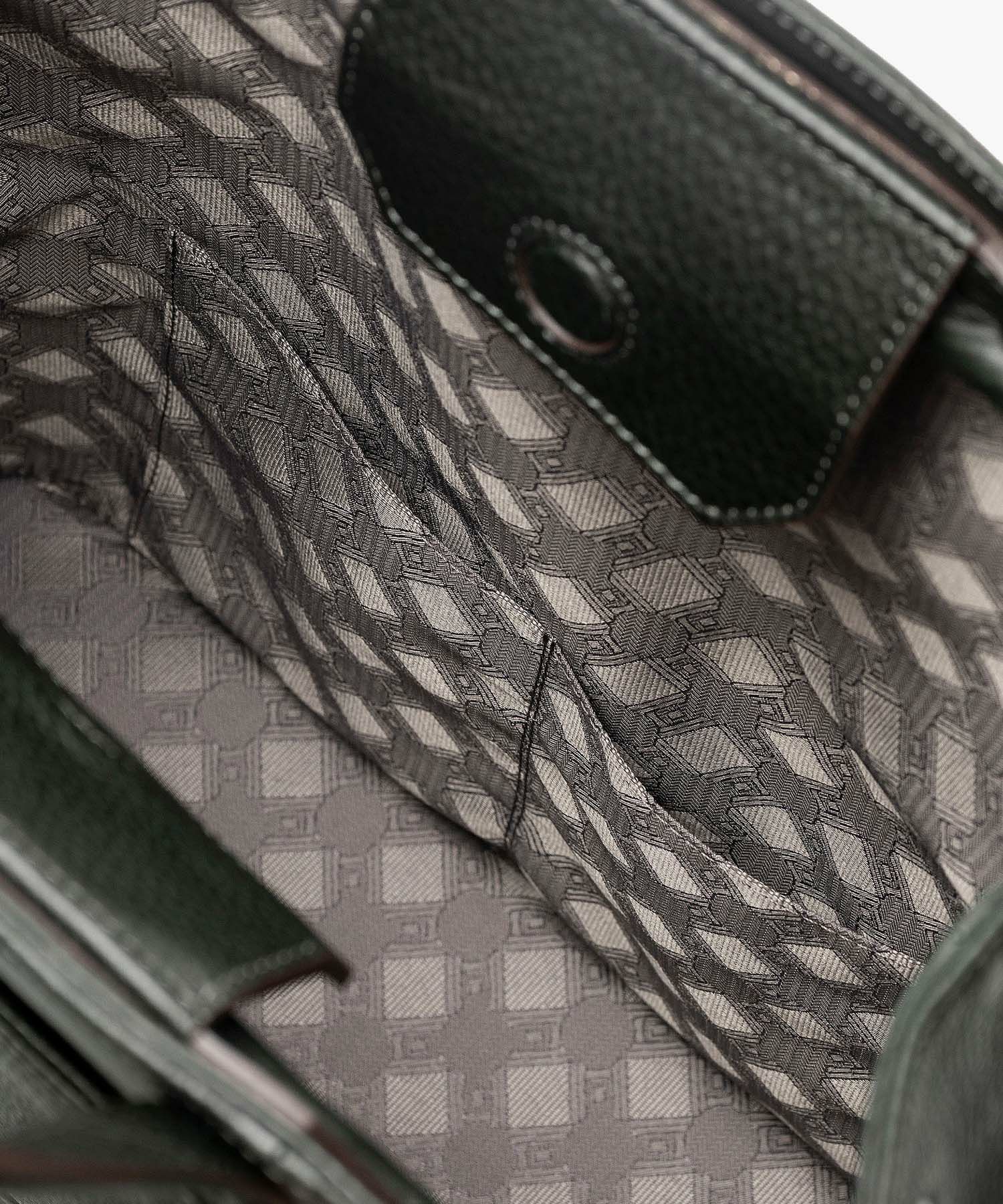 フォルムの変化に対して自然に対応しながら、しっかりとA4サイズを収納できる、ドローストリングショルダーバッグL“Inflect”。シボ感が美しい「シュリンクレザー」のボディに、マチ上部から前面下部にかけた優雅な曲線の繋ぎ目を、左右シンメトリーで設けて縦ラインを強調。巾着型のドローストリング仕様で、紐の動きが美しく絞られたマチに遊び心を添えながら、前面・背面は内装に通すことで、洗練されたスタイリュシュな佇まいへ。レザーを編み込んだような上質なポリエステル製で、先端のレザー部にショルダーベルトを接続できる設計により、軽やかでアクティブな雰囲気を演出。手持ち・手首掛け・肩掛けなど、気分や用途に合わせたスタイルで軽やかに持ち歩くことができ、洗練された印象を引き立ててくれる。