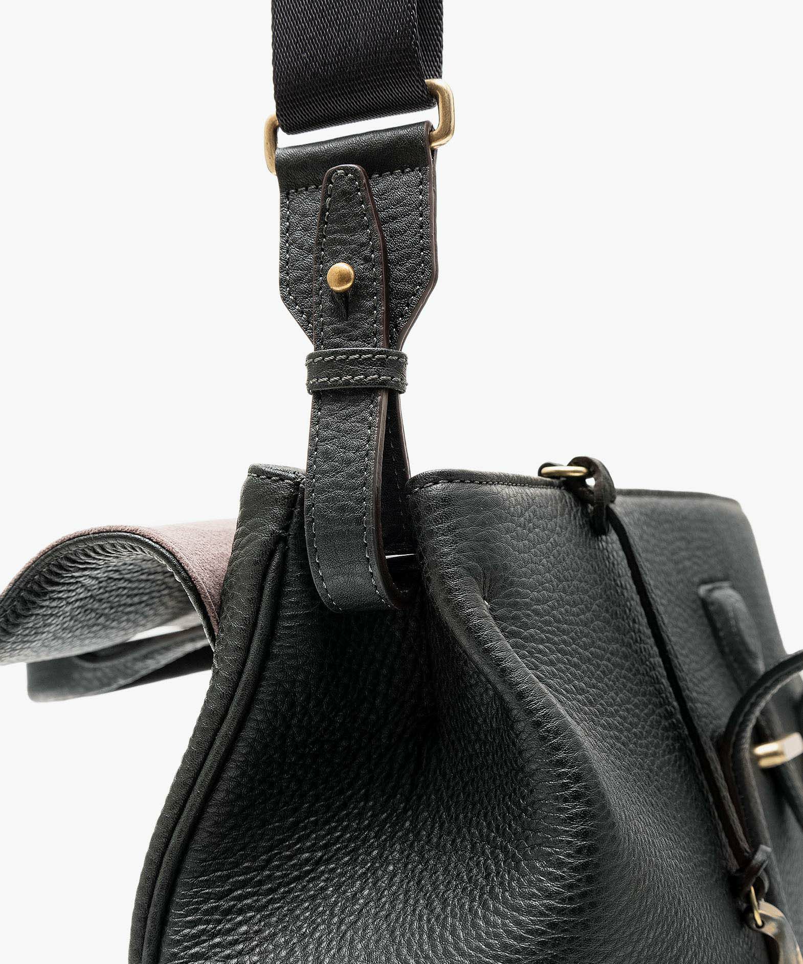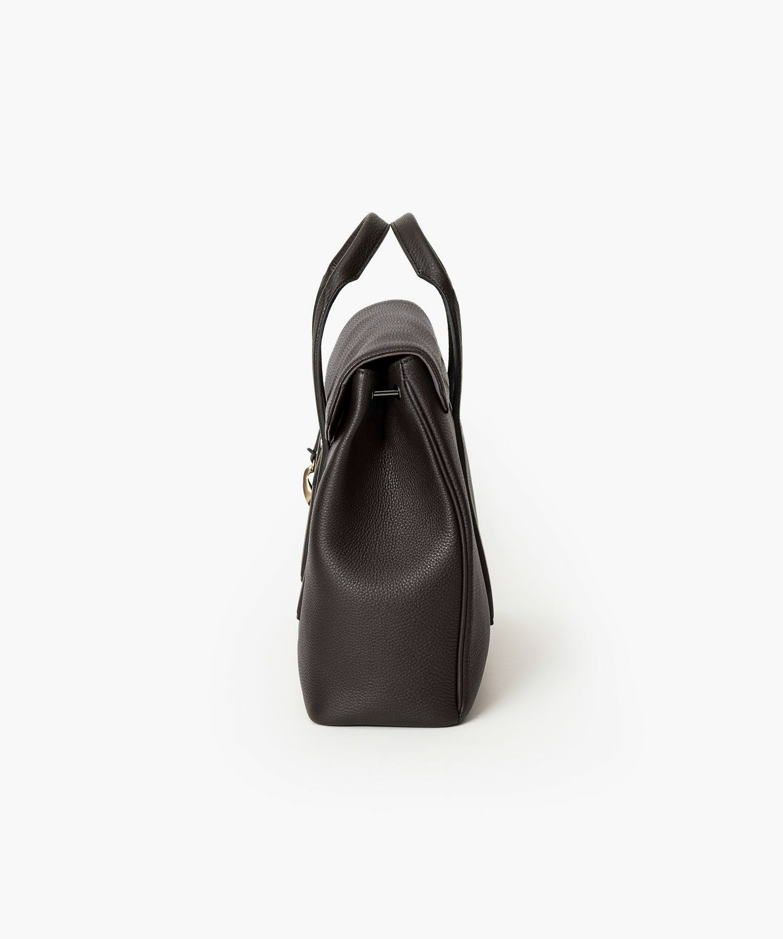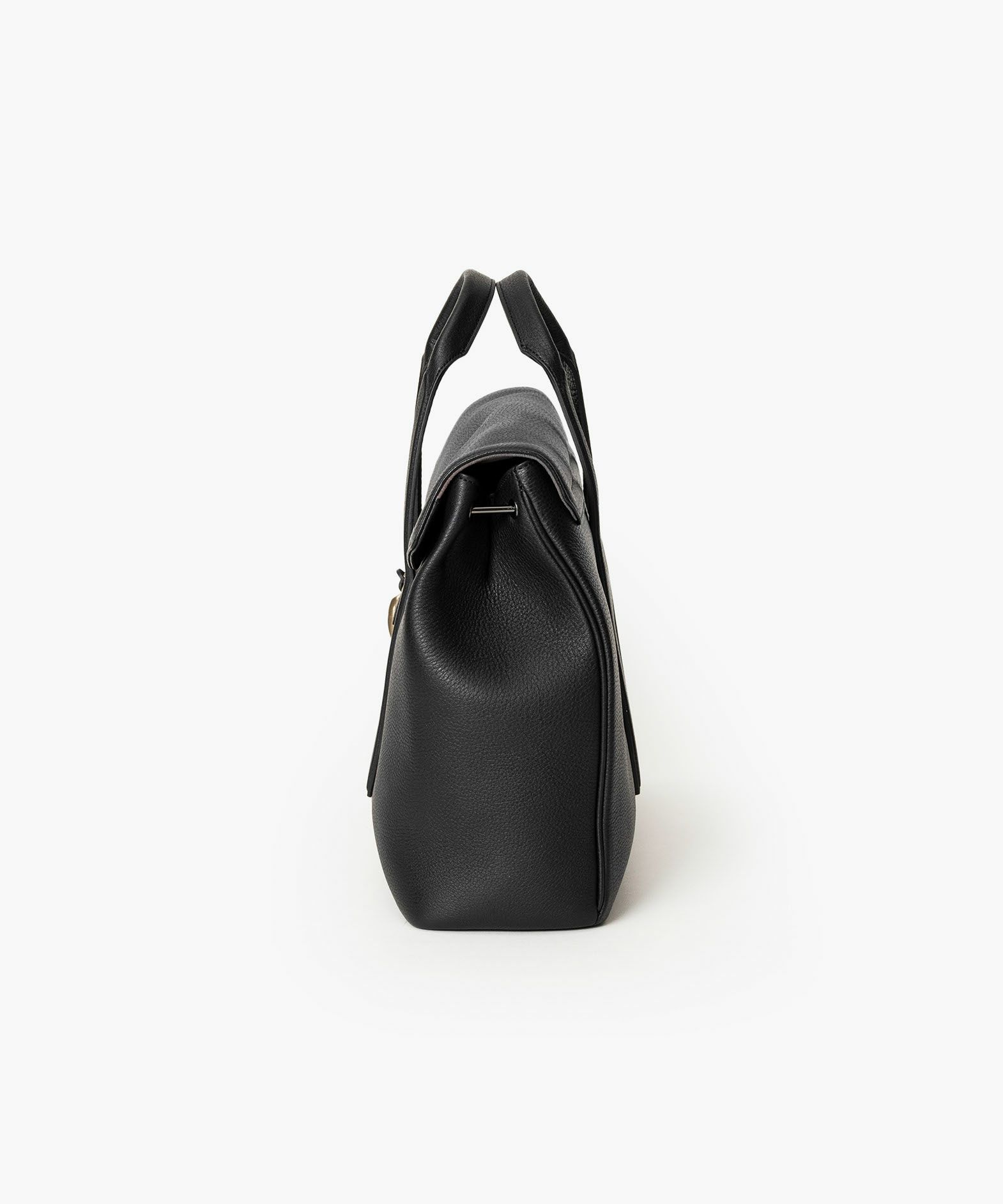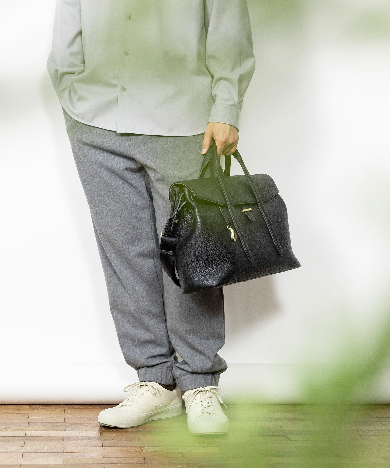 手持ち・肩掛けができる30mm幅レザーハンドルと、斜め掛けもできる38mm幅ショルダーベルトを融合させた、2WAYショルダーバッグ“Union”。シボ感が魅力的な「シュリンクレザー」を纏わせた、ボディ両面の継ぎ目が、緩やかなカーブを描きながら立体的なシルエットを創出。裏面に芯材を施すことで、もちもちとした弾力感とともに、ハンドルを持ったときに上部がたわんで美しいラインへ。取り外しできるショルダーベルトの接続部に採用した真鍮金具が、デザインの上品なアクセントになりながら、斜めに配置させたことで、ボディバッグとして持ち歩くときに体に寄り添わせてフィット。多様なコーディネートにも合わせやすく、自在に持ったり掛けたりできる自由度が、こなれた大人感を演出してくれる。