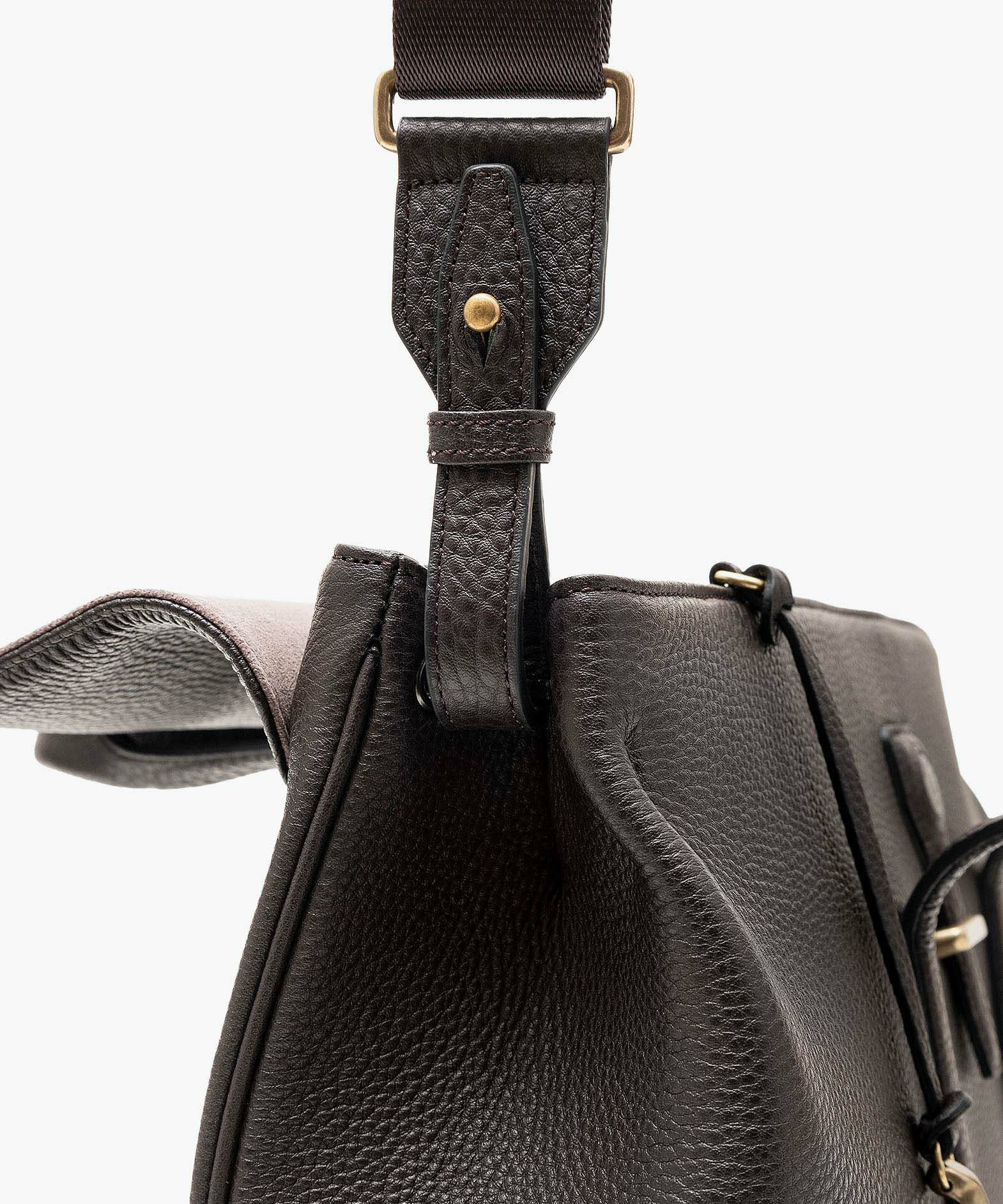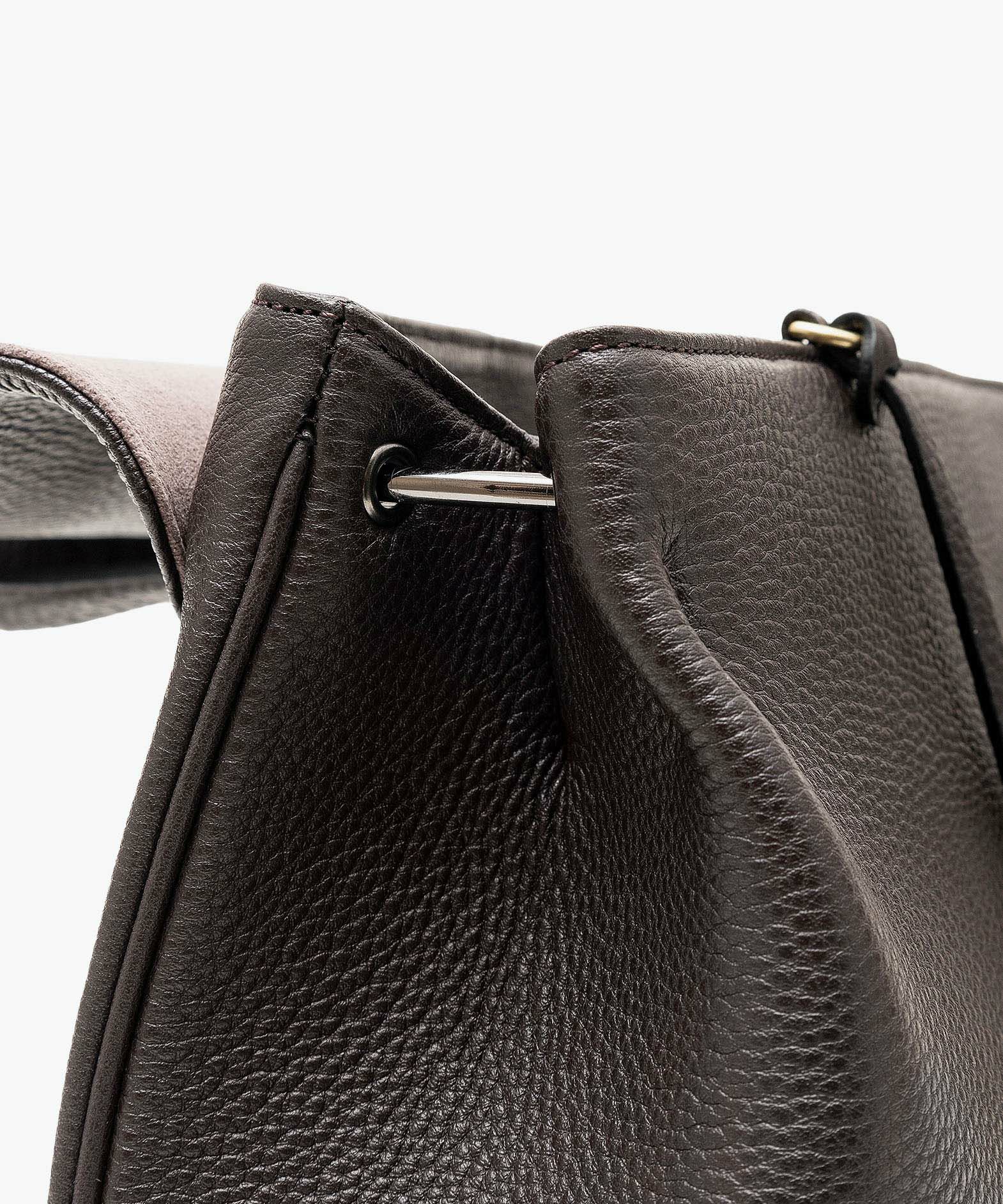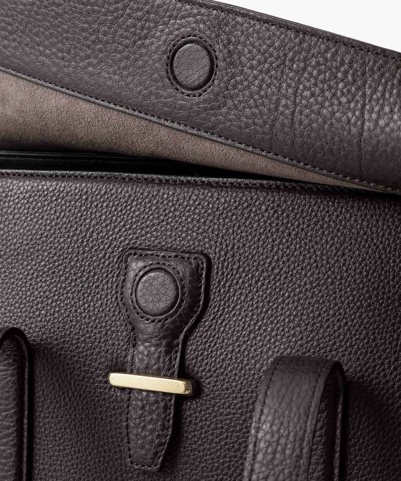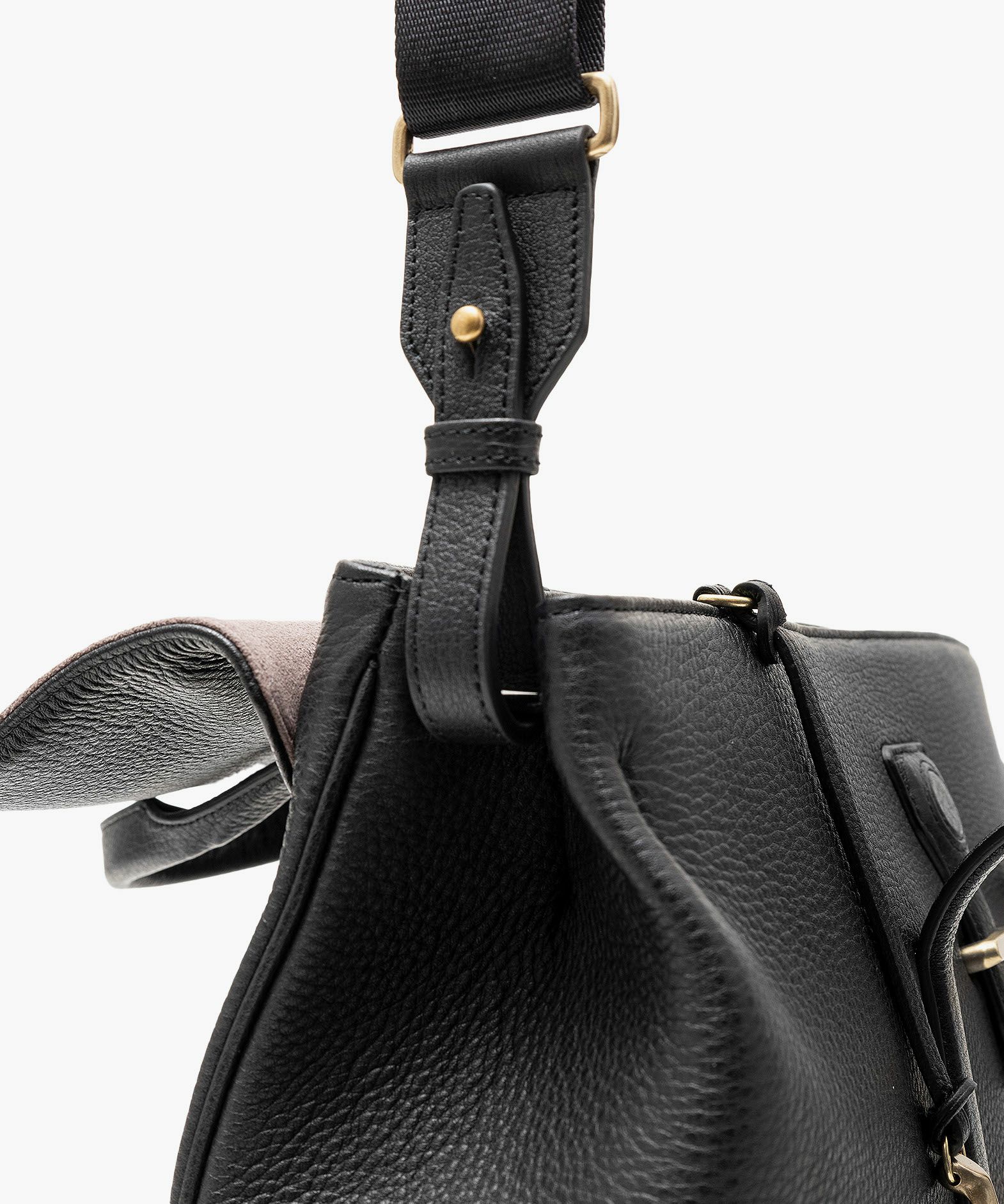 手持ち・肩掛けができる30mm幅レザーハンドルと、斜め掛けもできる38mm幅ショルダーベルトを融合させた、2WAYショルダーバッグ“Union”。シボ感が魅力的な「シュリンクレザー」を纏わせた、ボディ両面の継ぎ目が、緩やかなカーブを描きながら立体的なシルエットを創出。裏面に芯材を施すことで、もちもちとした弾力感とともに、ハンドルを持ったときに上部がたわんで美しいラインへ。取り外しできるショルダーベルトの接続部に採用した真鍮金具が、デザインの上品なアクセントになりながら、斜めに配置させたことで、ボディバッグとして持ち歩くときに体に寄り添わせてフィット。多様なコーディネートにも合わせやすく、自在に持ったり掛けたりできる自由度が、こなれた大人感を演出してくれる。