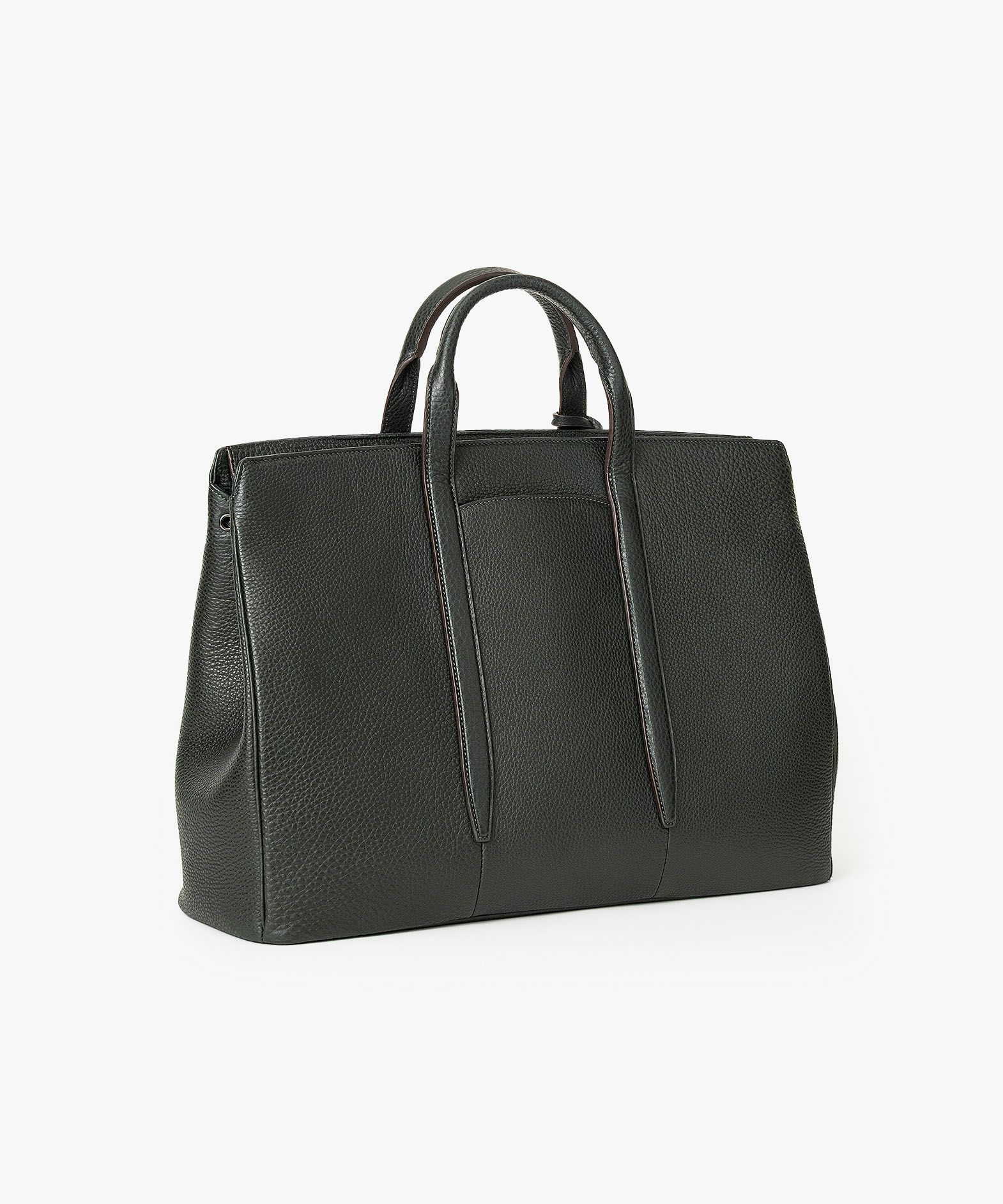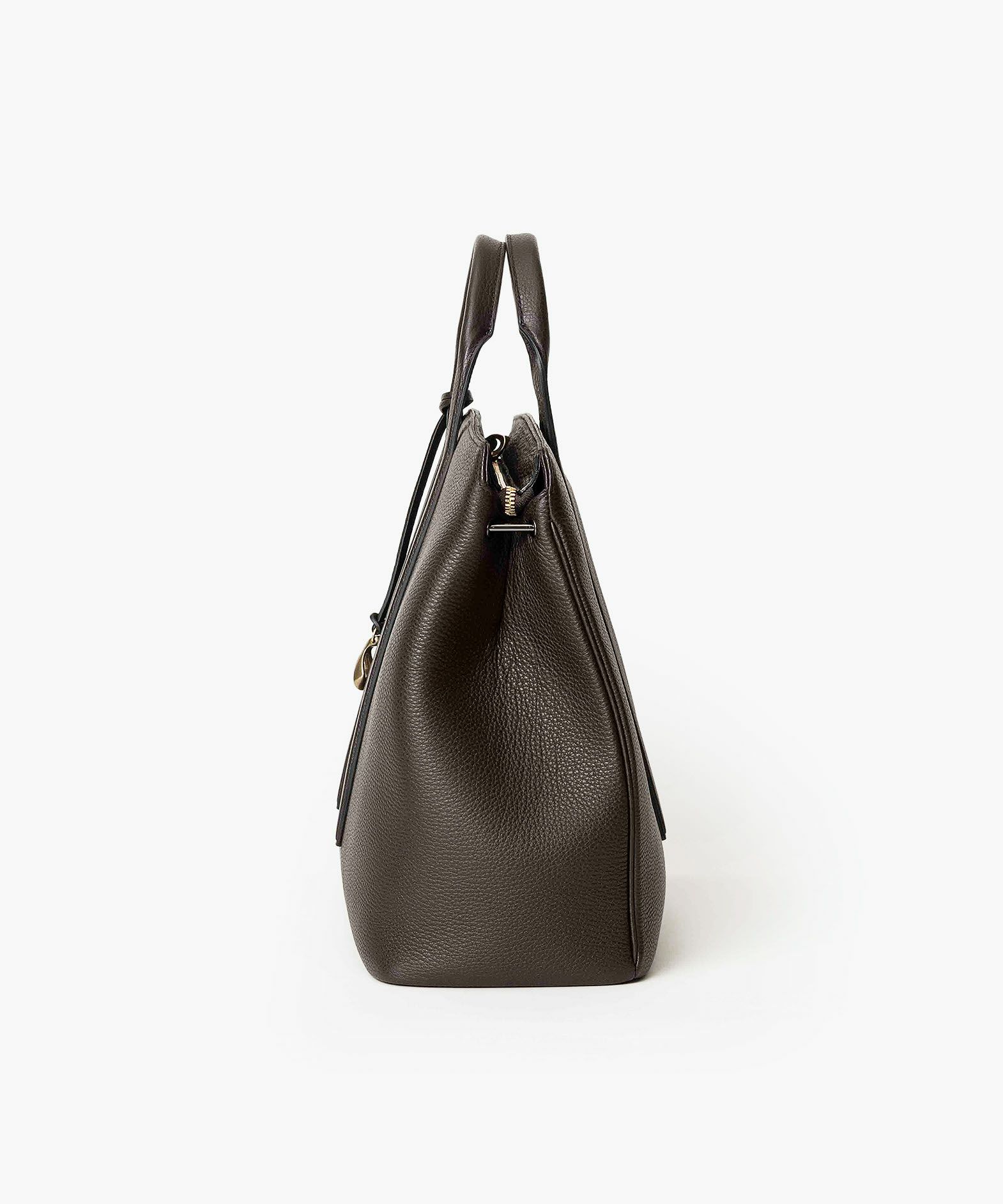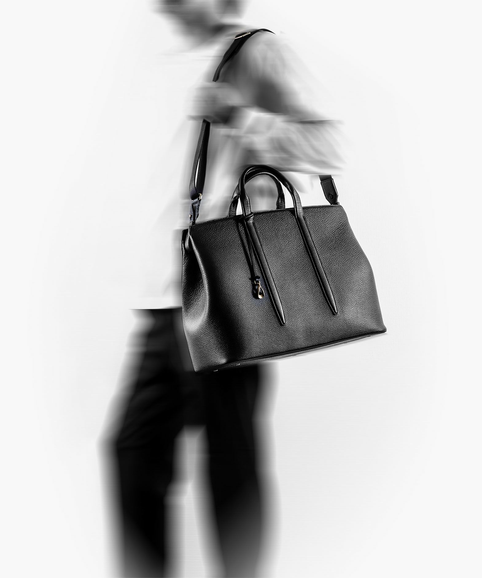 直線的なシルエットと控えめなディテールによる、ミニマリズムのさりげない美学が、落ち着きと確かな安心感を呼び起こす、B4ブリーフケース“Evoke”。やや大きめのサイズ感で、B4サイズの書類やデバイスをしっかりと収納・携帯することが可能。前面とマチを一枚革で仕立てた、シボ感が美しい「シュリンクレザー」によるシームレスなボディと、縫い合わせを極力排した設計により、耐久性を高めながら一貫性のある端正なフォルムを実現。その内部には、弾力性に優れた芯材により構造的なハリを保ちながら、柔らかな触り心地も叶え、堅牢性と快適な使い心地へ。絹のような光沢感があるナイロンテープのショルダーベルトも付属し、肩掛け・斜め掛けなど多彩なスタイルに対応した使用シーンの幅を広げてくれる。