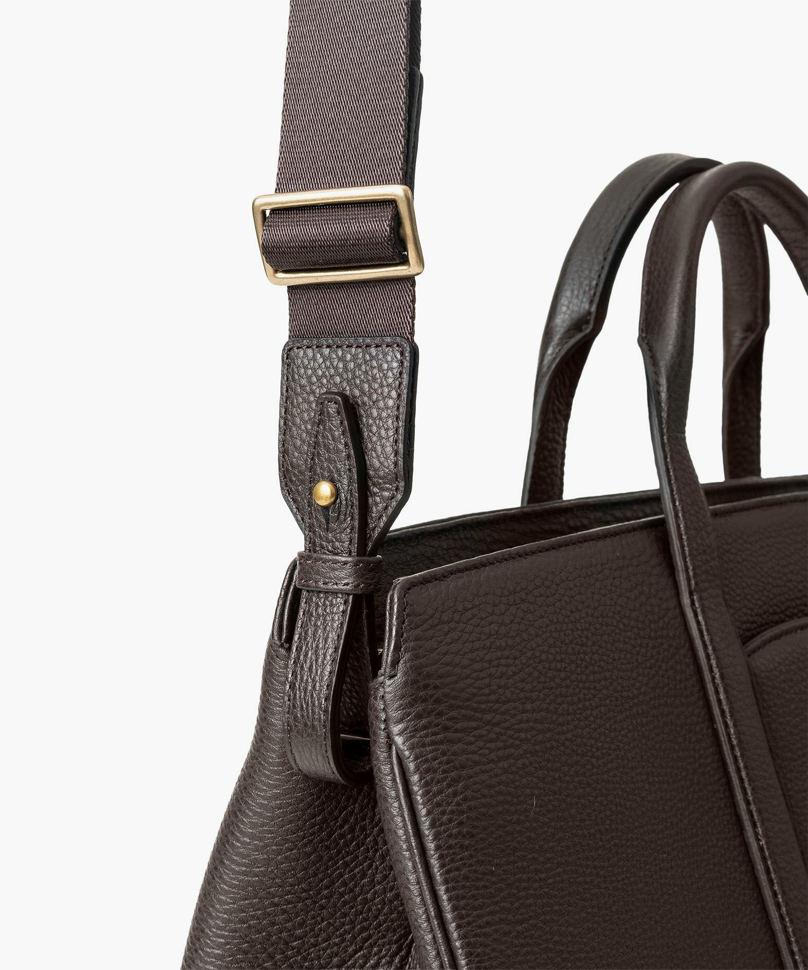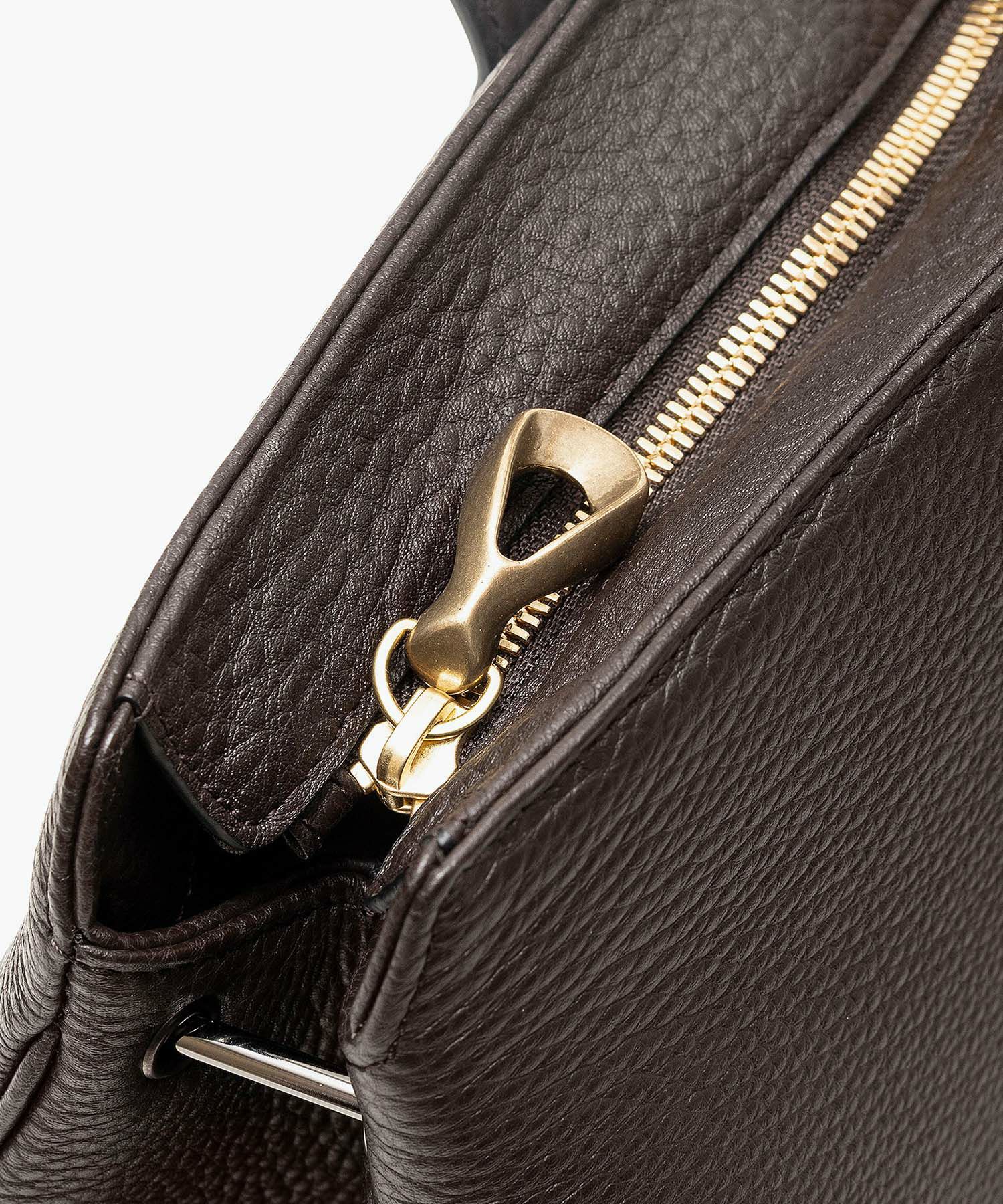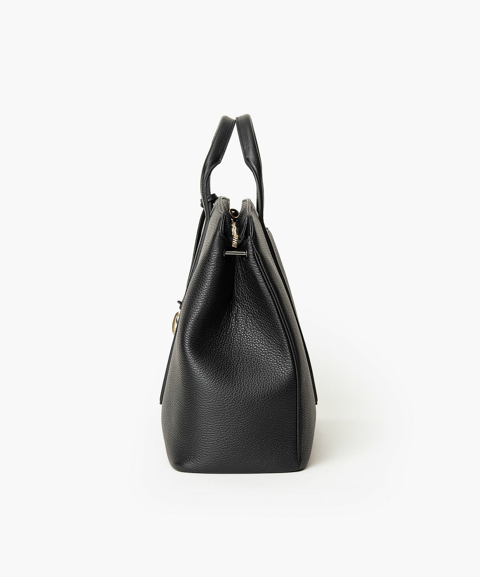 直線的なシルエットと控えめなディテールによる、ミニマリズムのさりげない美学が、落ち着きと確かな安心感を呼び起こす、B4ブリーフケース“Evoke”。やや大きめのサイズ感で、B4サイズの書類やデバイスをしっかりと収納・携帯することが可能。前面とマチを一枚革で仕立てた、シボ感が美しい「シュリンクレザー」によるシームレスなボディと、縫い合わせを極力排した設計により、耐久性を高めながら一貫性のある端正なフォルムを実現。その内部には、弾力性に優れた芯材により構造的なハリを保ちながら、柔らかな触り心地も叶え、堅牢性と快適な使い心地へ。絹のような光沢感があるナイロンテープのショルダーベルトも付属し、肩掛け・斜め掛けなど多彩なスタイルに対応した使用シーンの幅を広げてくれる。