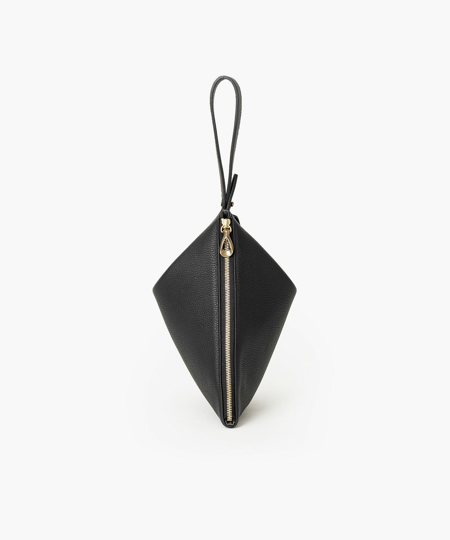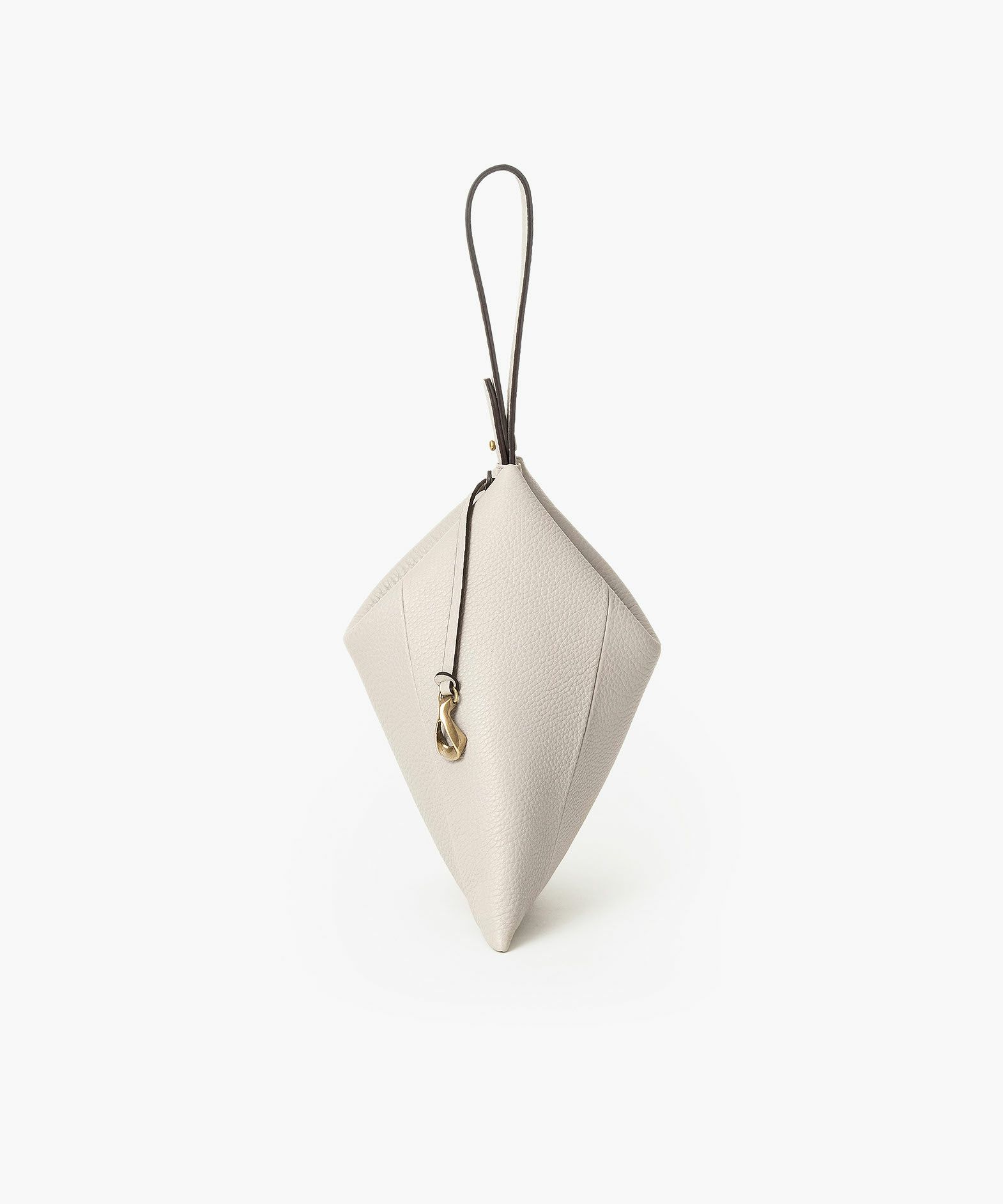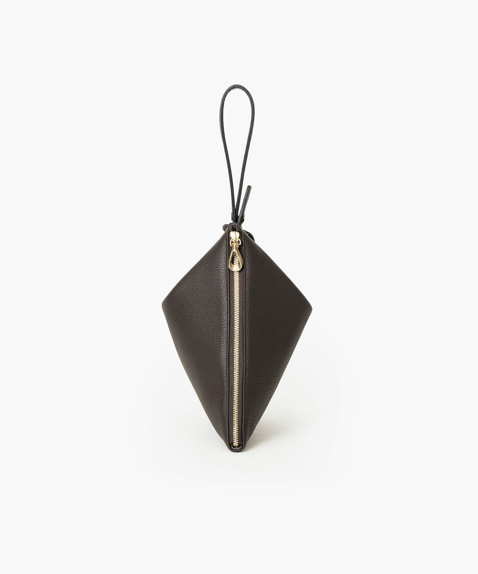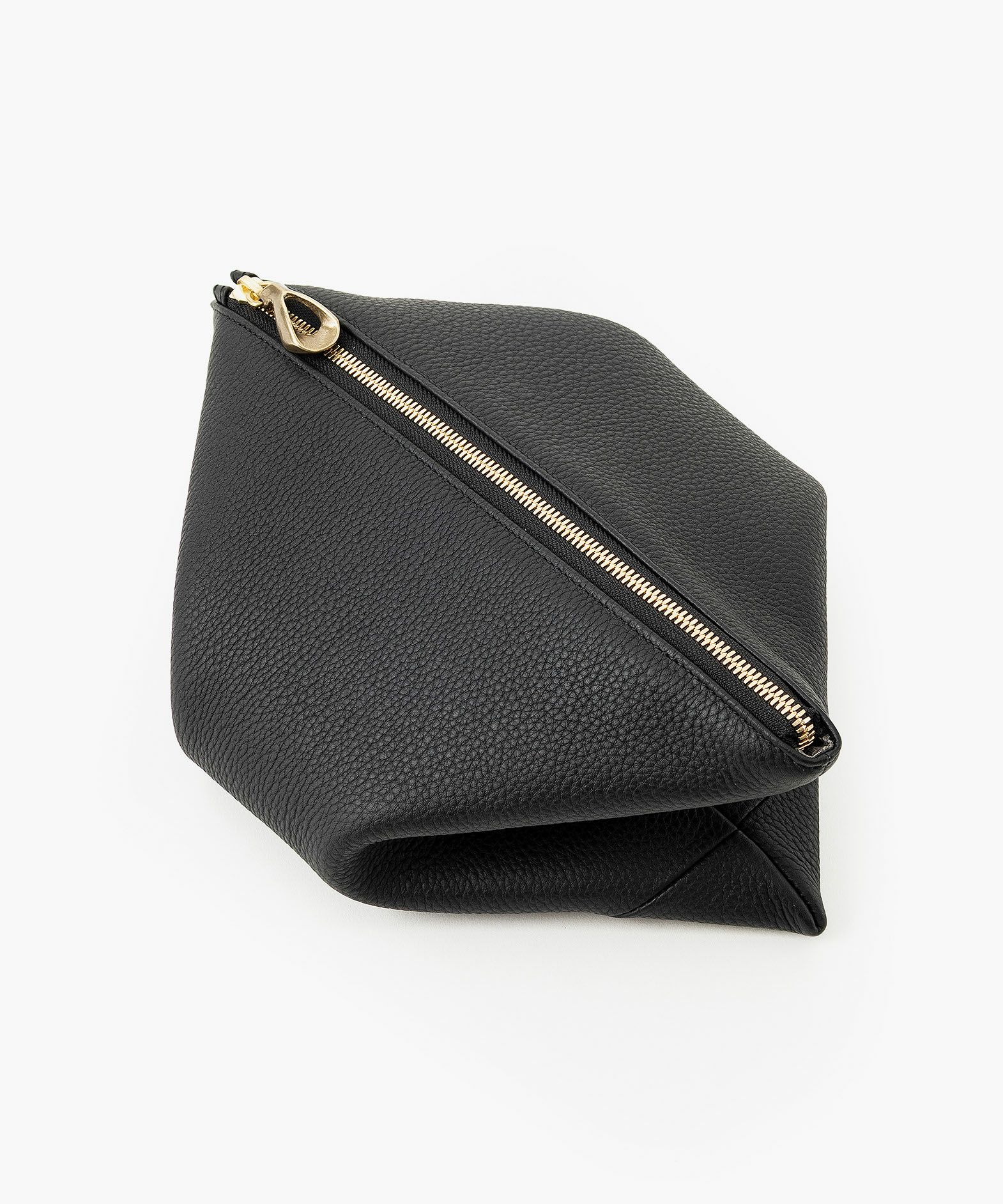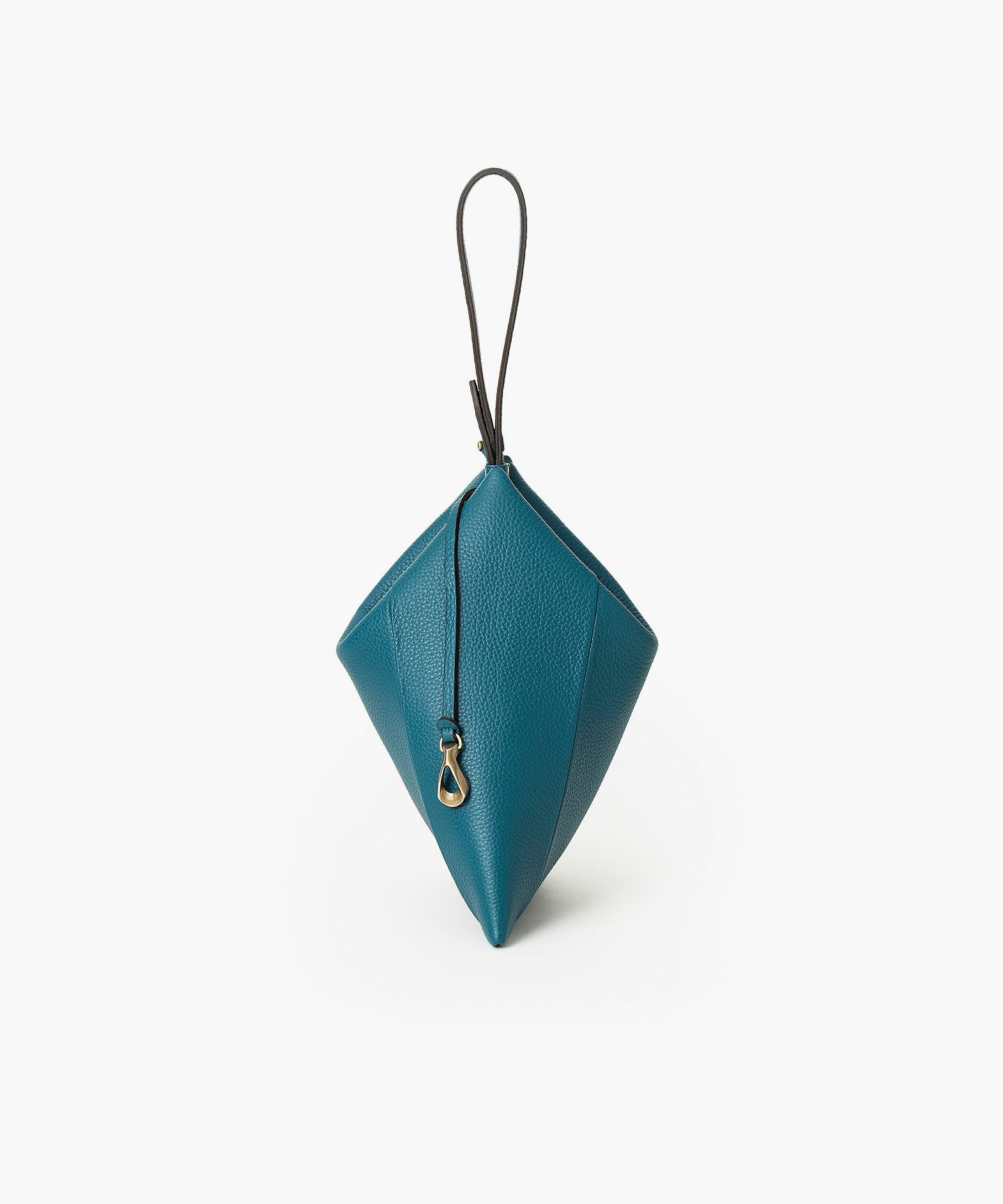 光を分散・屈折させて生まれる多彩な色を放つ光線のように、何気ない日常に鮮やかな色彩の輝きを添えてくれる、ユニセックスなデザインのトライアングルポーチ“Prism”。シボ感が美しい「シュリンクレザー」のボディとストラップを繋ぐ上部のオリジナル金具により、たわみが美しい巾着のようなシルエットを創り出し、トライアングルを想わせる洗練されたフォルムを実現。ハギ(繋ぎ目)は、前面センターではなく、あえて両サイド斜めに設けることで、上部の三角形を生かした菱形のエレガントな印象へ。また、下部を内側に折り畳んで平たくコンパクトにでき、かさばらずにバッグやスーツケースに収納することも。軽やかなシャープさが、普段使いだけでなく、旅先や出張先などでもスマートに活躍してくれる。