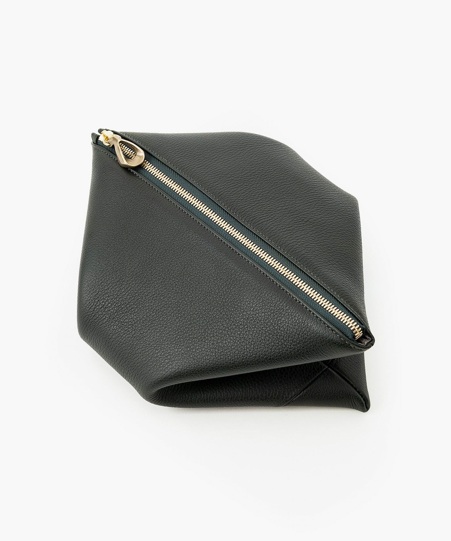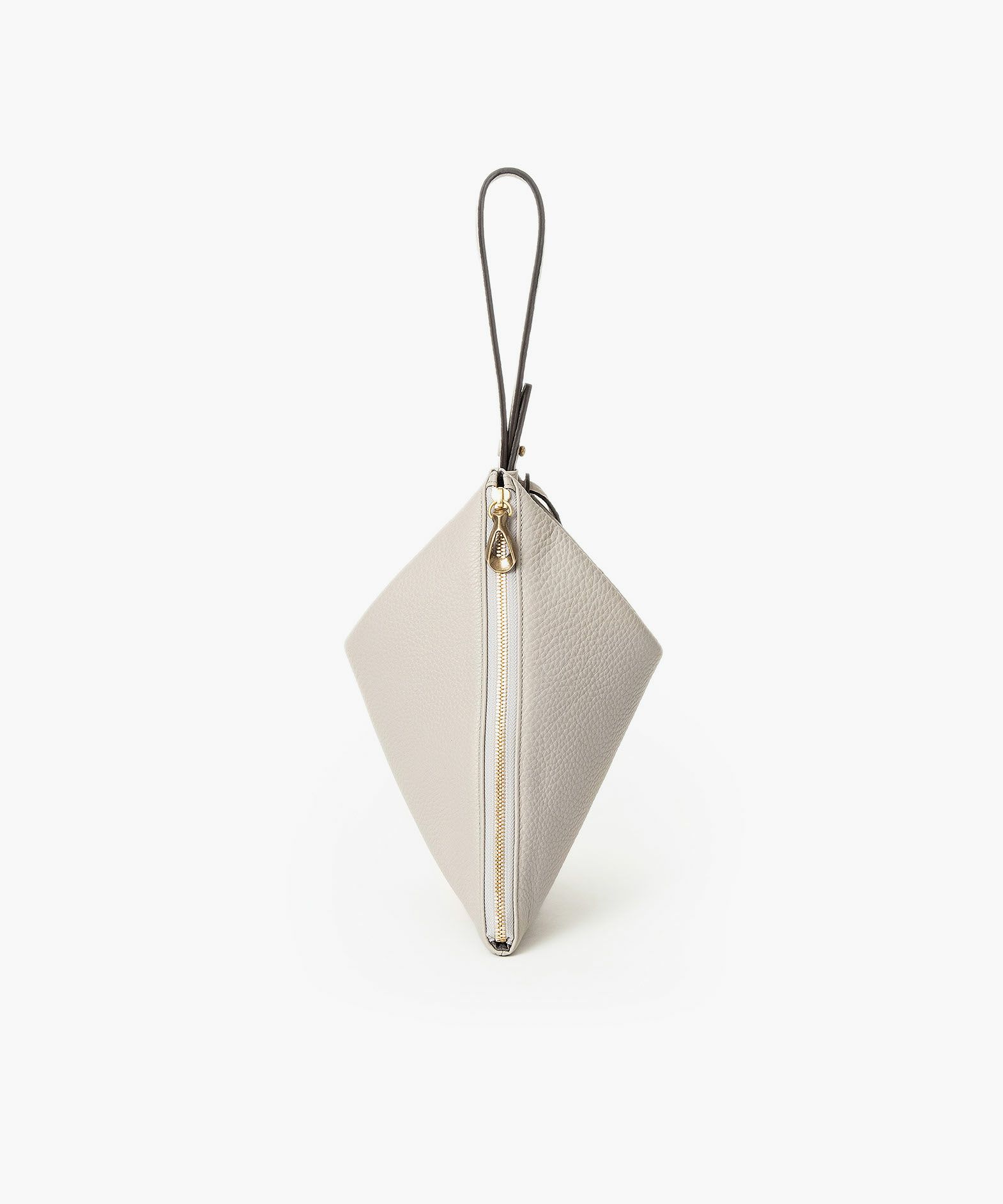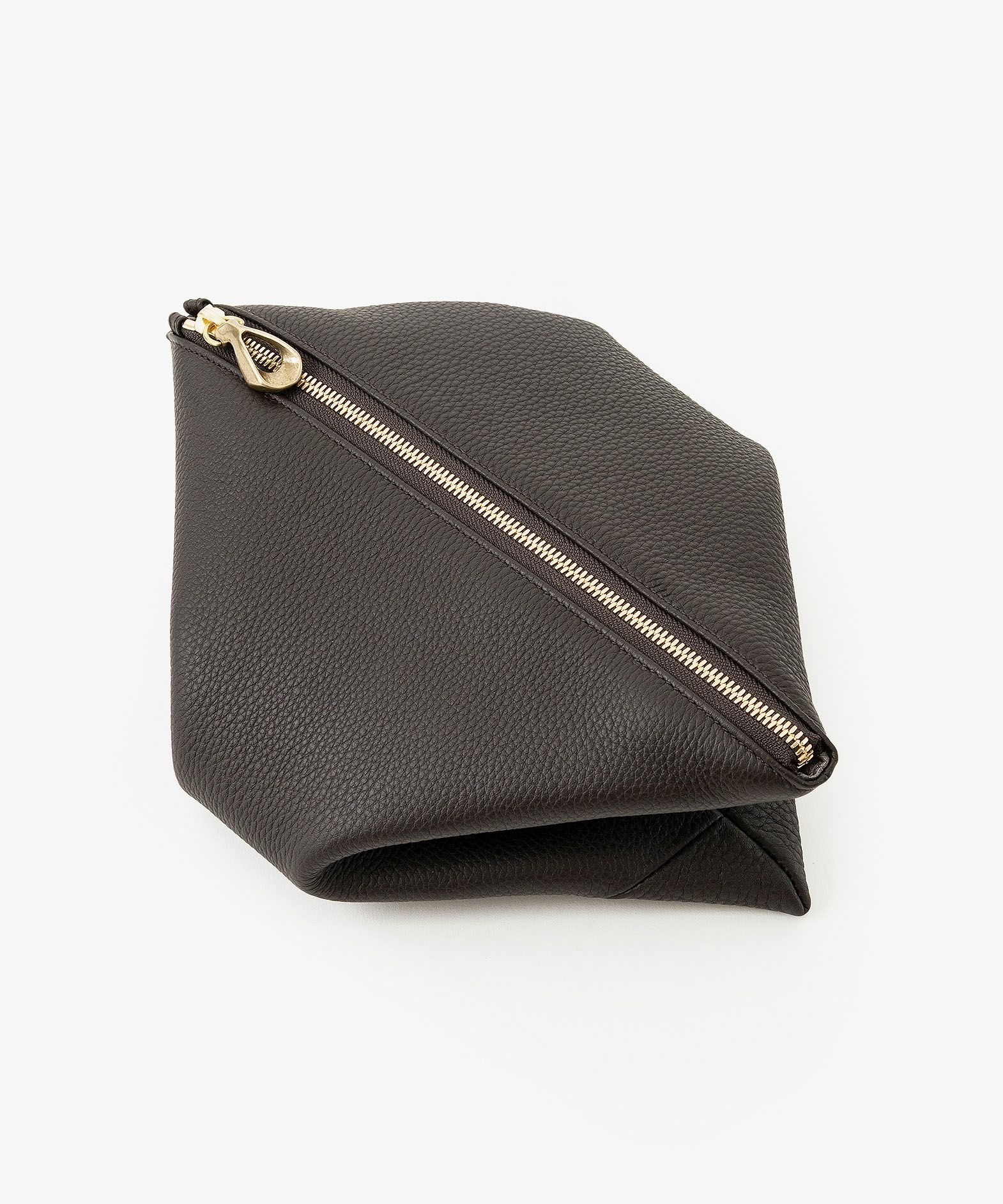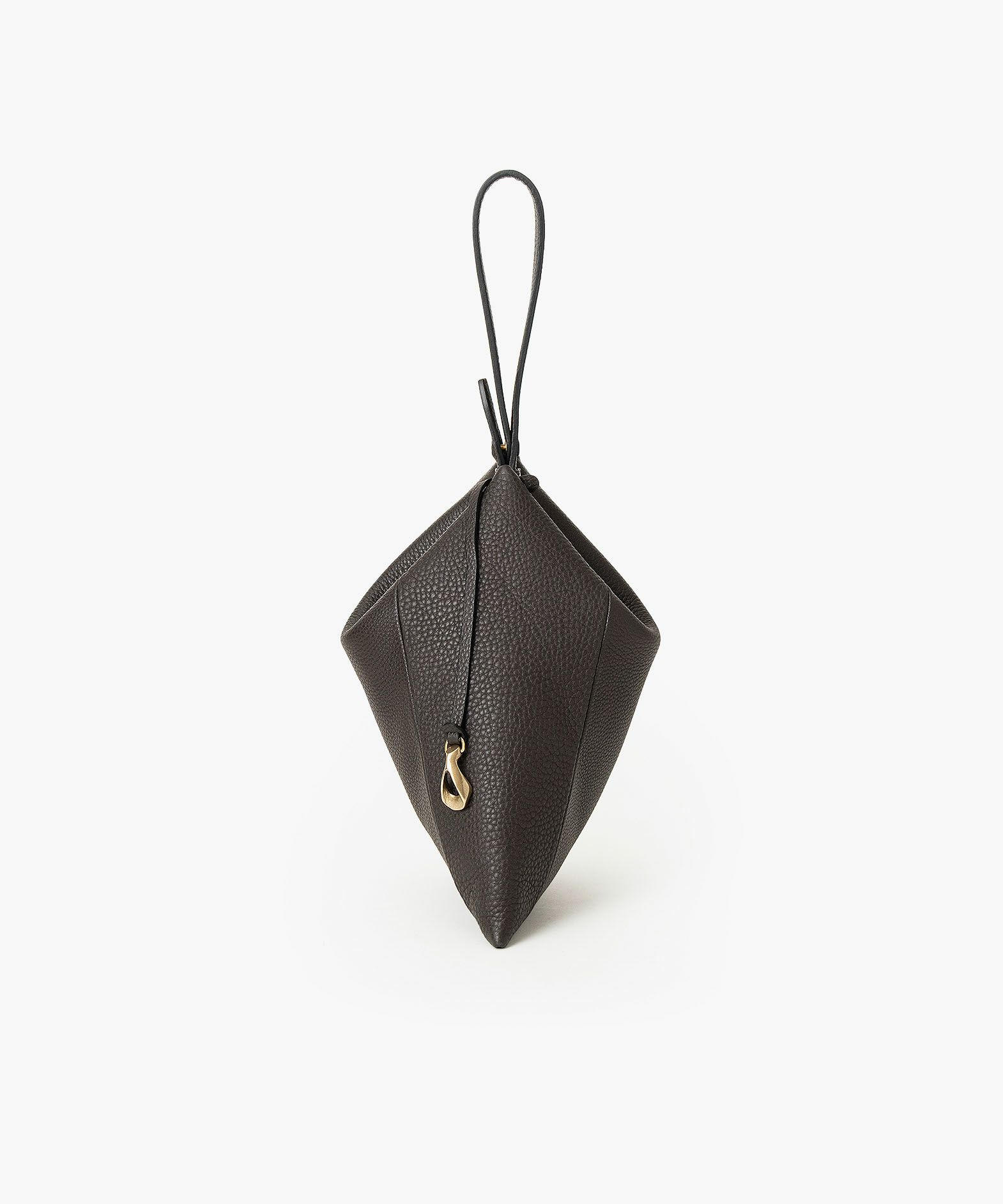 光を分散・屈折させて生まれる多彩な色を放つ光線のように、何気ない日常に鮮やかな色彩の輝きを添えてくれる、ユニセックスなデザインのトライアングルポーチ“Prism”。シボ感が美しい「シュリンクレザー」のボディとストラップを繋ぐ上部のオリジナル金具により、たわみが美しい巾着のようなシルエットを創り出し、トライアングルを想わせる洗練されたフォルムを実現。ハギ(繋ぎ目)は、前面センターではなく、あえて両サイド斜めに設けることで、上部の三角形を生かした菱形のエレガントな印象へ。また、下部を内側に折り畳んで平たくコンパクトにでき、かさばらずにバッグやスーツケースに収納することも。軽やかなシャープさが、普段使いだけでなく、旅先や出張先などでもスマートに活躍してくれる。