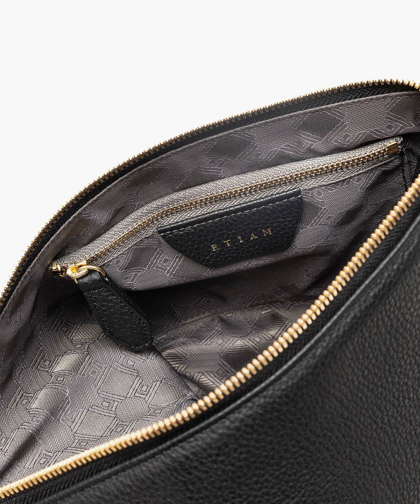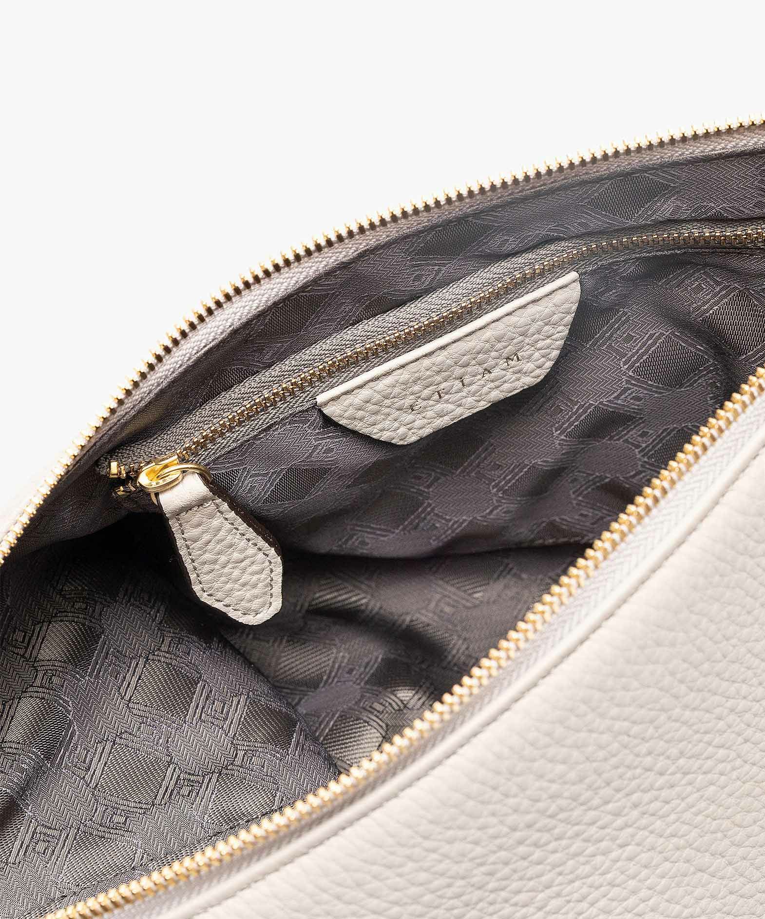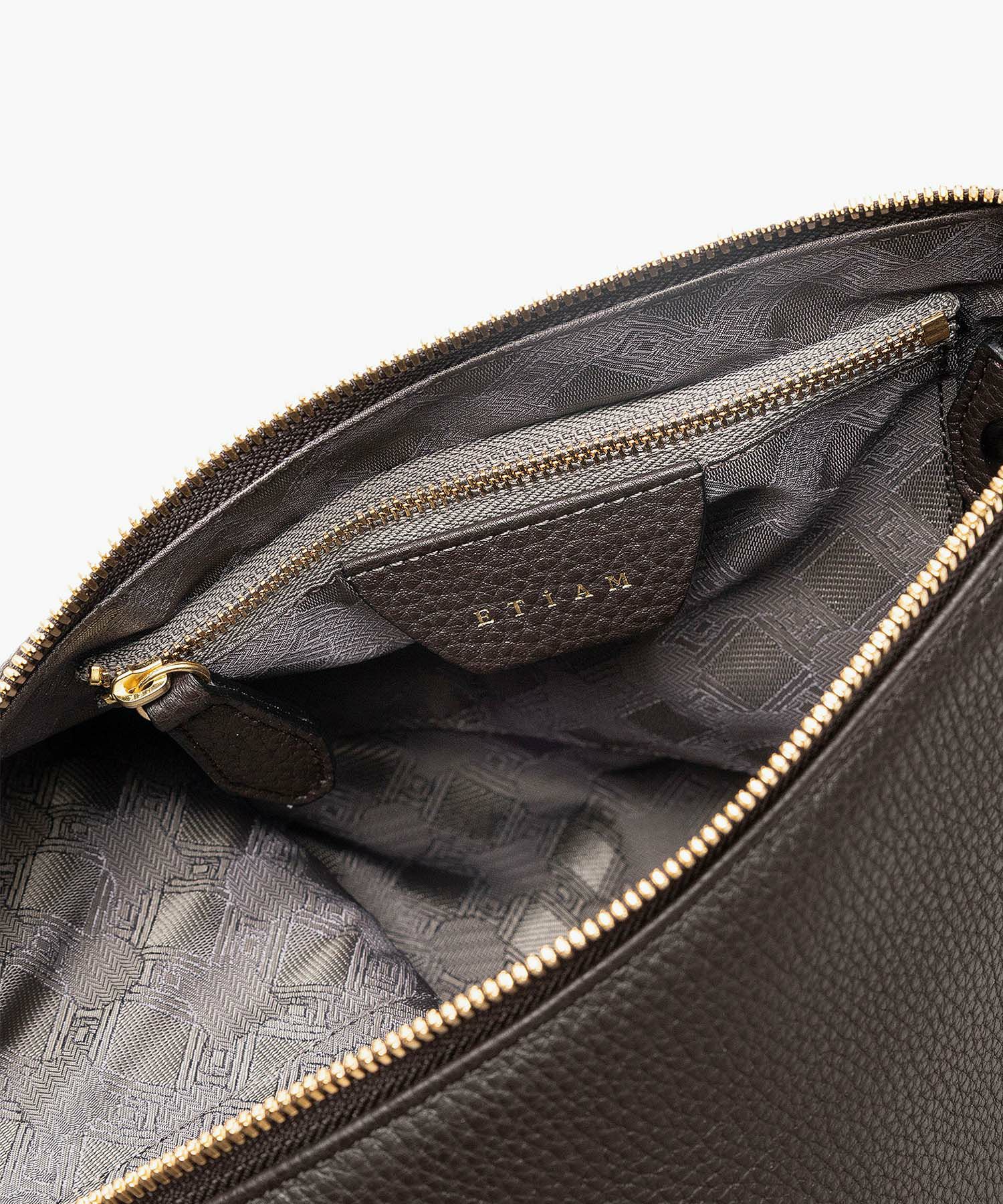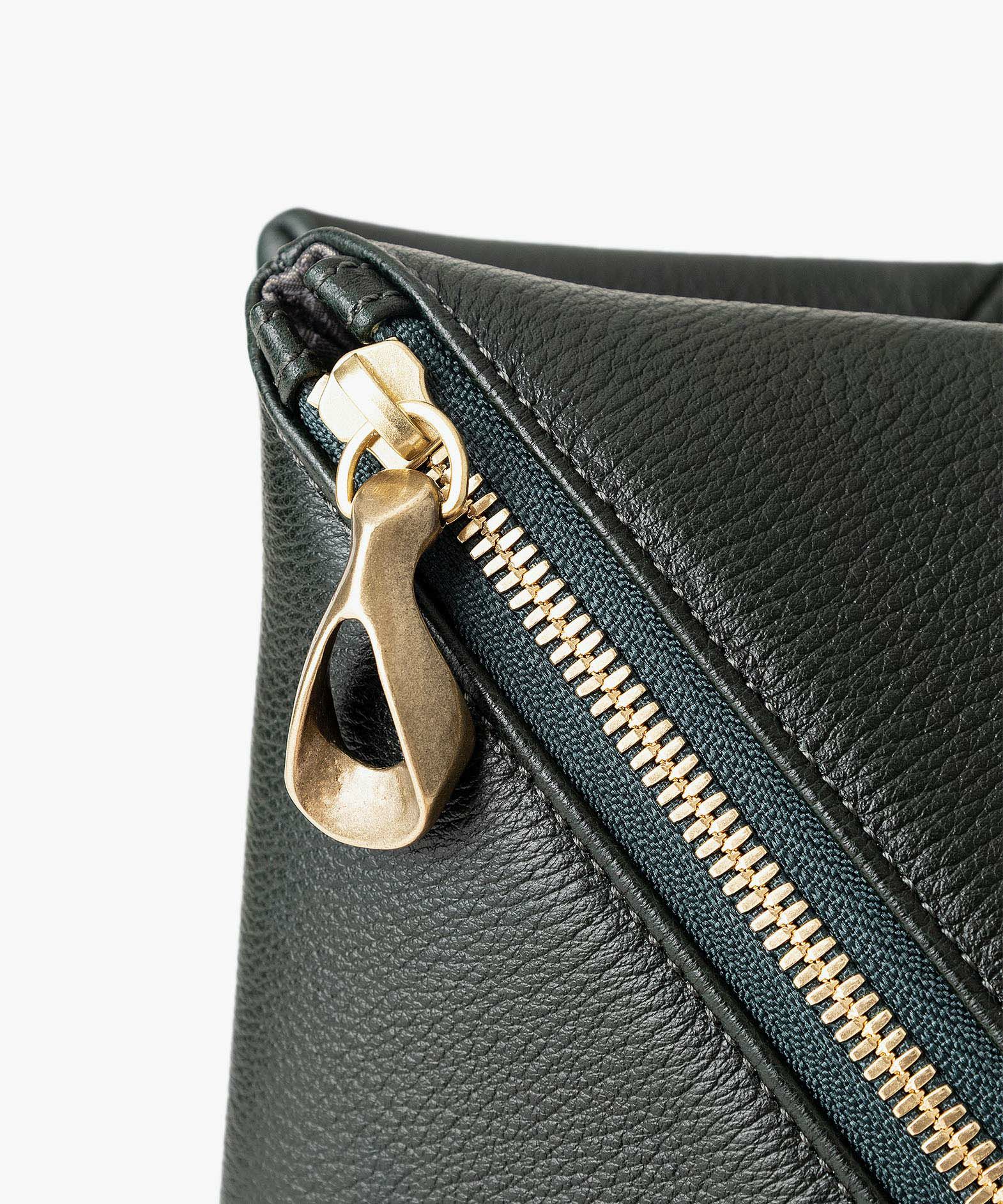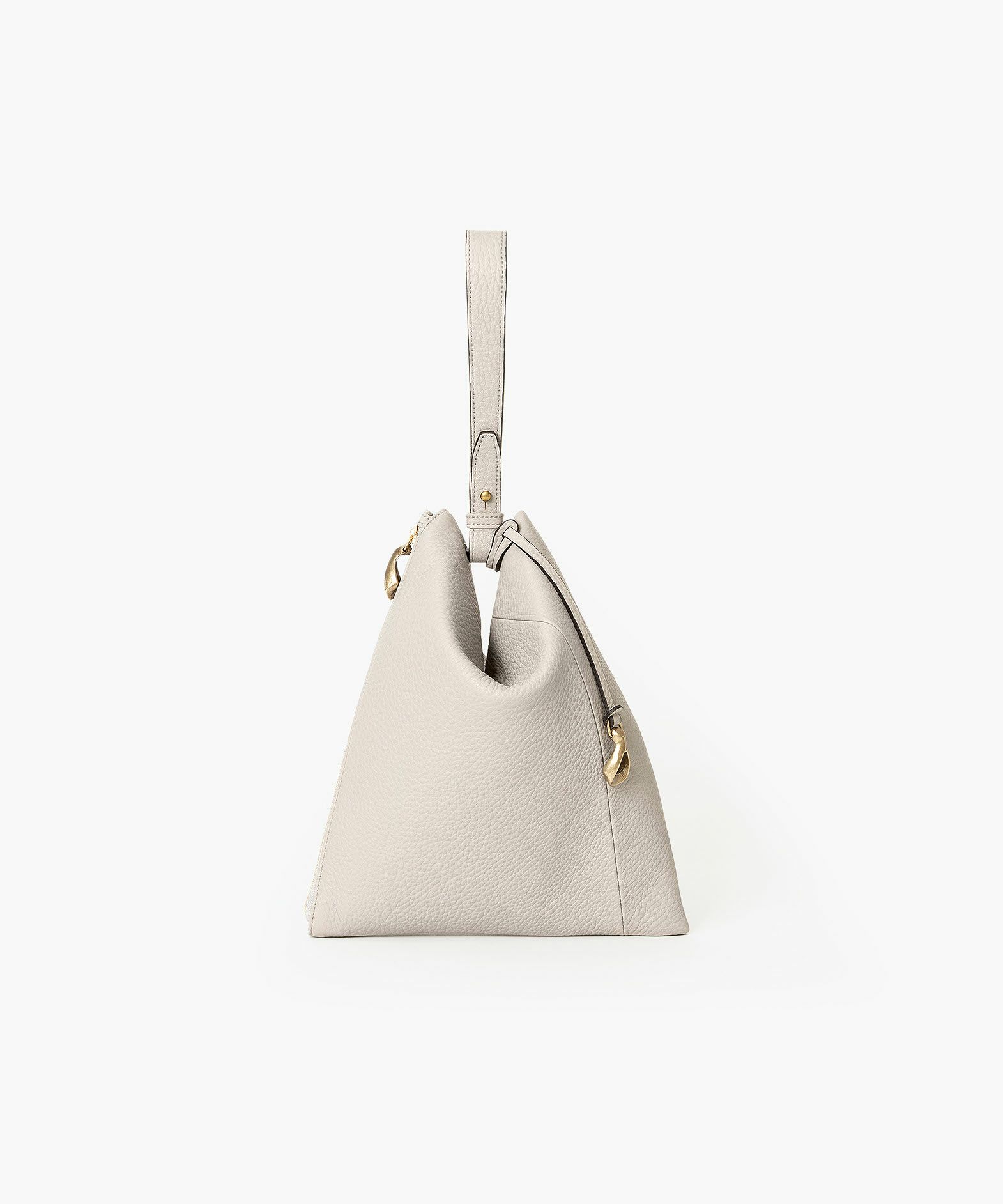 光を分散・屈折させて生まれる多彩な色を放つ光線のように、何気ない日常に鮮やかな色彩の輝きを添えてくれる、ユニセックスなデザインのトライアングルポーチ“Prism”。シボ感が美しい「シュリンクレザー」のボディとストラップを繋ぐ上部のオリジナル金具により、たわみが美しい巾着のようなシルエットを創り出し、トライアングルを想わせる洗練されたフォルムを実現。ハギ(繋ぎ目)は、前面センターではなく、あえて両サイド斜めに設けることで、上部の三角形を生かした菱形のエレガントな印象へ。また、下部を内側に折り畳んで平たくコンパクトにでき、かさばらずにバッグやスーツケースに収納することも。軽やかなシャープさが、普段使いだけでなく、旅先や出張先などでもスマートに活躍してくれる。
