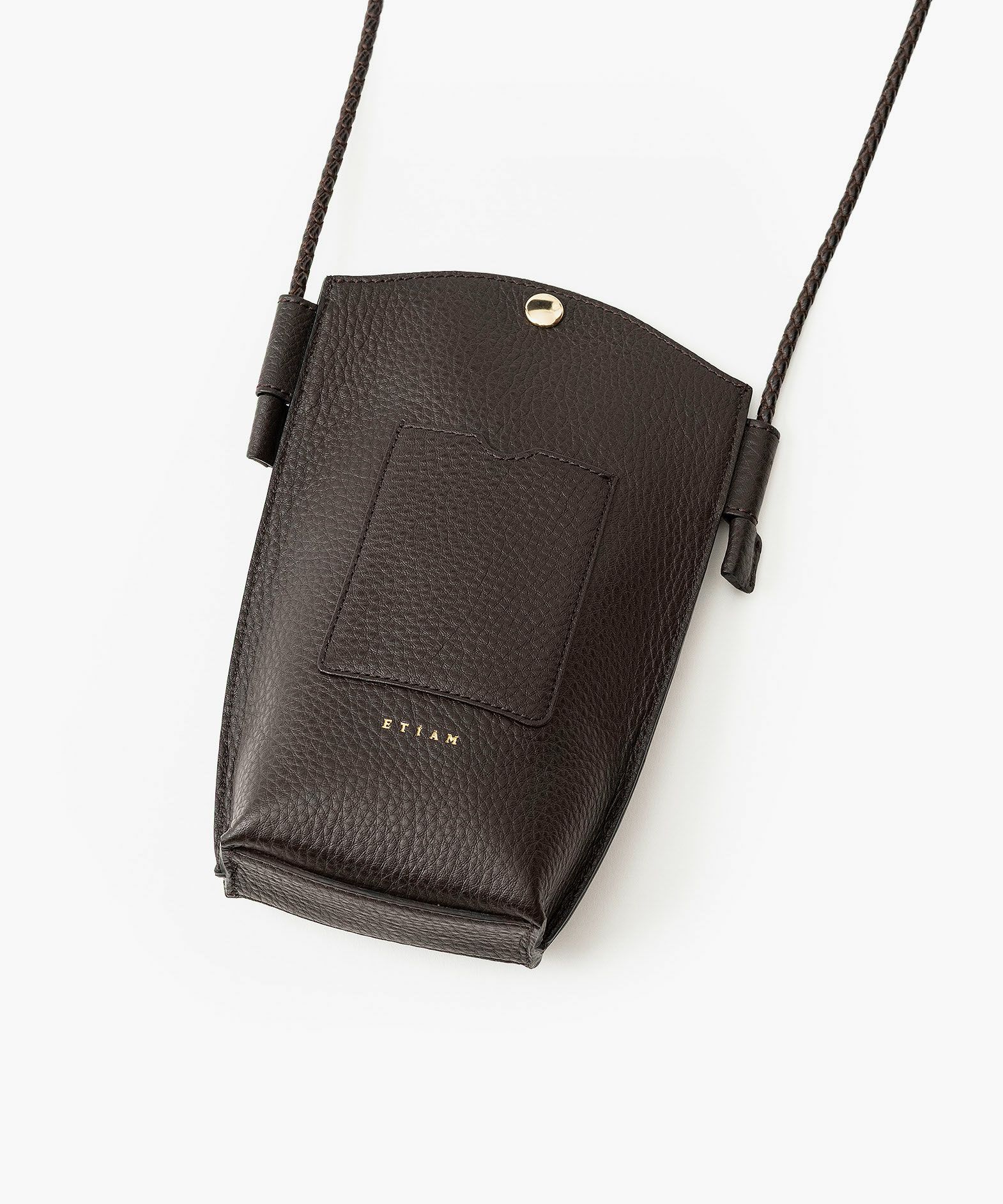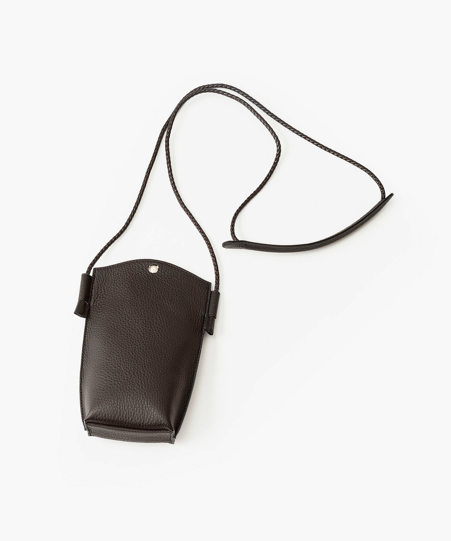 貝のような円形状のデザインとともに、スマートフォンなどを軽やかに携えられる、モバイルショルダーバッグ“Shell”。シボ感が美しい外装の「シュリンクレザー」は、前面・底面・背面に繋ぎ目がない一枚仕立てで、洗練されたエレガントな印象へ。上部の横幅を広くして下部をコンパクトすることで、収納物を見渡しやすく出し入れしやすい快適さを実現。メインポケットには、スマートフォン2台をはじめ、スマホ1台・ミニ財布・フラグメントケース・名刺入れ・パスケース・文房具などを、フレキシブルに組み合わせた収納が可能。内装にはポリエステル製スエードを採用し、スマホ画面などにもキズを付けずに、やさしく携帯できる機能性も。背面のカードポケットには、クレジットカード・交通系ICカード・名刺などを入れられて便利。程よいサイズ感のポケットをプラスするように、さまざまなシーンへ連れて行ける。