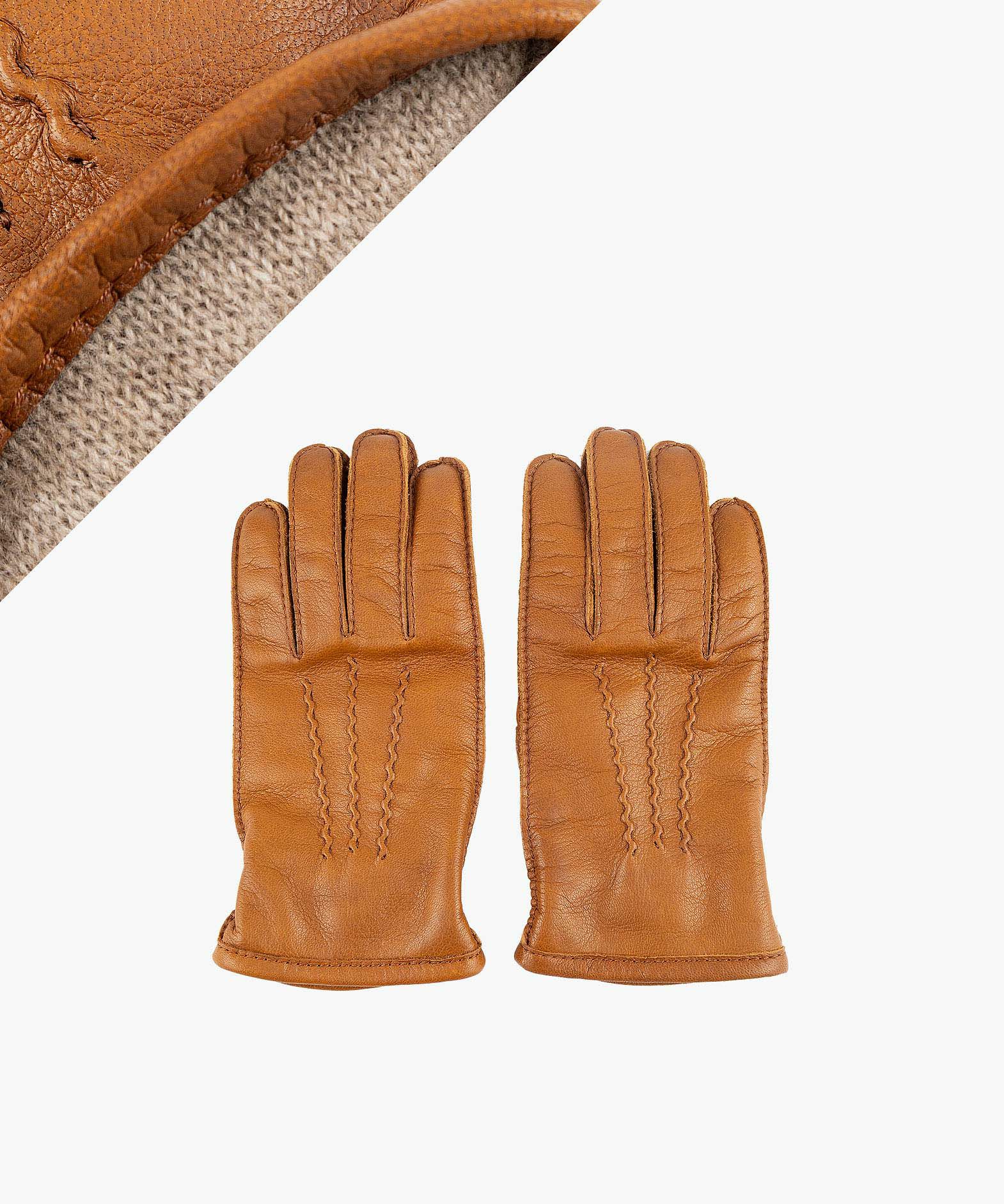 しっとりと滑らかで柔らかな「鹿革」を採用し、特有のシボが上質な風合いを引き立てながら、使い込むほどに手に馴染んでいく、ディアスキン手袋 “Standard”【MEN】。着け心地にこだわり、職人が手や指に縫い代があたらない技術「ゲージ縫い」を駆使して、日本国内で一双一双を丁寧な縫製することで、他にはない高品質を実現。裏地には、手をやさしく包み込んで心地よい温かさのカシミア100%のニットを使用し、愛着感に満たされるファッションアイテムへ。スタンダードでシンプルなデザインを、コーディネートや好みに合わせて、クラシカルなBlack・Tanの2カラーと、それぞれ3サイズからセレクトしてオーダー。スタイリッシュにレザーグローブを合わせる着こなしが、ファッションへのこだわりをさらに高めてくれる。