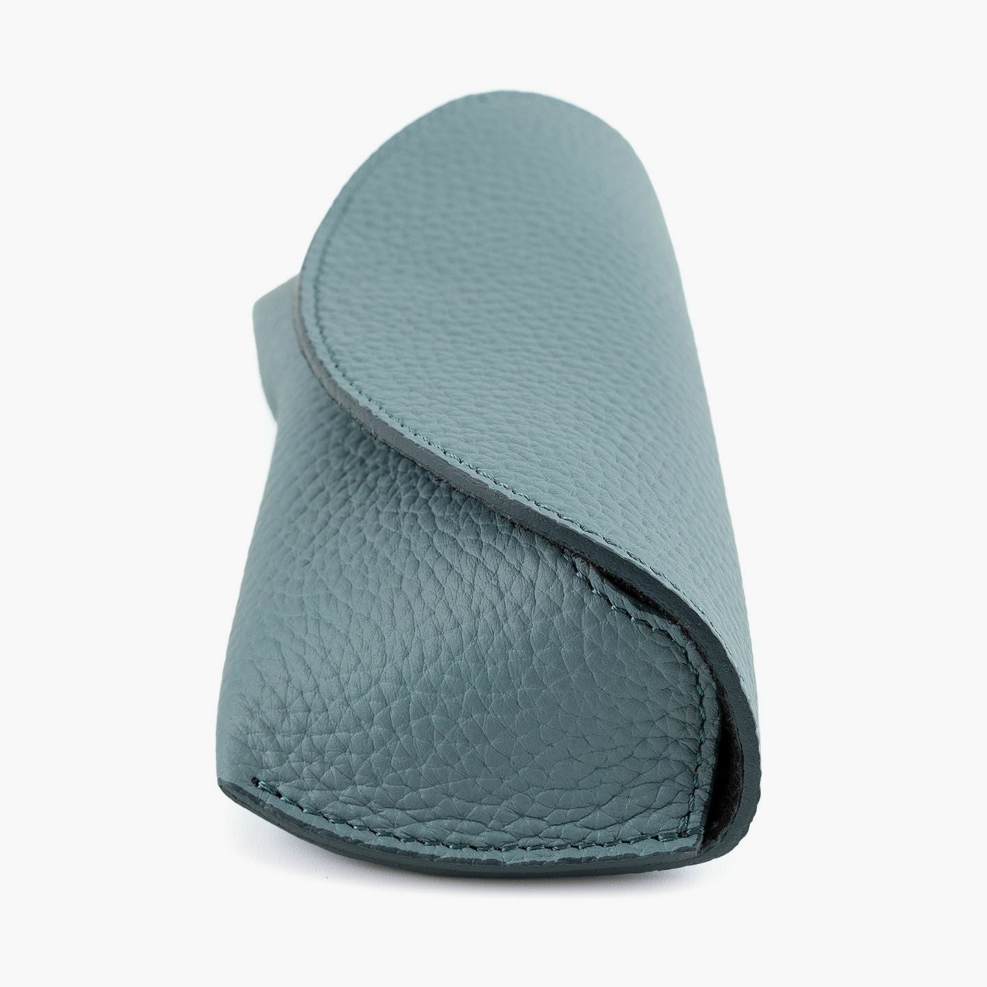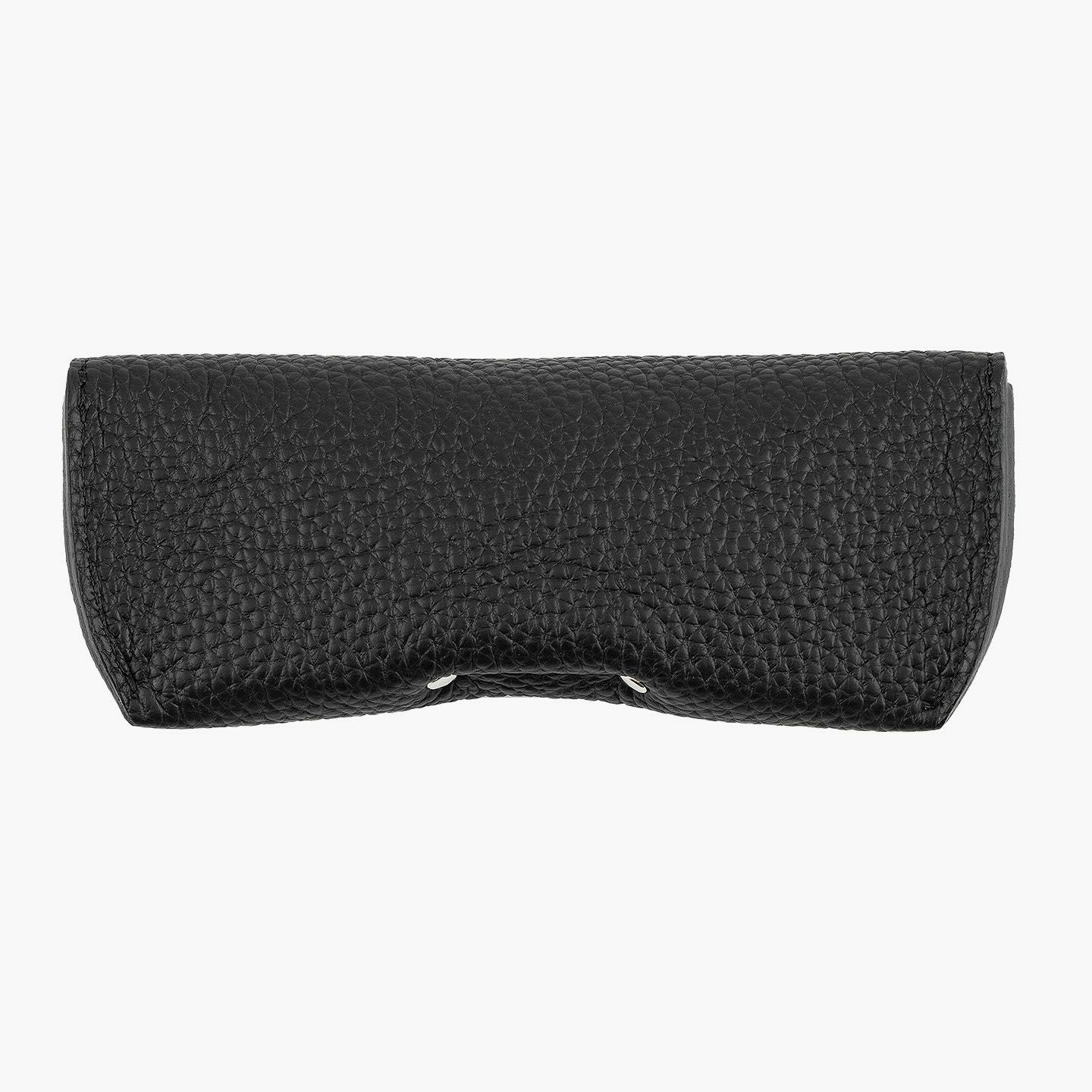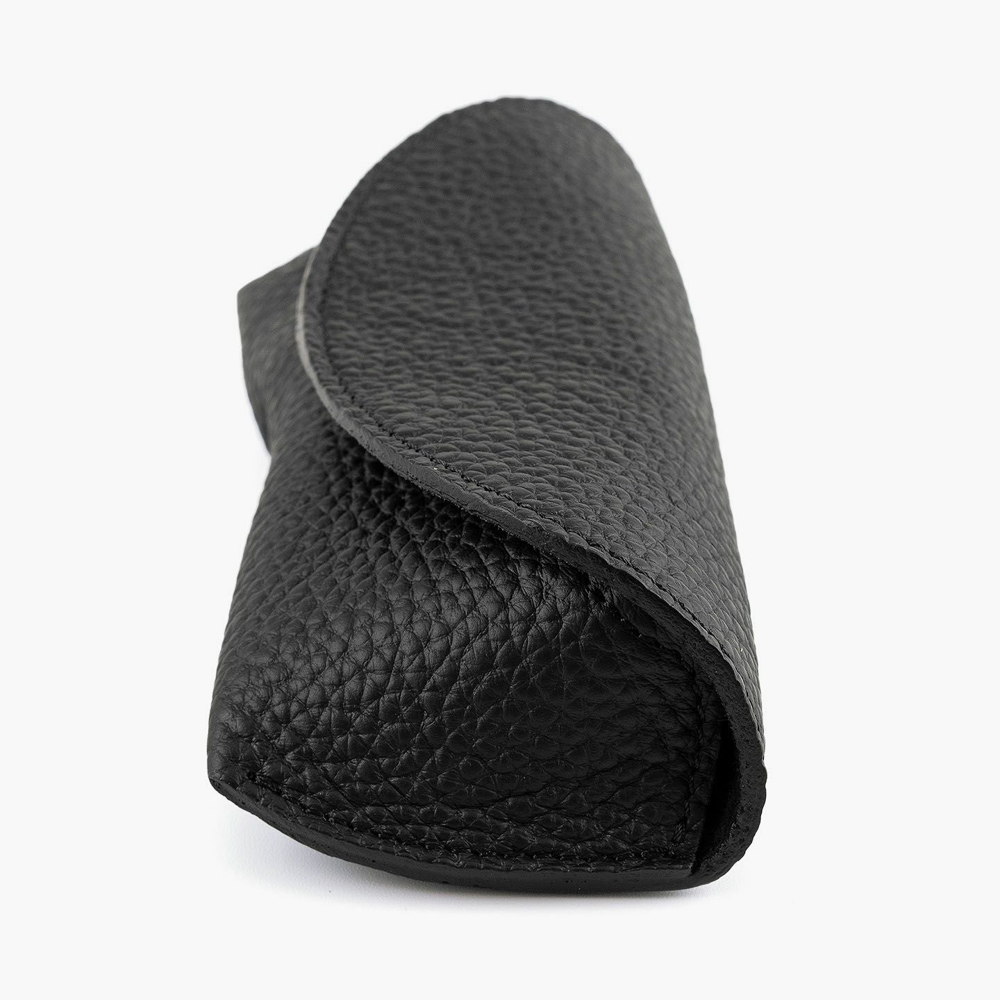 シンプルなフォルムが、素材の魅力を引き立てるオールレザーのメガネケース。外装には、深く自然なシボと美しい光沢を湛えた、厚みのあるエンボスレザーを贅沢に使用。重厚感と高級感を兼ね備えた革が、使うほどに愛着を深めてくれます。内装にはピッグレザーを合わせ、滑らかな手触りとメガネの保護性を両立。さらに、ケース内部には硬めのレザー製鼻あてを備え、型崩れや傷つきを防ぐ設計で実用性も十分。カラーバリエーションは、シックなブラック、上品なトープ、遊び心あふれるスカイ、大人の品格漂うゴールドの4色。いずれも落ち着きのある発色で、性別や年齢を問わず愛用いただける洗練のカラーラインアップです。国内老舗タンナーによって仕上げられたこのエンボスレザーは、一般的な1.5mm前後の革とは異なり、約2.0mm弱の厚みを確保。この“わずか0.5mm”が、仕上がりの印象を一段引き上げ、ペラつきのない堂々とした存在感を演出します。革の品質に一切の妥協なく選ばれた、こだわりの逸品です。