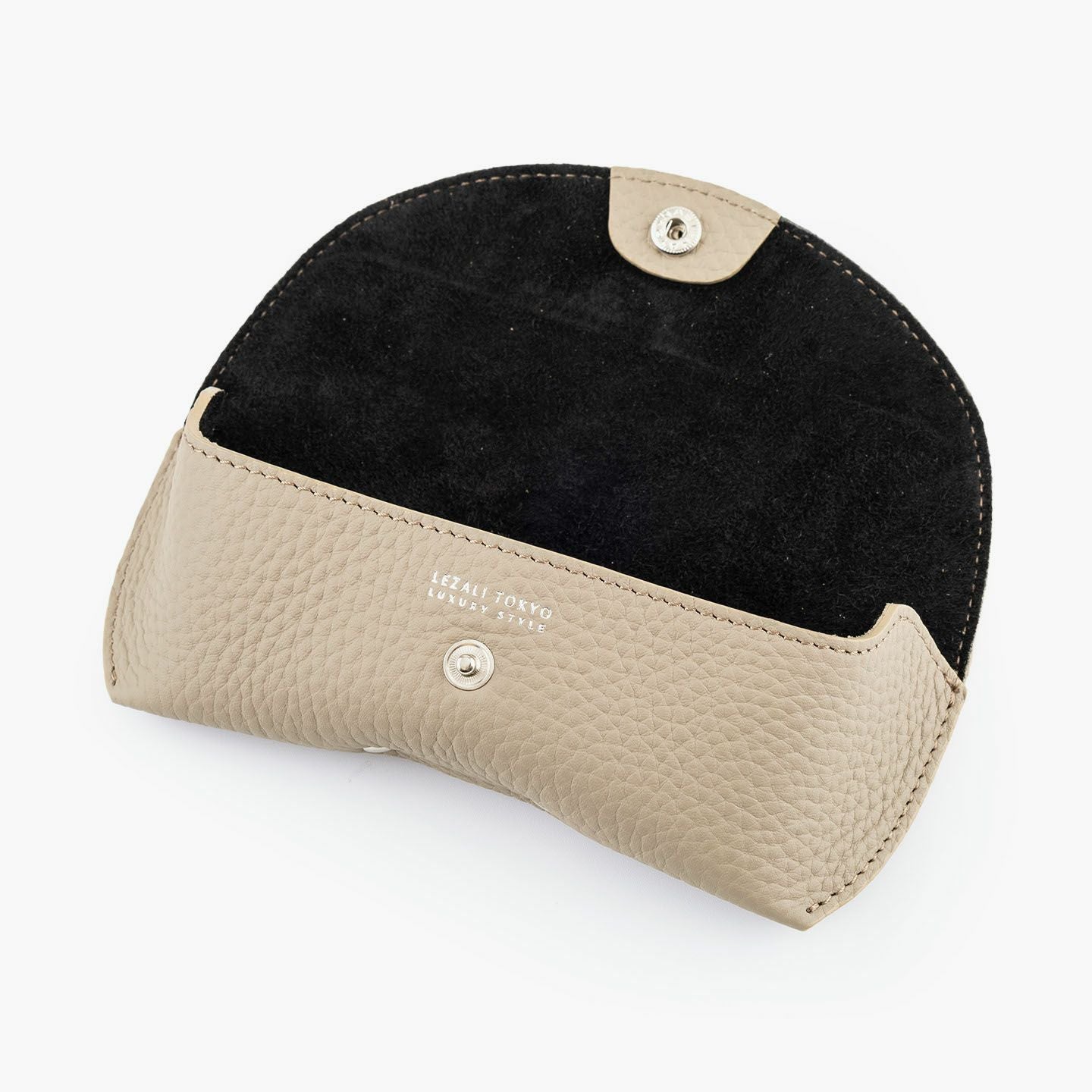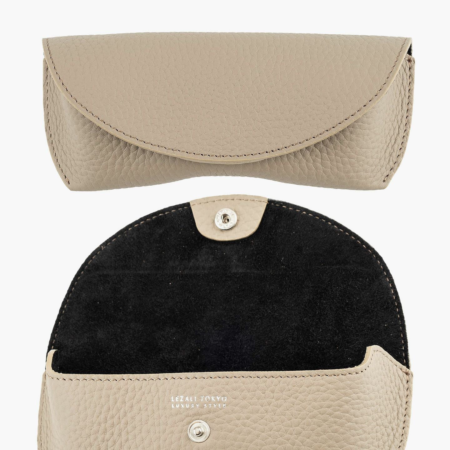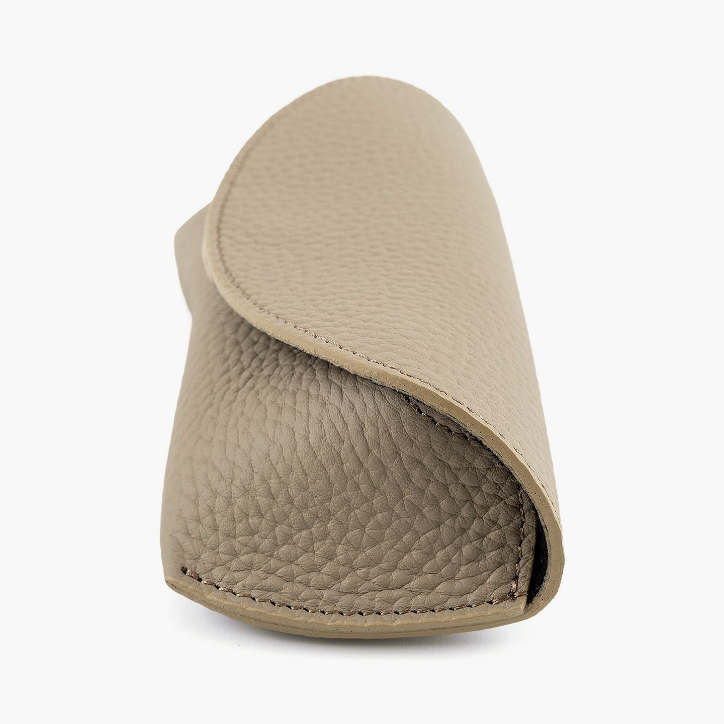シンプルなフォルムが、素材の魅力を引き立てるオールレザーのメガネケース。外装には、深く自然なシボと美しい光沢を湛えた、厚みのあるエンボスレザーを贅沢に使用。重厚感と高級感を兼ね備えた革が、使うほどに愛着を深めてくれます。内装にはピッグレザーを合わせ、滑らかな手触りとメガネの保護性を両立。さらに、ケース内部には硬めのレザー製鼻あてを備え、型崩れや傷つきを防ぐ設計で実用性も十分。カラーバリエーションは、シックなブラック、上品なトープ、遊び心あふれるスカイ、大人の品格漂うゴールドの4色。いずれも落ち着きのある発色で、性別や年齢を問わず愛用いただける洗練のカラーラインアップです。国内老舗タンナーによって仕上げられたこのエンボスレザーは、一般的な1.5mm前後の革とは異なり、約2.0mm弱の厚みを確保。この“わずか0.5mm”が、仕上がりの印象を一段引き上げ、ペラつきのない堂々とした存在感を演出します。革の品質に一切の妥協なく選ばれた、こだわりの逸品です。