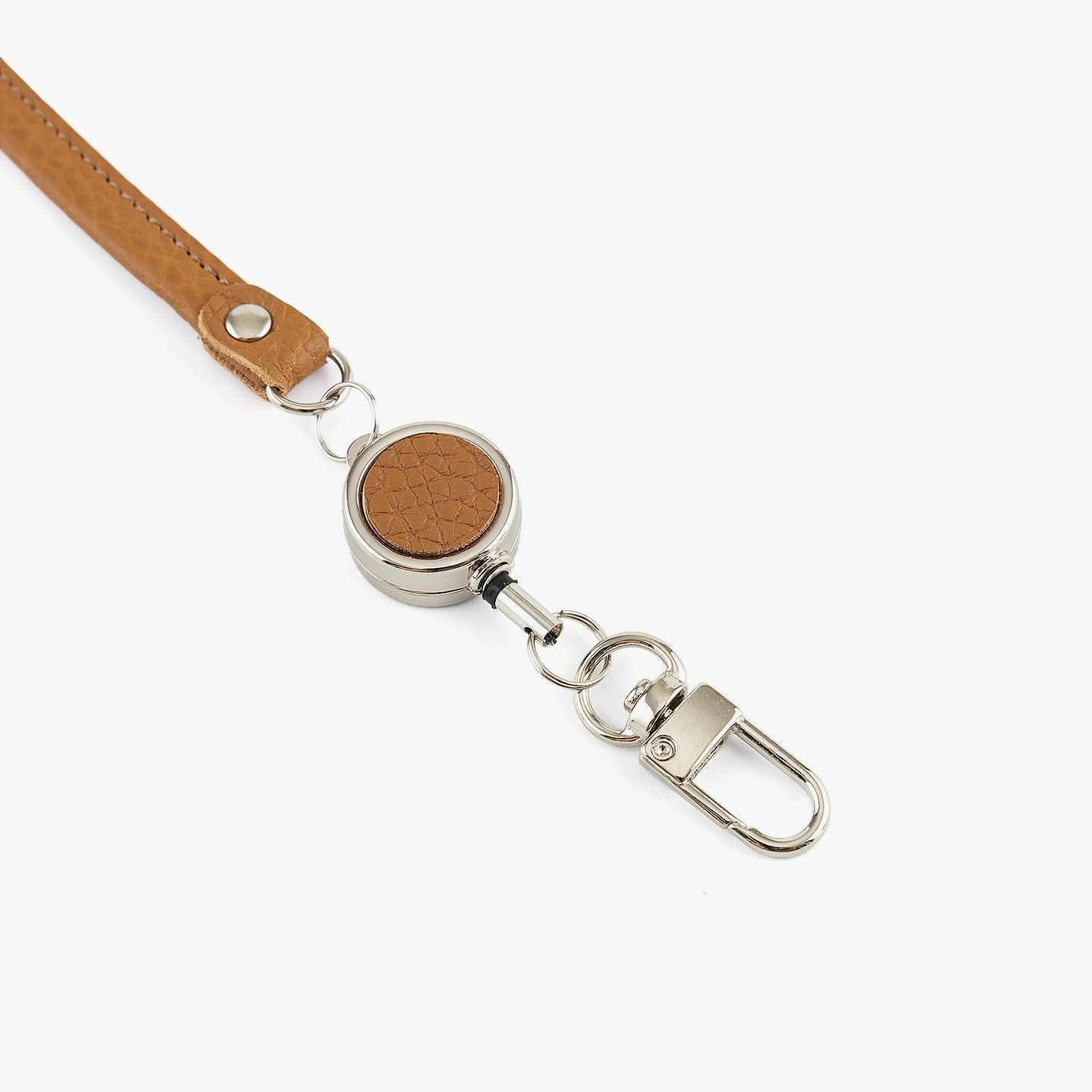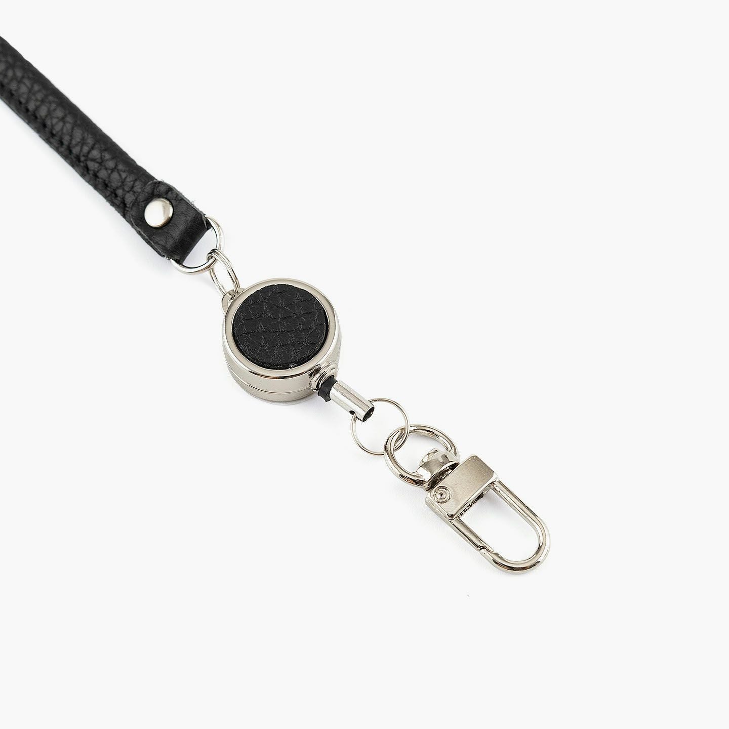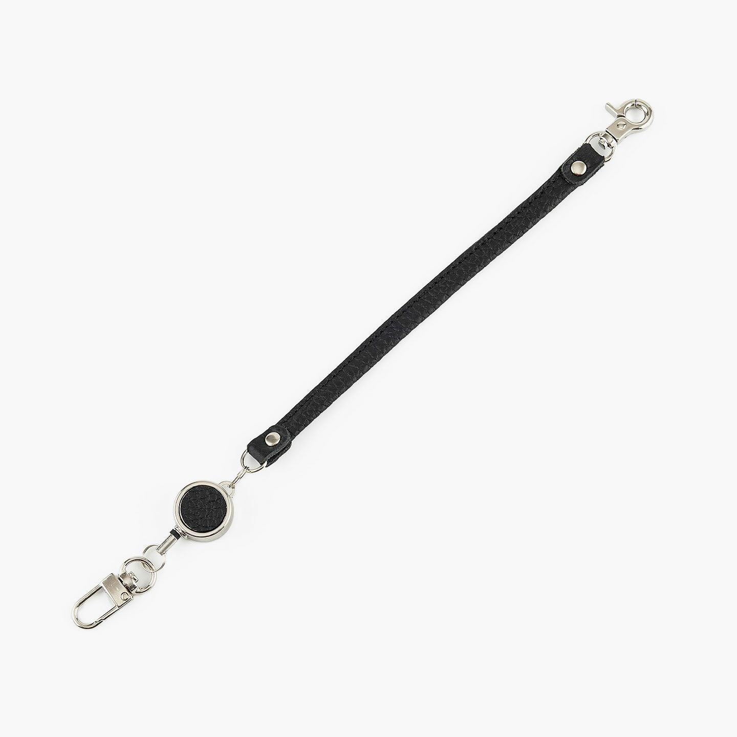 最大約32cmまで伸びるリール式コードを備えた、便利さと上質さを兼ね備えたオールレザーのキーホルダー。老舗タンナーによって仕上げられた厚みのあるエンボスレザーは、美しいシボ感と自然な光沢、そして2.0mm弱のしっかりとした革厚によって、製品になった際に重厚な高級感を演出。両サイドには曲線が印象的なナスカンを採用し、ニッケルシルバーで統一された金具がスマートな雰囲気を引き立てます。そのままベルトループに装着したり、バッグに巻きつけてチャームのように使ったりと、自由なスタイルで楽しめる機能的なアイテム。日常使いの実用性とファッション性を両立させた、ワンランク上のレザーアクセサリーです。