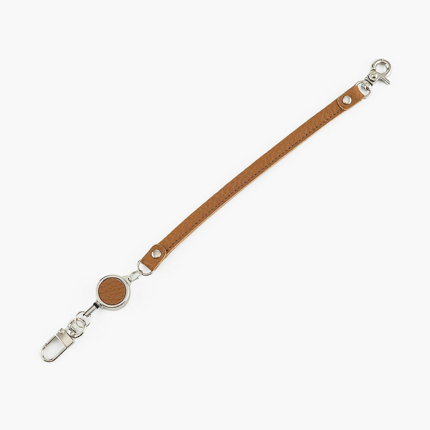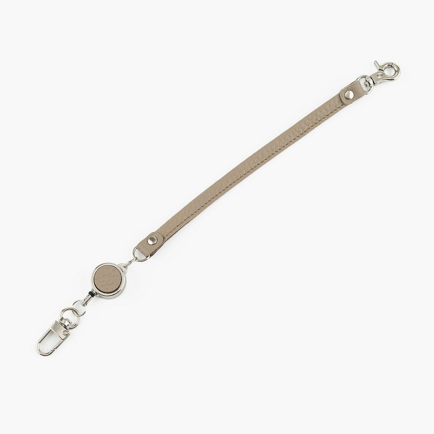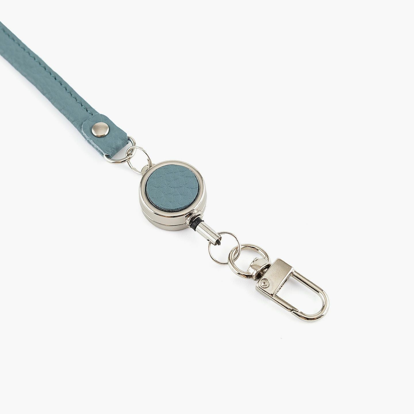 最大約32cmまで伸びるリール式コードを備えた、便利さと上質さを兼ね備えたオールレザーのキーホルダー。老舗タンナーによって仕上げられた厚みのあるエンボスレザーは、美しいシボ感と自然な光沢、そして2.0mm弱のしっかりとした革厚によって、製品になった際に重厚な高級感を演出。両サイドには曲線が印象的なナスカンを採用し、ニッケルシルバーで統一された金具がスマートな雰囲気を引き立てます。そのままベルトループに装着したり、バッグに巻きつけてチャームのように使ったりと、自由なスタイルで楽しめる機能的なアイテム。日常使いの実用性とファッション性を両立させた、ワンランク上のレザーアクセサリーです。