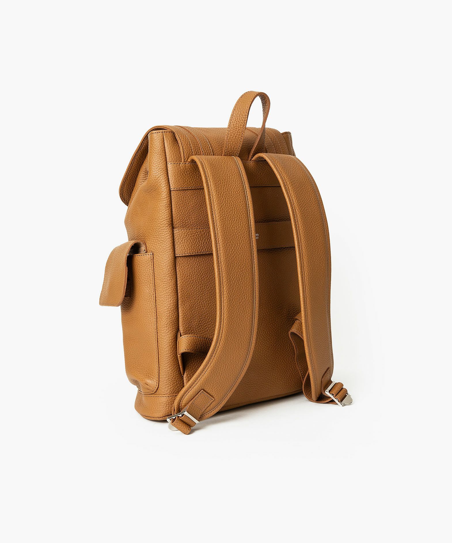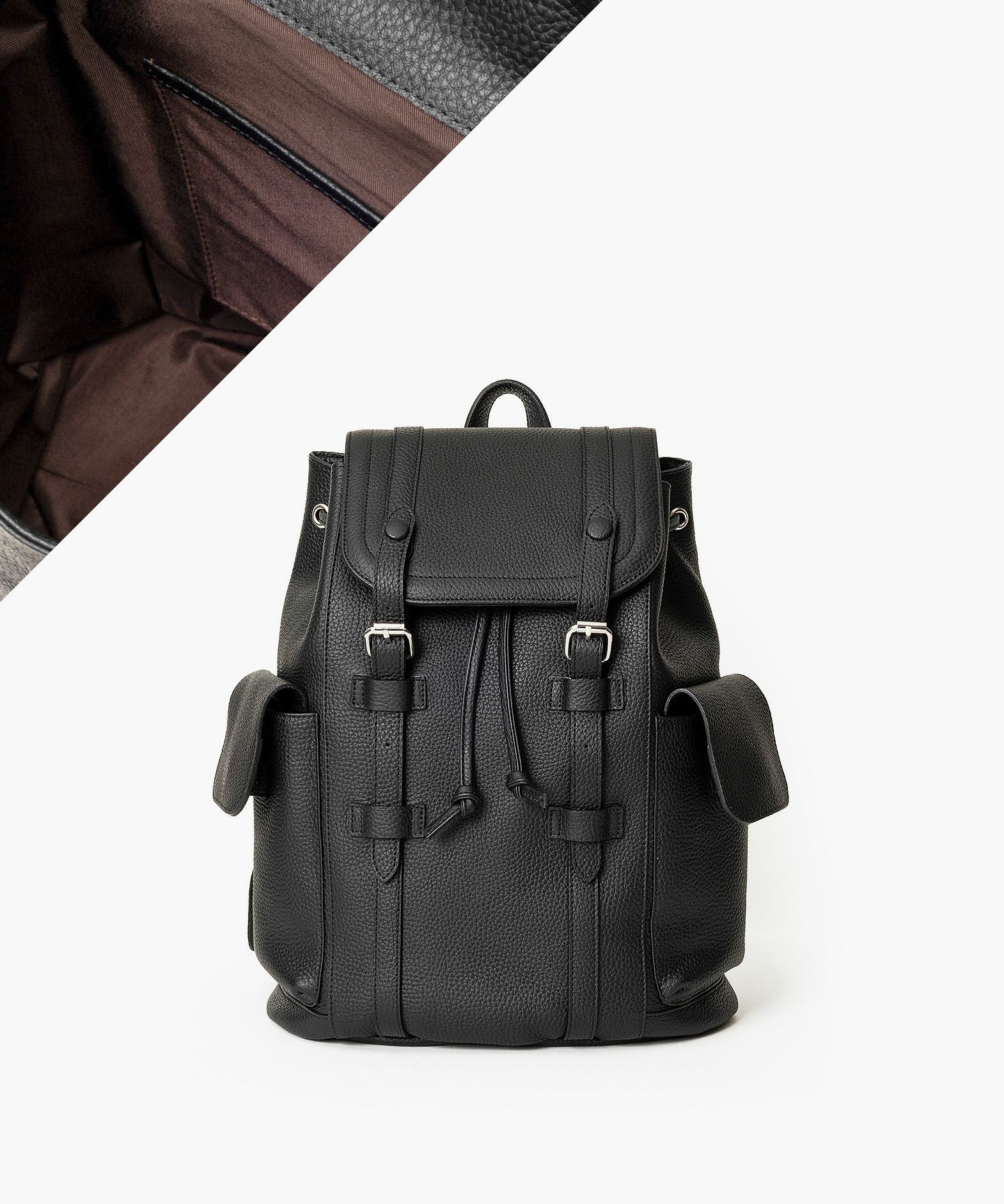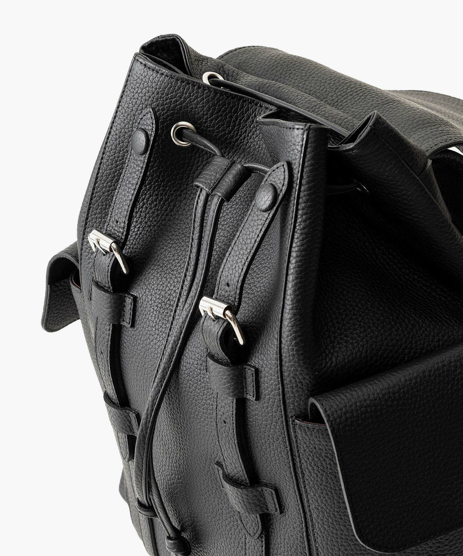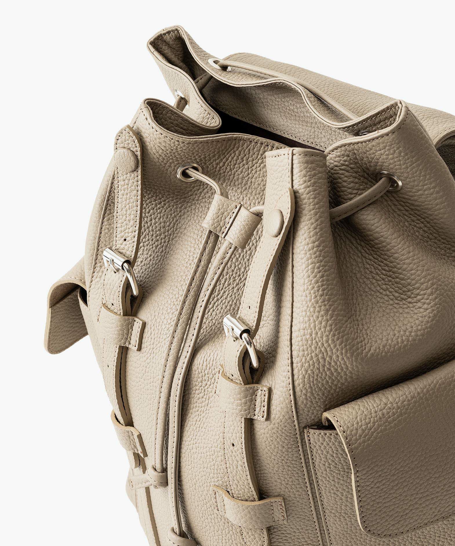 性別も年齢も問わず、オンでもオフでも合わせやすいので、幅広いユーザーが幅広いシーンで持ち歩ける、上質スタイルのデイパック。国内の老舗タンナーが仕上げた、気品あふれる外装「エンボスレザー」は、通常より革厚が0.5mmほど厚い20mm弱を採用し、贅沢なフルレザーとともに重厚感と高級感を創出。キズが付きにくく、水にも比較的に強いので、ラフな使い方をすることも。絶妙に組み合わせられた50以上のパーツで構成され、各パーツを職人の手で丁寧に仕上げているのも魅力。A4サイズを余裕で入れられる大容量設計と、巾着式の開閉によるオープンポケット1つのシンプルな構造で、ざっくりと荷物を収納できて出し入れも簡単。実用性にも優れる洗練されたデザインが、大人の感性を響かせてくれる。