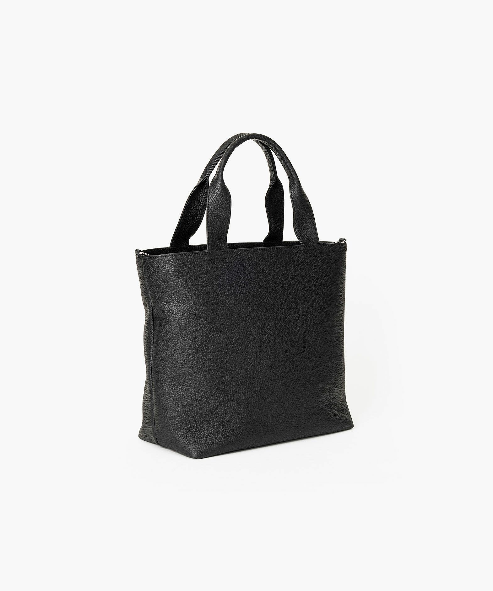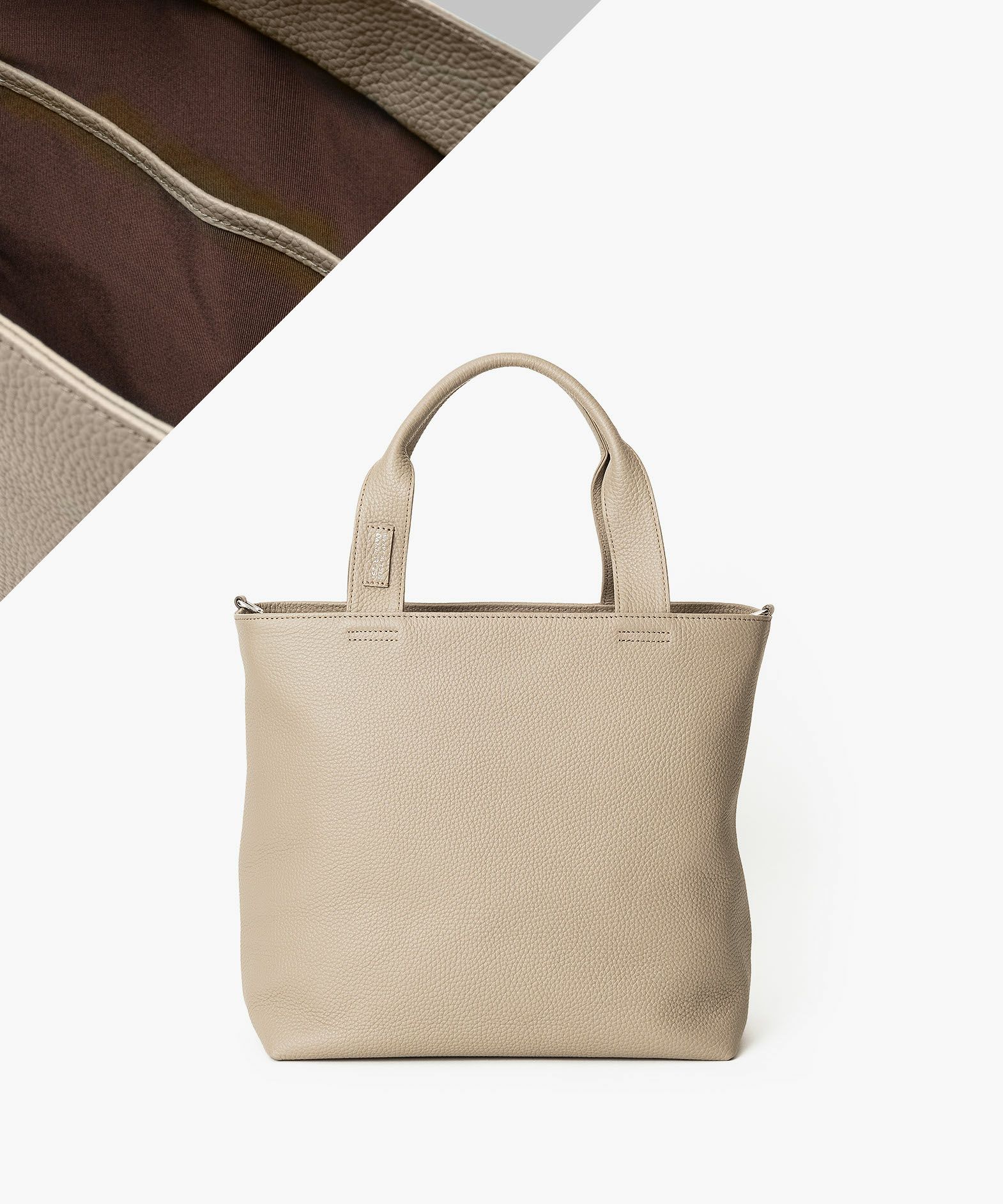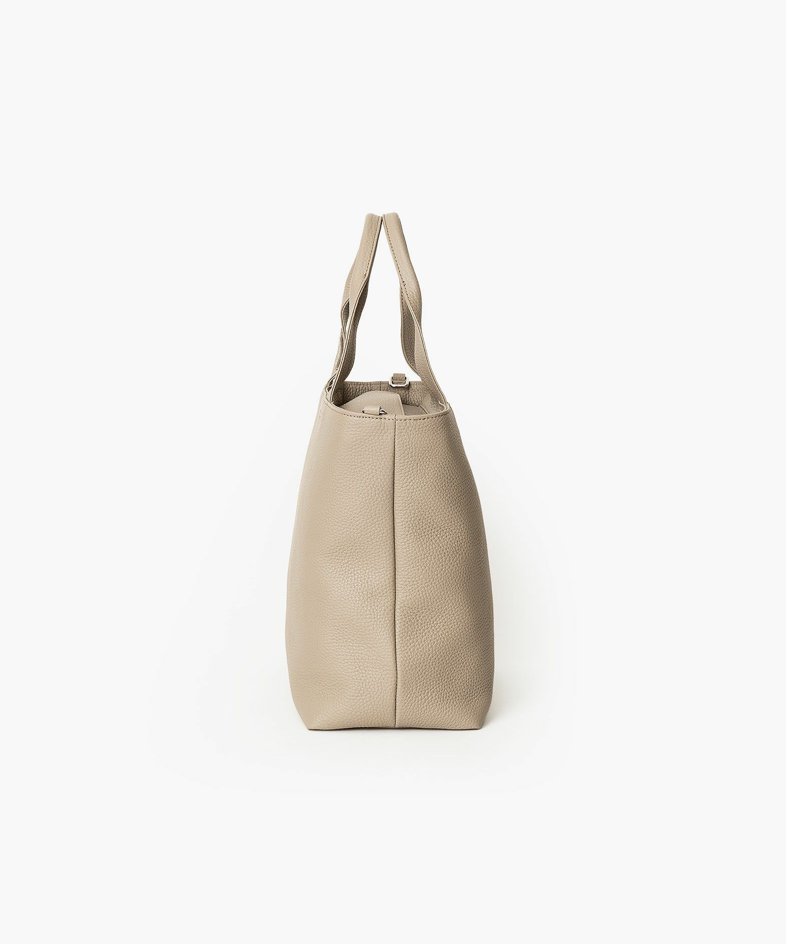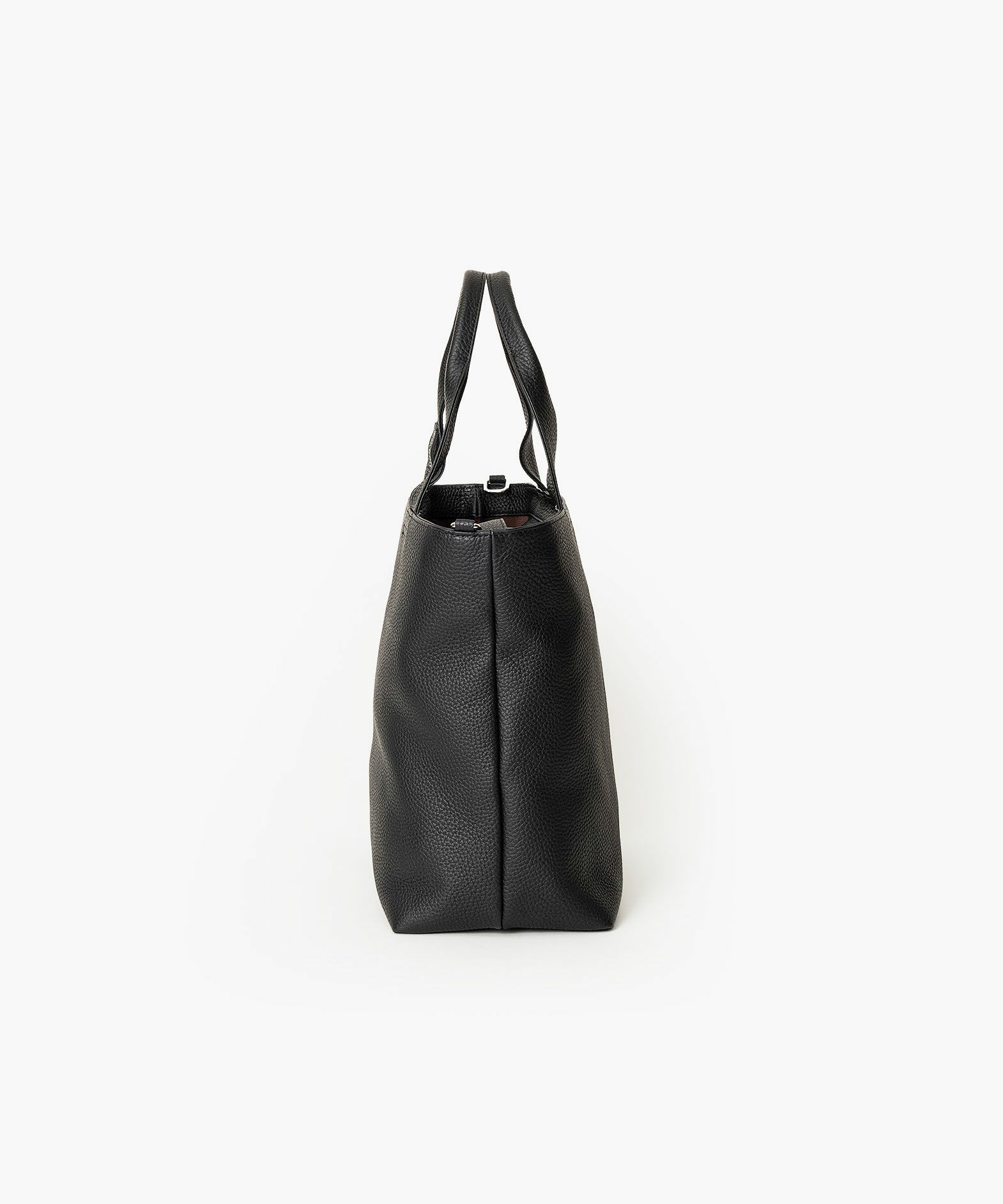 大人気のミニトートをベースに、お客様からのご要望を反映させて、しっかりとA4サイズが収納できる設計にアップグレードさせた、A4トートバッグ。収納時に安心な天カバーや、何かと便利なショルダーカンも備えさせ、ユーザー視点での使い勝手にも配慮。革厚が通常よりも0.5mmほど厚い20mm弱の「エンボスレザー」を、外装として贅沢に纏わせて重厚感を醸成しながら、約900gという驚異的な軽さを実現。さらに、芯材・金具の使い方やハンドルの持ちやすさなど、さまざまな細かい工夫を施すことで、実際の質量よりも軽く感じられる使い心地へと昇華。手持ちでも肩掛けでも快適に持ち歩ける、絶妙な長さのハンドルによるスマートさが、性別・年齢問わずスタイリュシュな佇まいを演出してくれる。