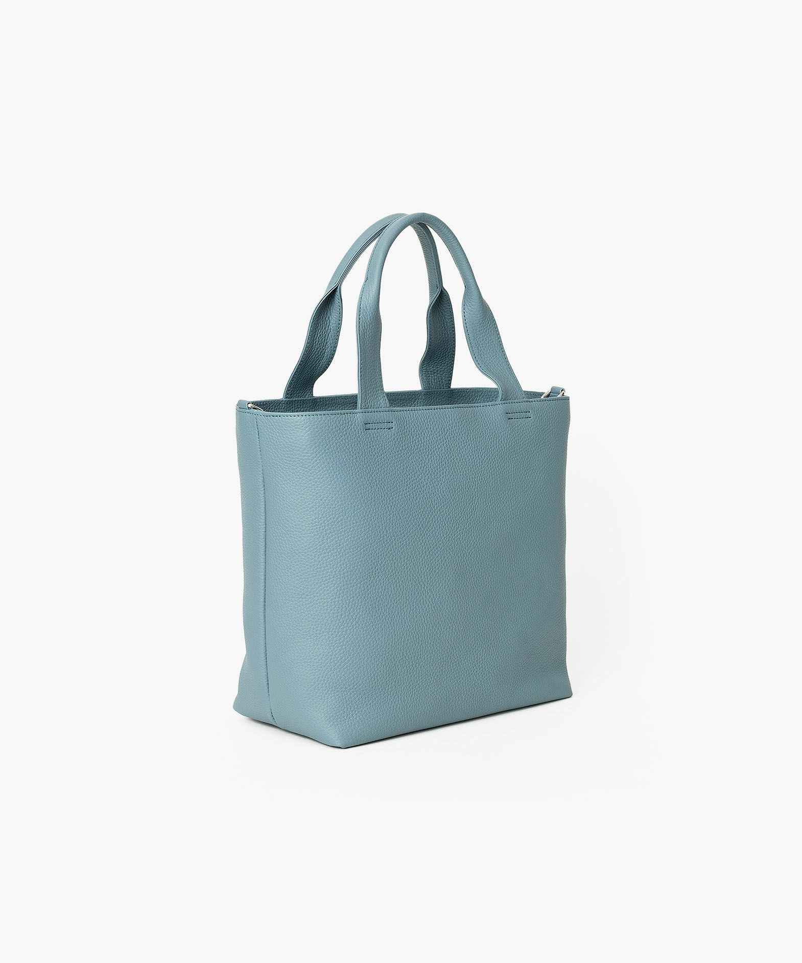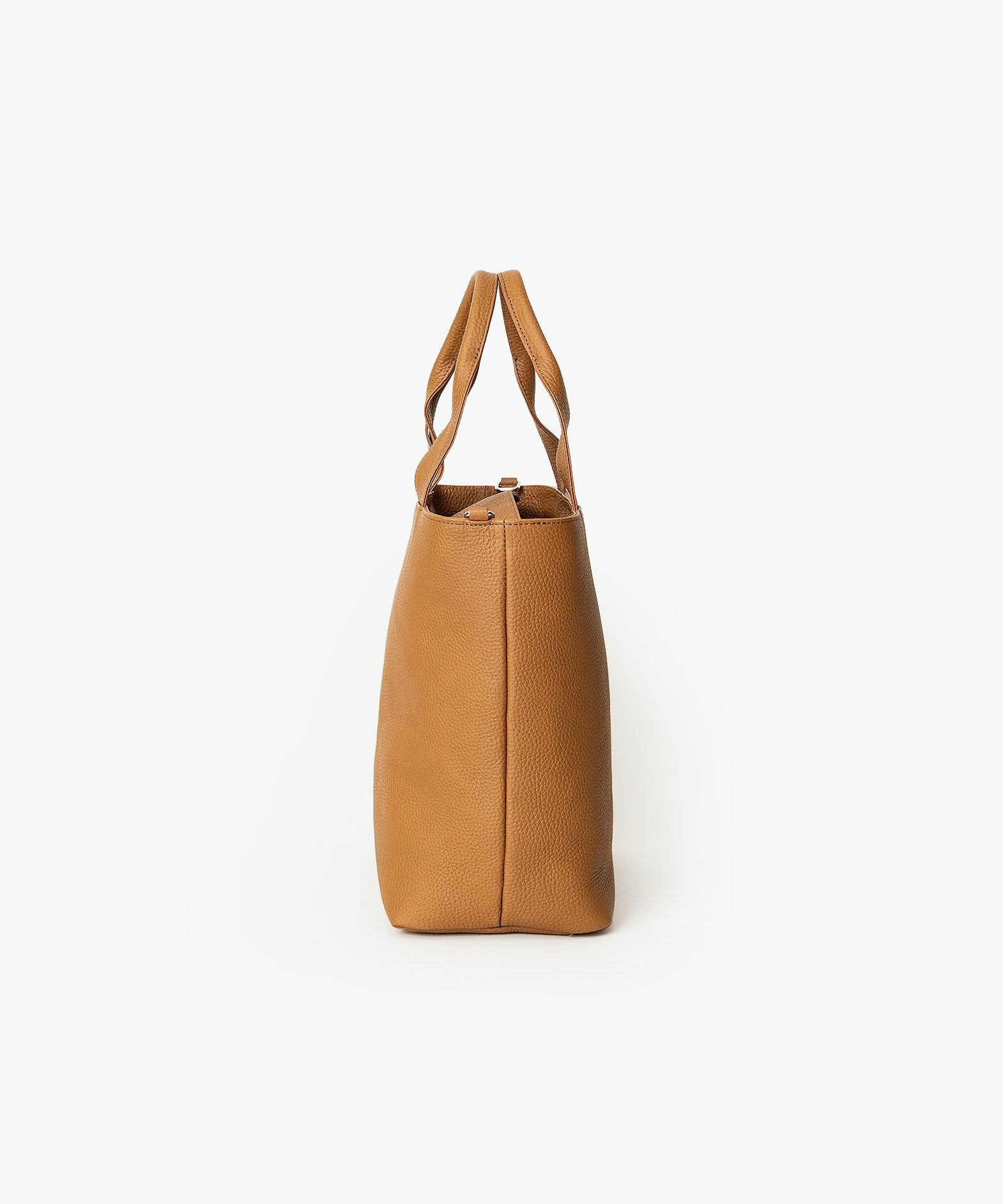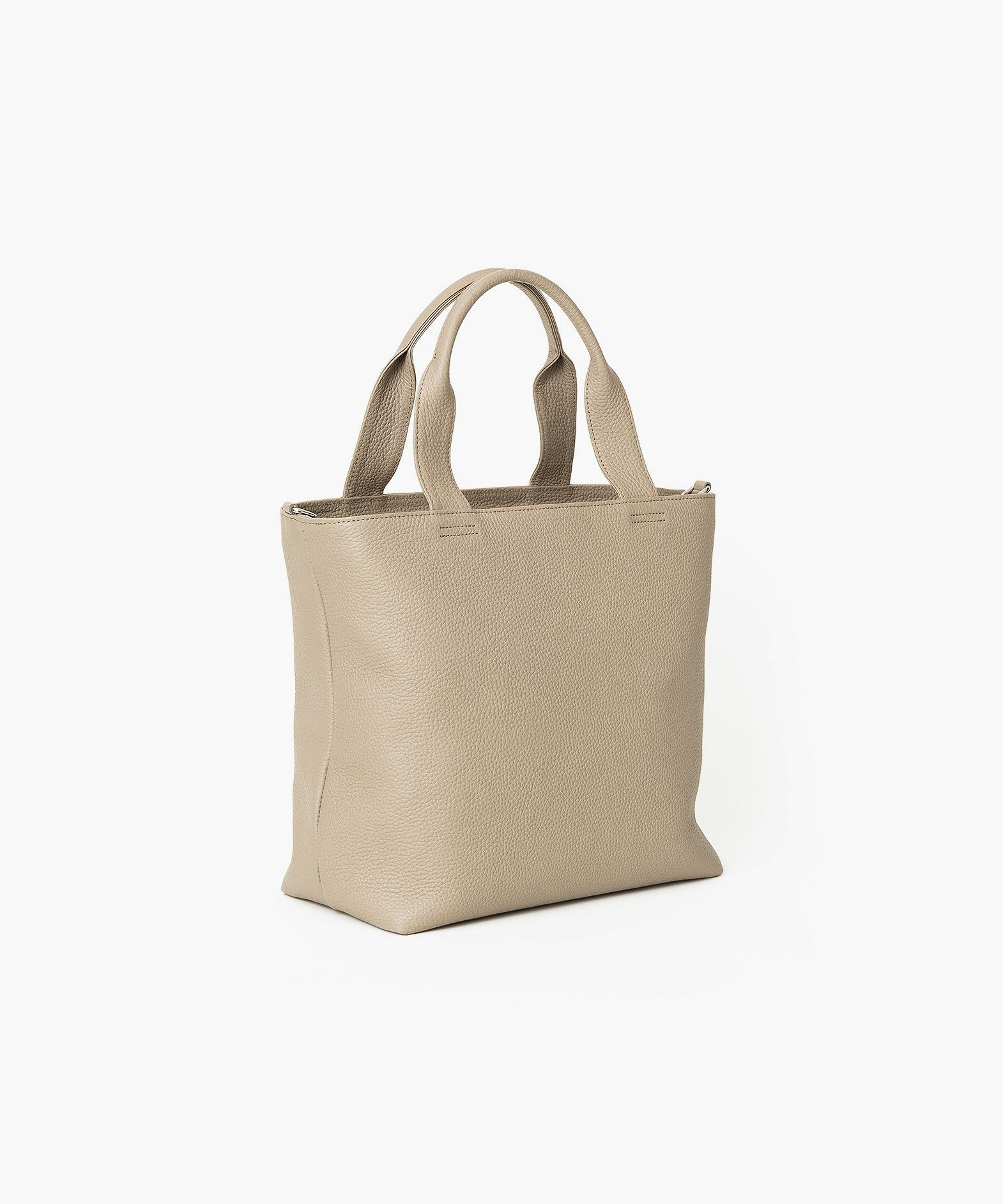 大人気のミニトートをベースに、お客様からのご要望を反映させて、しっかりとA4サイズが収納できる設計にアップグレードさせた、A4トートバッグ。収納時に安心な天カバーや、何かと便利なショルダーカンも備えさせ、ユーザー視点での使い勝手にも配慮。革厚が通常よりも0.5mmほど厚い20mm弱の「エンボスレザー」を、外装として贅沢に纏わせて重厚感を醸成しながら、約900gという驚異的な軽さを実現。さらに、芯材・金具の使い方やハンドルの持ちやすさなど、さまざまな細かい工夫を施すことで、実際の質量よりも軽く感じられる使い心地へと昇華。手持ちでも肩掛けでも快適に持ち歩ける、絶妙な長さのハンドルによるスマートさが、性別・年齢問わずスタイリュシュな佇まいを演出してくれる。