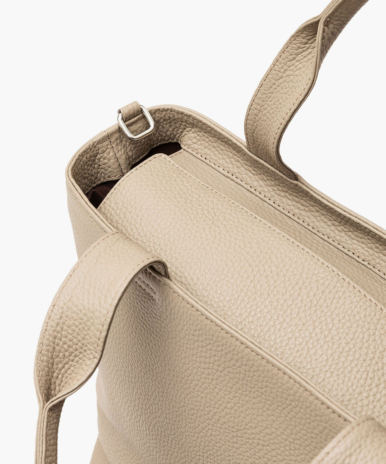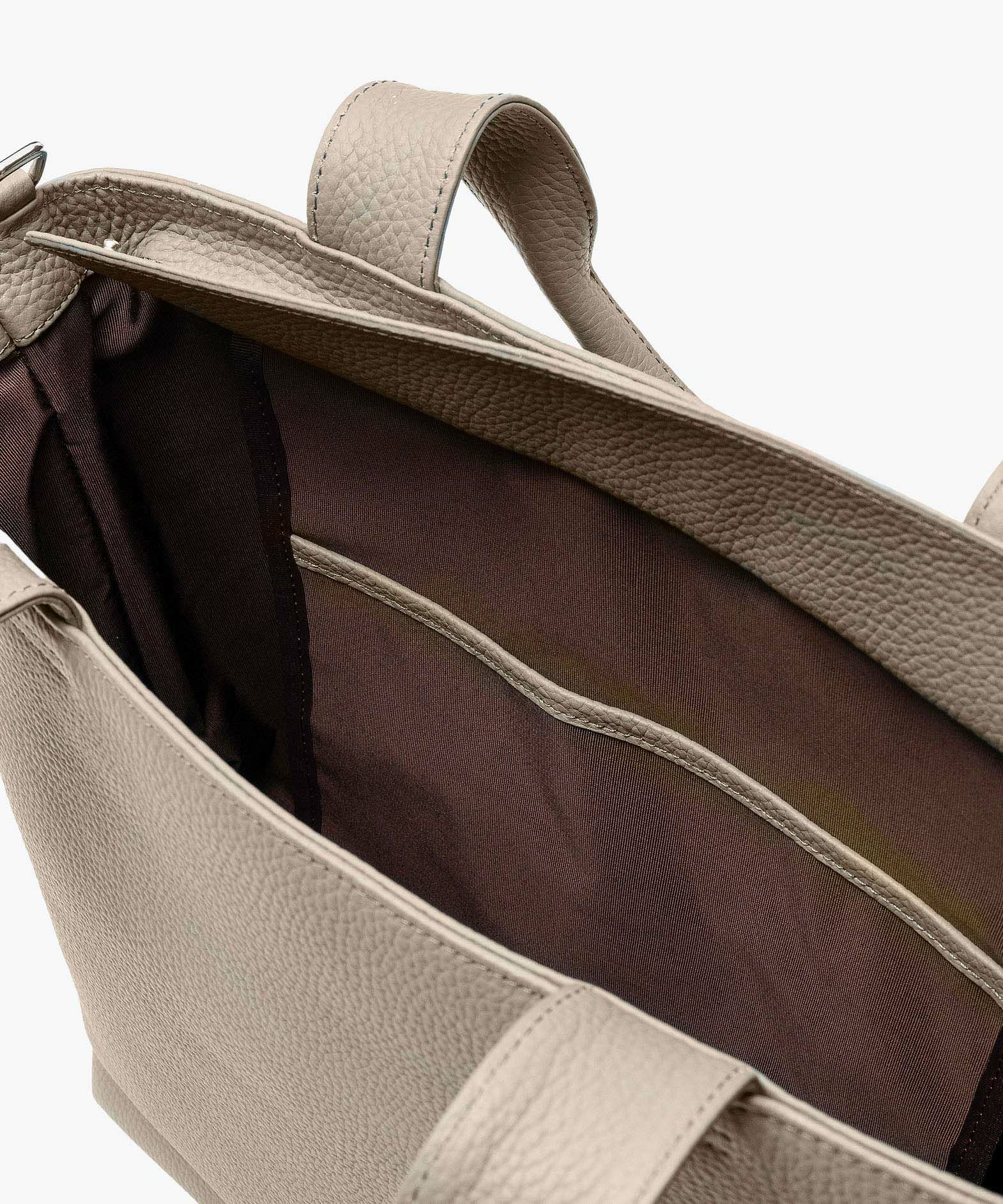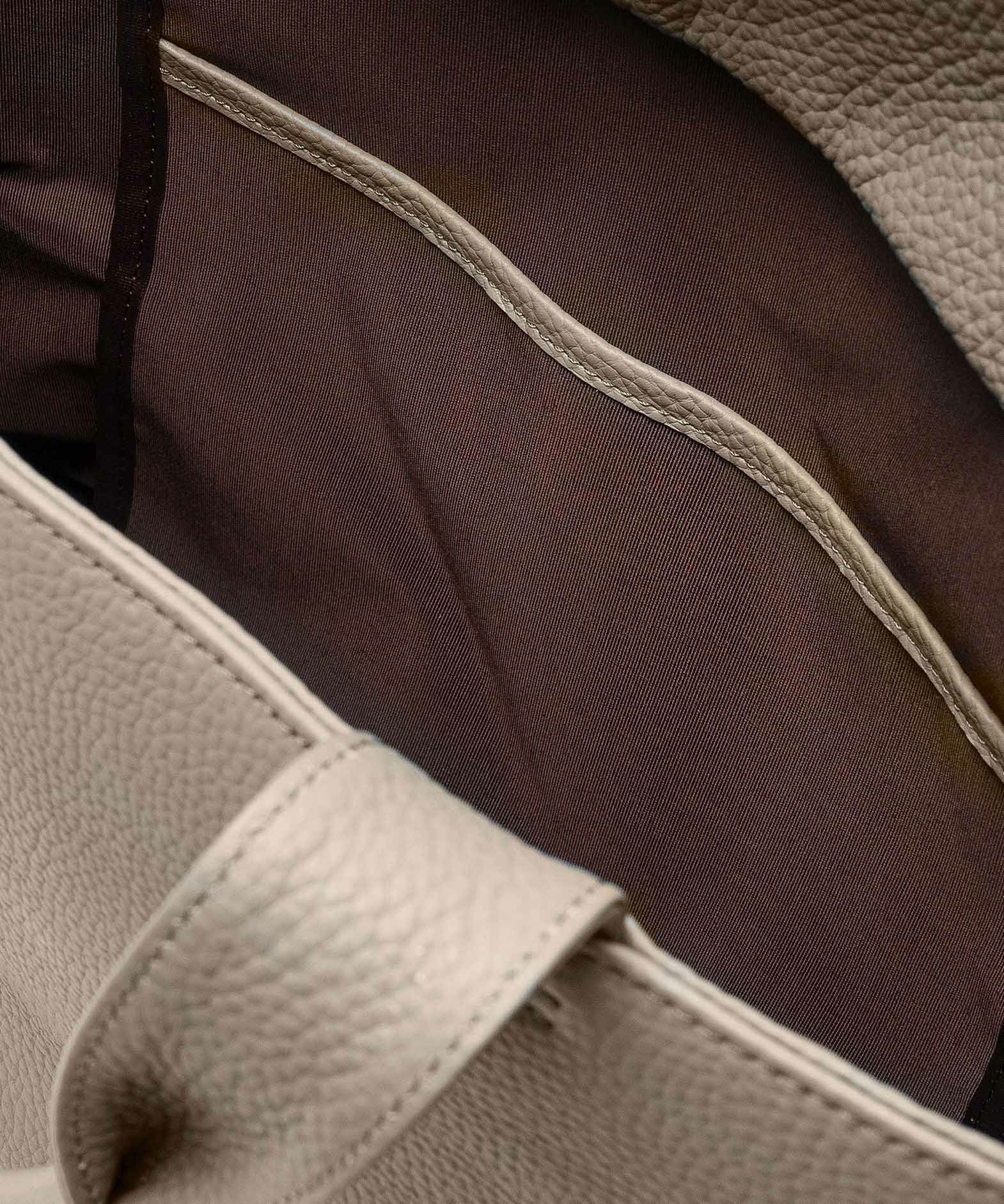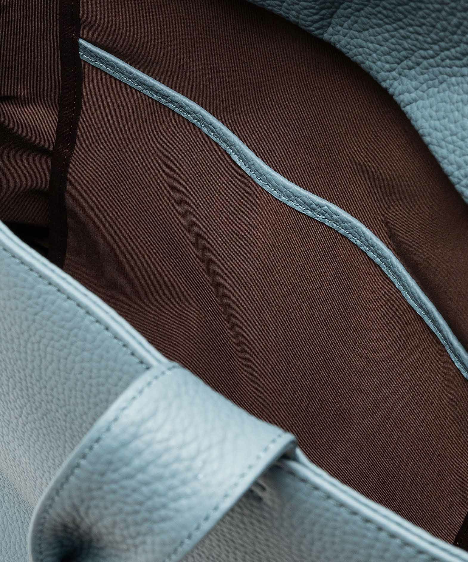 大人気のミニトートをベースに、お客様からのご要望を反映させて、しっかりとA4サイズが収納できる設計にアップグレードさせた、A4トートバッグ。収納時に安心な天カバーや、何かと便利なショルダーカンも備えさせ、ユーザー視点での使い勝手にも配慮。革厚が通常よりも0.5mmほど厚い20mm弱の「エンボスレザー」を、外装として贅沢に纏わせて重厚感を醸成しながら、約900gという驚異的な軽さを実現。さらに、芯材・金具の使い方やハンドルの持ちやすさなど、さまざまな細かい工夫を施すことで、実際の質量よりも軽く感じられる使い心地へと昇華。手持ちでも肩掛けでも快適に持ち歩ける、絶妙な長さのハンドルによるスマートさが、性別・年齢問わずスタイリュシュな佇まいを演出してくれる。
