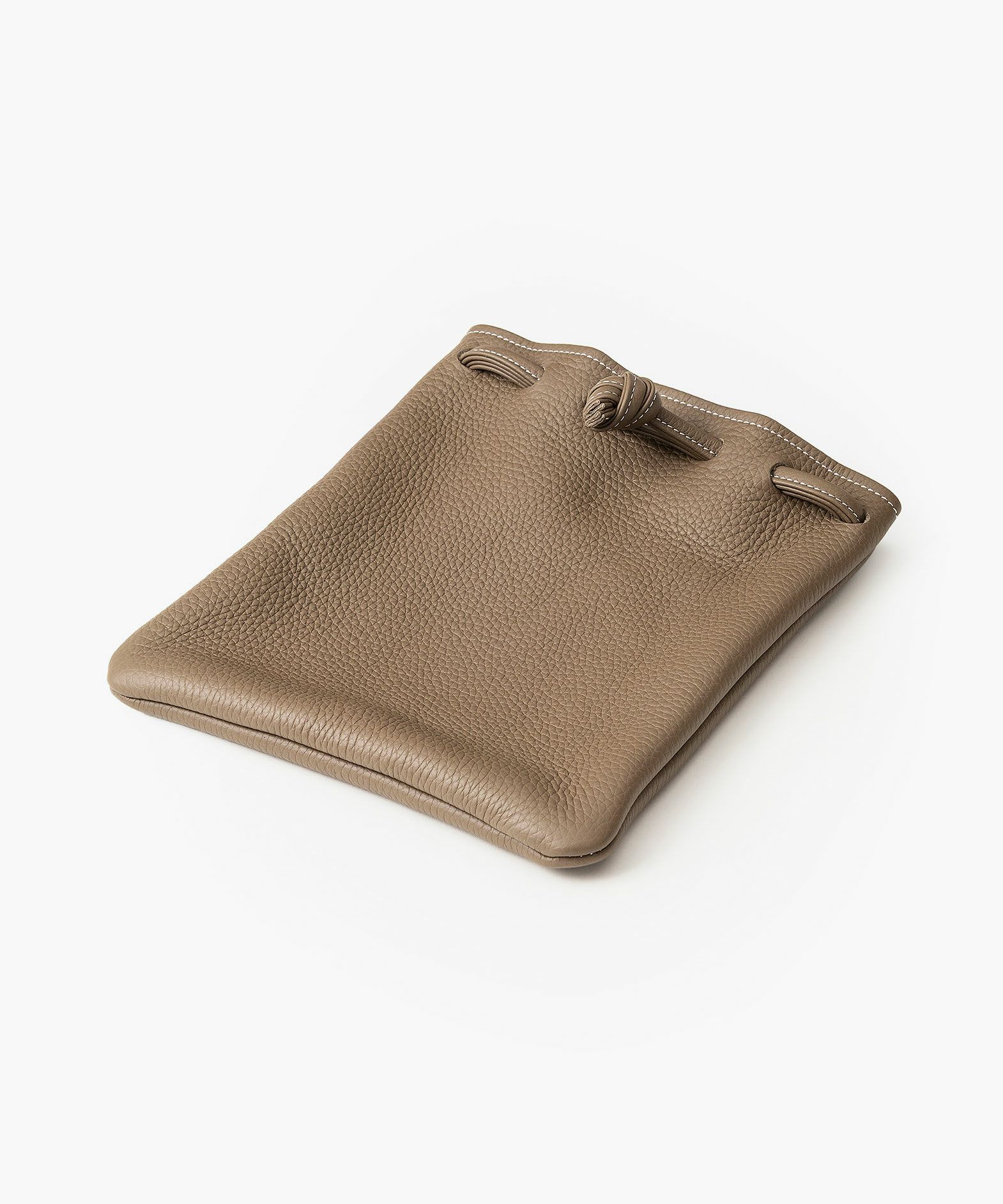 丸みを帯びた愛らしいフォルムから、小鍋を連想して名付けられた、汎用性が高く気軽に使いこなせる巾着“Cocotte”。誰もが知る高級ブランドにも扱われている、フランス・レミーキャリアット社製の最高級シュリンクレザー「トリヨンクレマンス」を採用し、あえて原厚で裏地を使わないことで、革本来の重厚感と質感を漂わせ、大きめの美しいシボで魅了。自然な柔らかさとモチモチとした質感も特長的で、使い込むほどに柔らかさがさらに増し、収納物を入れていないときには真っ平にすることも。柔らかみのある風合いを生かしたシンプルなデザインで、さまざまなスタイルに幅広く合わせられ、耐久性に優れキズも目立ちにくいのでラフな普段使いにも最適。紐まで同じ素材ですべて統一させ、エレガントな高級感を演出しながら、手軽に持ち歩いて親しみやすい相棒感ももたらしてくれる。