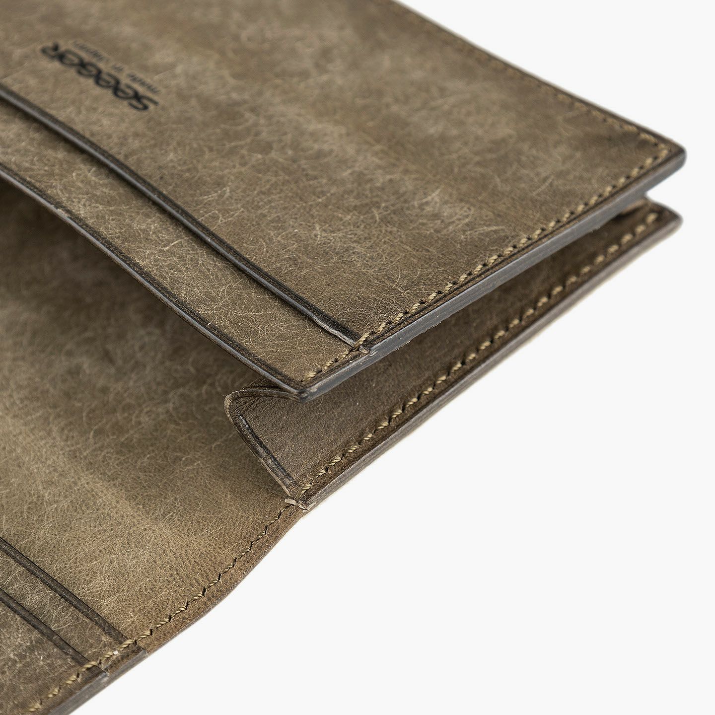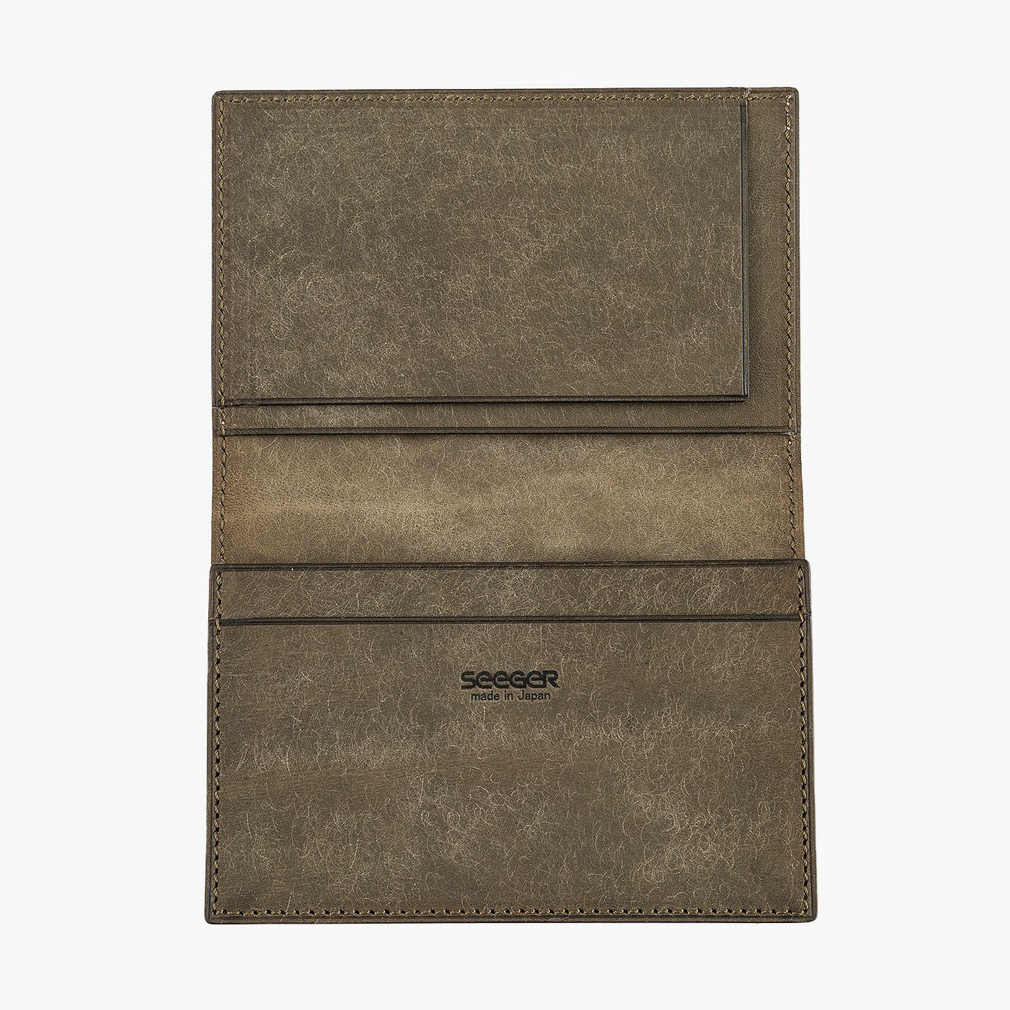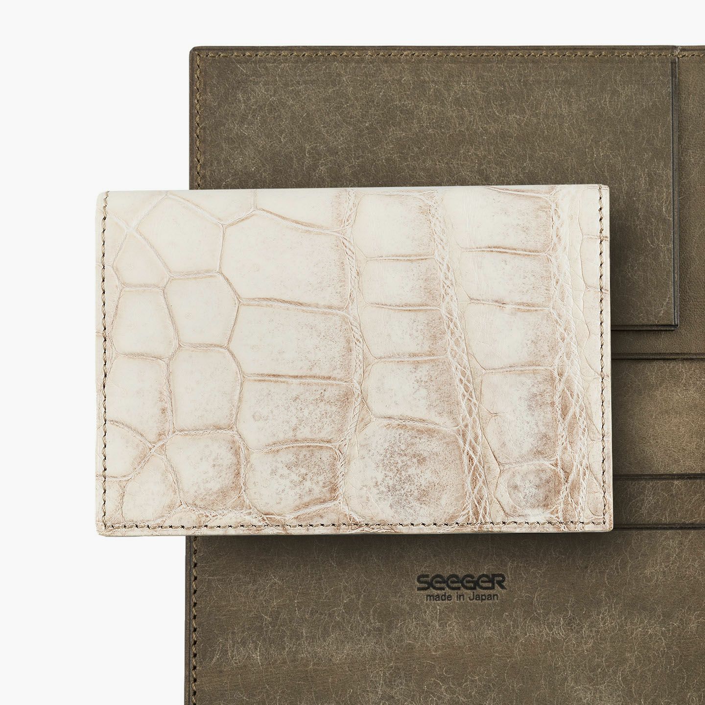 1889年にドイツ・オッフェンバッハで創業し、世界中のセレブリティから愛されながらも衰退するが、日本の職人たちにより蘇らせたブランド『SEEGER』の名刺入れ“Hestia”。環境に配慮して“メタルフリー”で鞣した「ヒマラヤクロコ」を、高級感あふれる外装として贅沢に纏わせながら、内装「プエブロ」との異なる色合い・質感による組み合わせが、比類なき独創的な佇まいで魅了。通しマチ付きのメインポケットには50枚ほどの名刺を収納できるとともに、カードポケット2つに加えてアオリポケットも1つ備え、一時的な名刺の差し込みに活躍。ひとつ上の洗練された印象を漂わせながら、ビジネスシーンに彩りを与えてくれる。