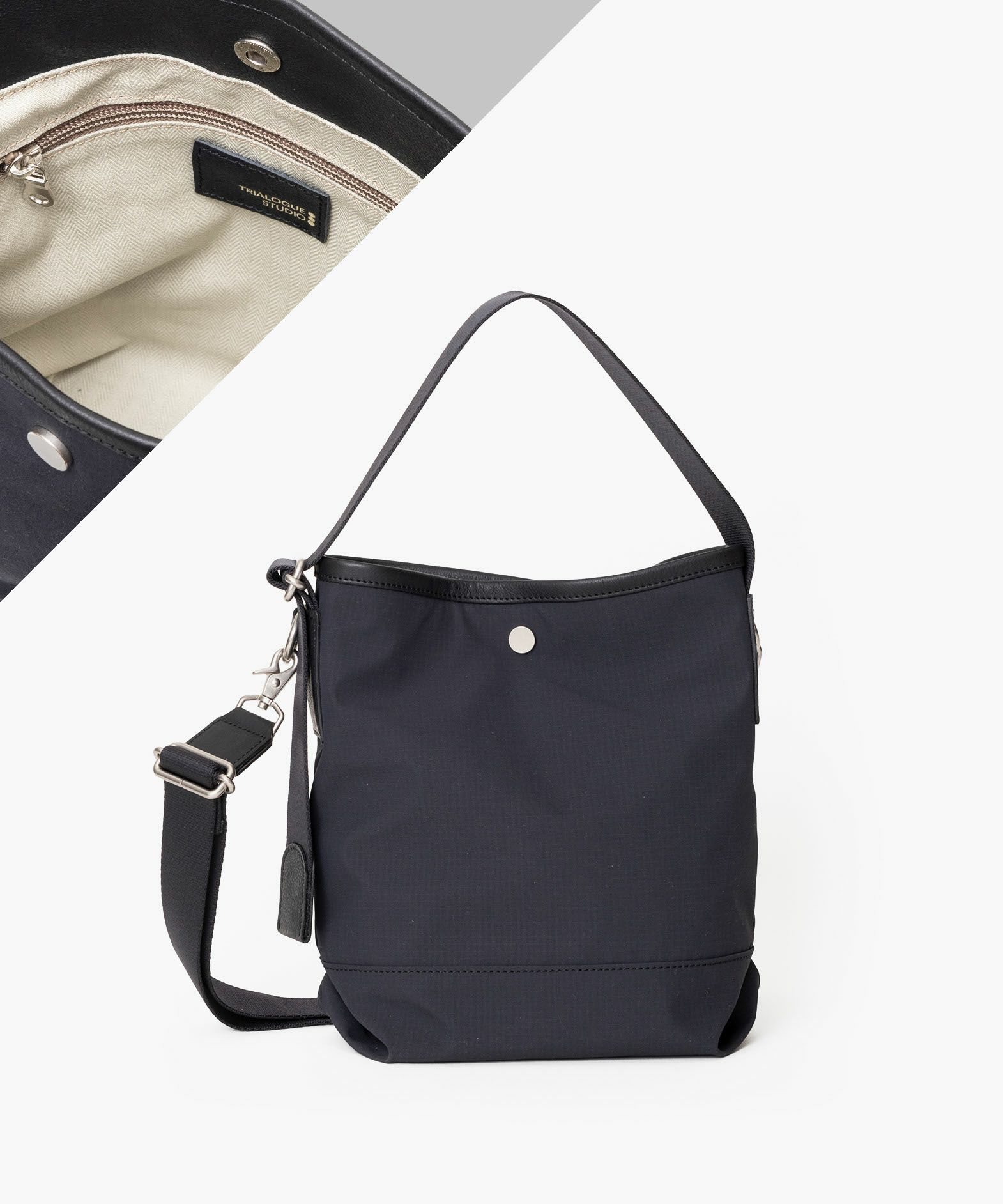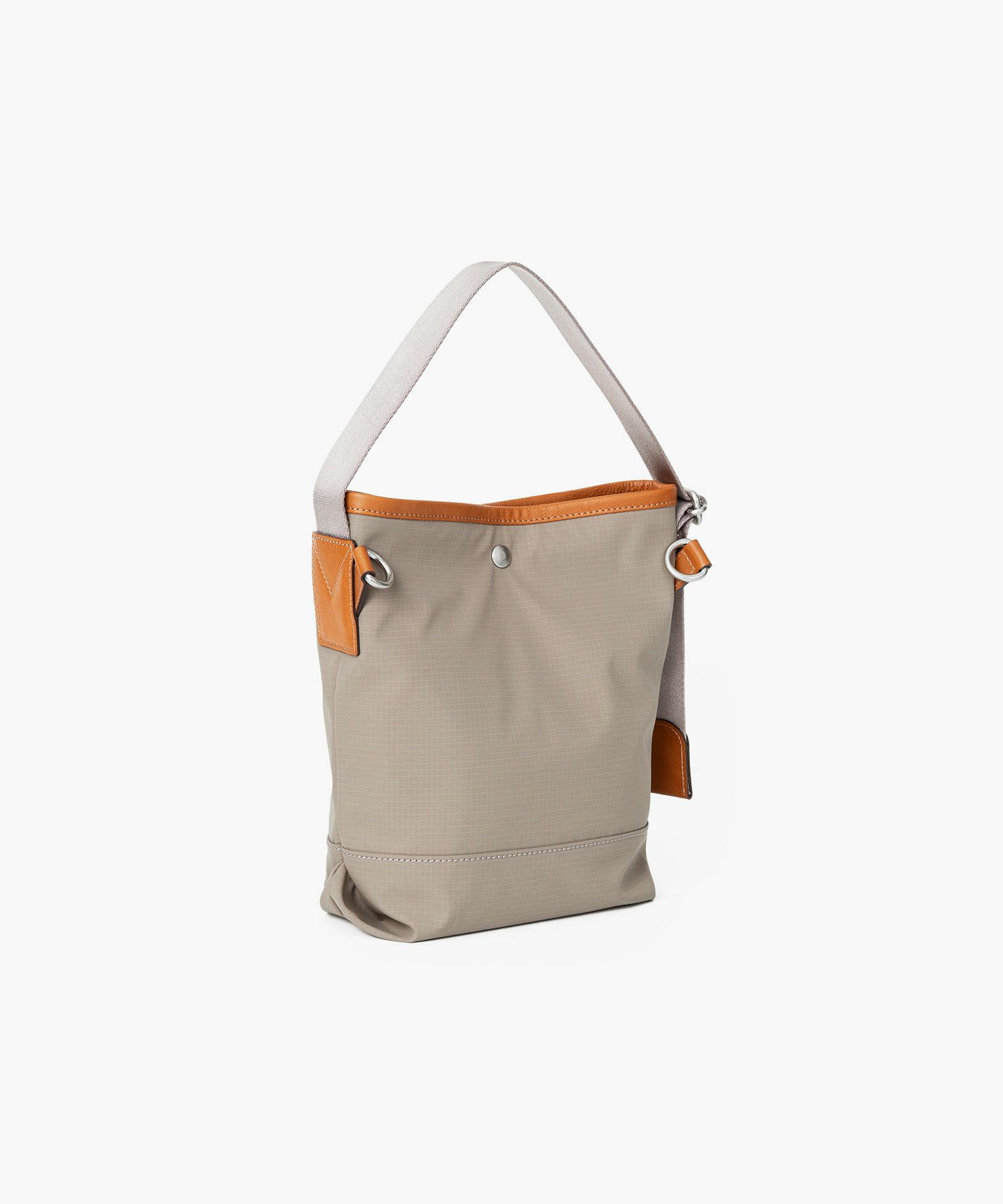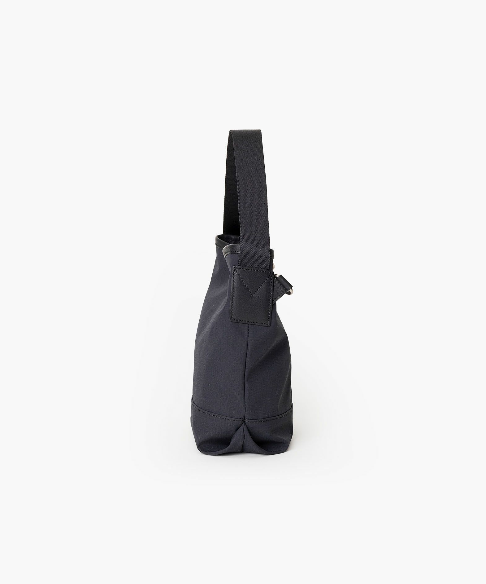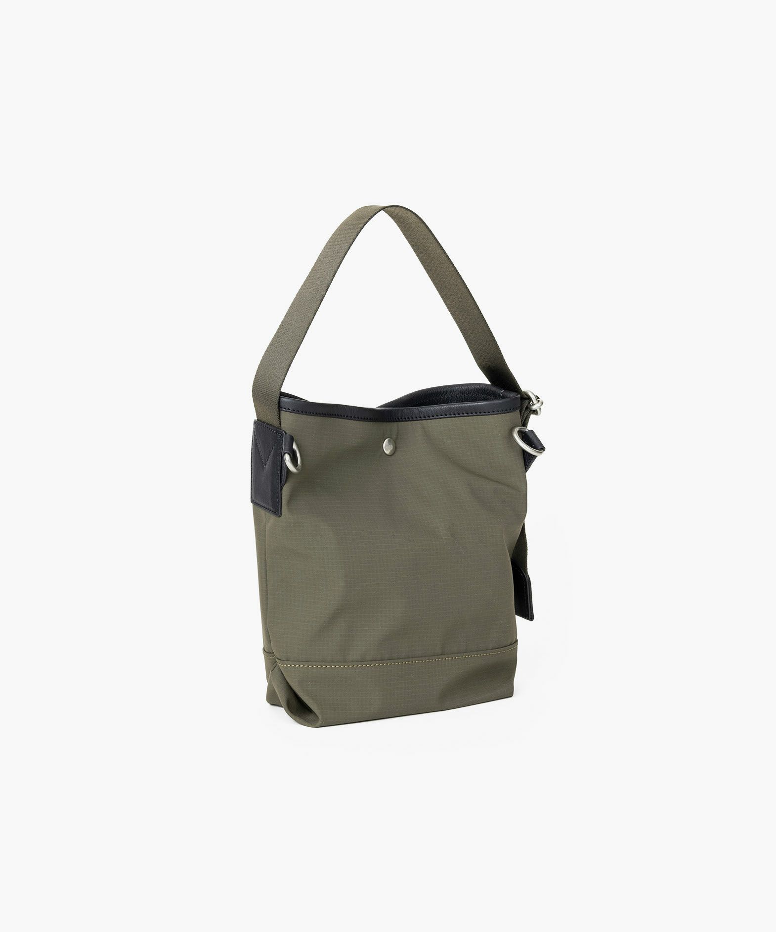 斜め掛け用ショルダーベルトを付属し、その日の気分に合わせて手持ち・肩掛けが自由に選べる、フレキシブルな2Way縦型トートバッグ(S)。海外メゾンからも信頼されているDICROSの「リップストップ生地」を、しなやかな風合いとともにメイン素材として纏わせ、撥水加工も施しているので突然の雨などにも安心。Black・Khaki・Beigeの3色からセレクトオーダーして、自分のファッションコーディネートと合わせられるのも魅力的。デザインのアクセントにもなっている「ヌメ革」の天部パイピングは、特別な縫製方法で厚く仕上げており、その他のレザーパーツも、芯材を張り合わせることで厚みを出して強度をアップさせている仕様。スッキリとした縦長のフォルムが、ひとつ上の洒落感を醸し出させてくれる。