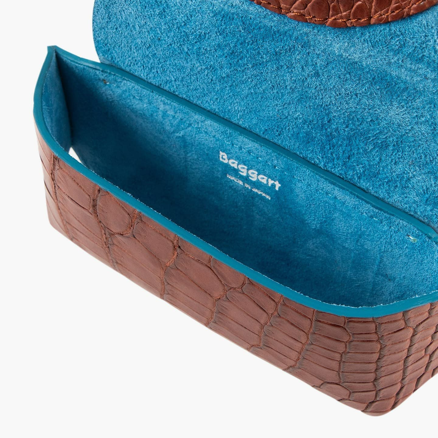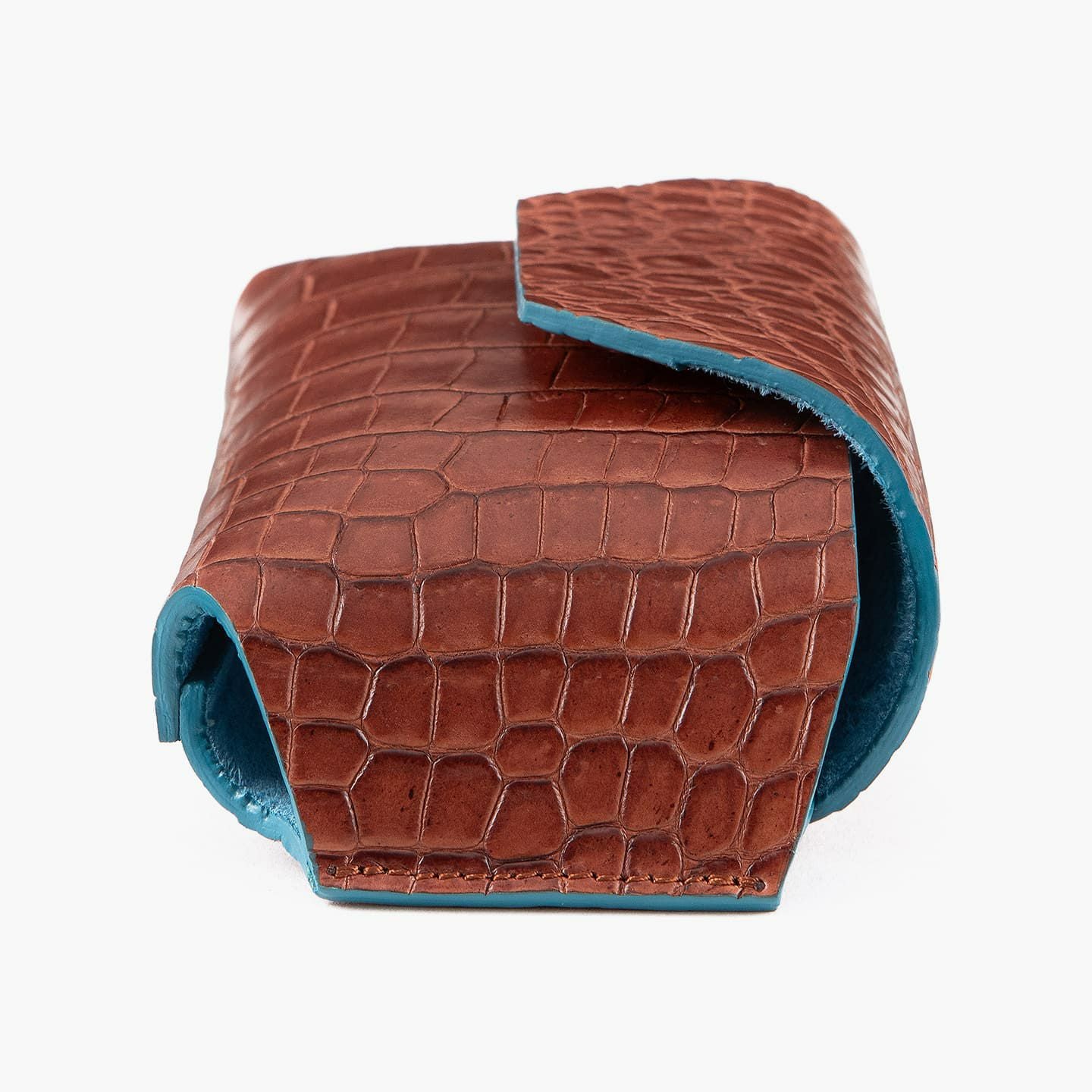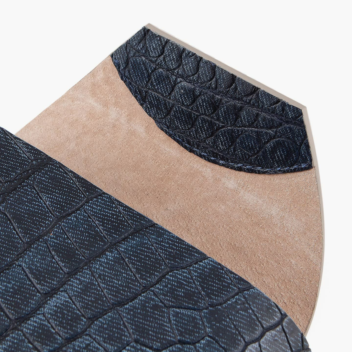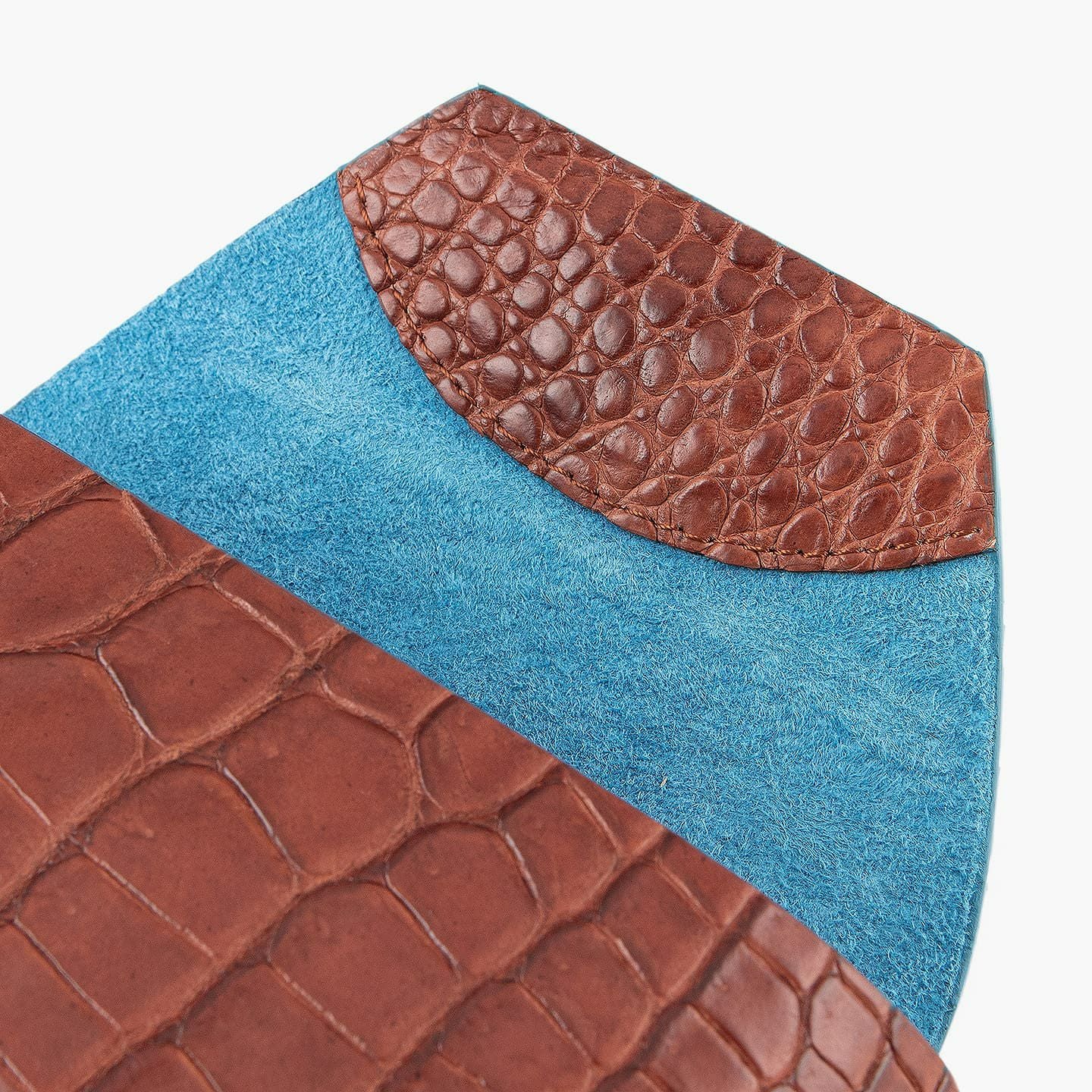 外装には、正方形に近い大きな模様が魅力的な「ラージクロコダイル※」を採用。本物のデニム生地を表皮に直接転写している「デニムブルー」は、使い込んだデニムの風合いを表現するために、重ね塗りと色落としを何度も繰り返すことで、鱗模様にデニムの質感を再現しています。この内装カラーには、生成りのようなホワイトグレーを組み合わせ、高級感とカジュアルさを融合。また、深く染色されて発色が美しい「レットブラウン」の内装カラーには、海水のようなサウスシーブルーを組み合わせ、エキゾチックな魅力を表現。これらのハイセンスな2カラーから、感性に合わせて好みのカラーリングを選べます。