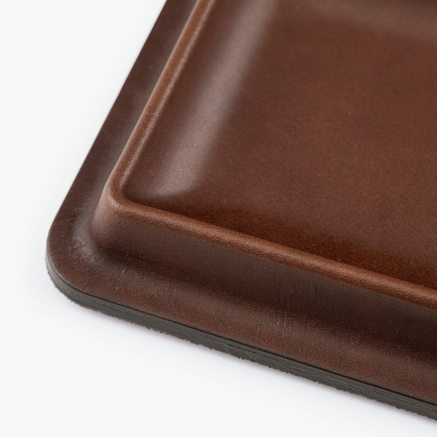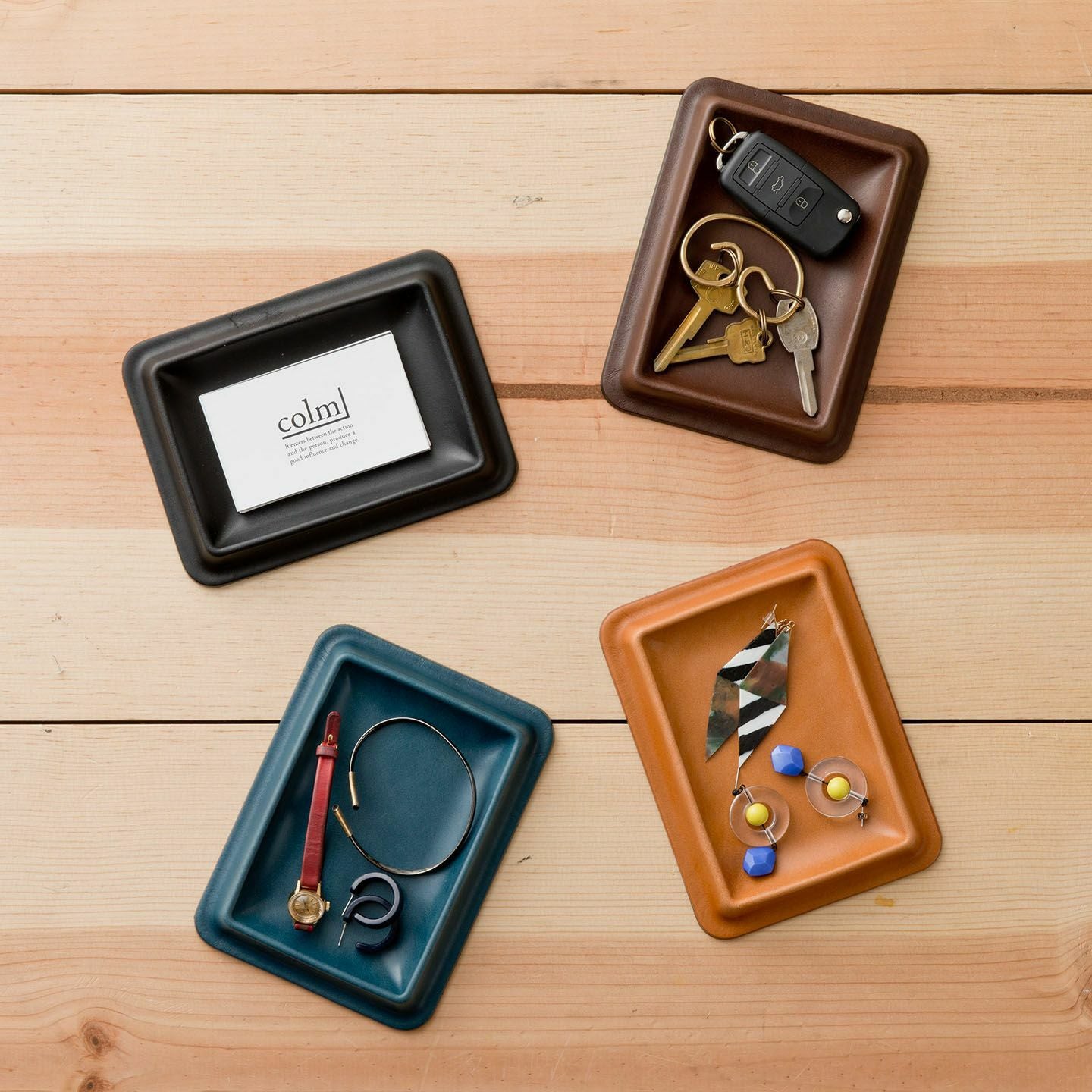 日常的に使っている大切な物を、収納して仕舞うのではなく、手が届きやすく目が留まりやすいスペースに置いておける、立体的でシンプルなデザインのトレー。マテリアルの「牛ヌメ革」は、デニムのように深みのあるBlue・ナチュラルな雰囲気を醸すCamel・上質な高級感を漂わせるBrown・クールな洒落感あふれるBlackの4色から、自分の好みや置く空間に合わせてセレクトできます。また、このSサイズの他に、ペントレーやメガネ置きに最適なMサイズ・スマートフォンもキレイに置くことができるLサイズもラインナップ。各サイズとも厚さが同じで、長さも共通している組み合わせもあるので、用途に合わせてサイズ違いで揃えて使えば、さらに空間をお洒落にアップデートできます。