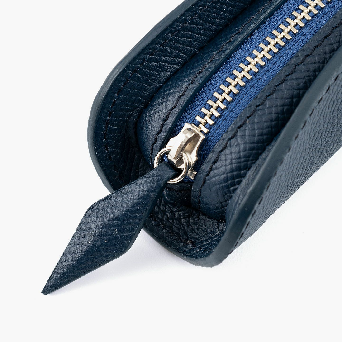 小石模様の陰影を想わせる美しさで、ヨーロッパの有名老舗メゾンにも人気がある、フランス・アース社製の「ダービー」を外装として纏わせた、贅沢なペンケース。宝石のロゼンジカットをモチーフにした引き手を、同じマテリアルであしらいながら、エレガントなアクセントとしてアイテムの象徴に。さらに、細かな型押しが施されたマットな表情で、小キズや汚れも目立ちにくく、水分に強くて堅牢さも備えているので、デイリーユースにも最適。洒落感あふれる飽きのこないデザインと、センターにあるファスナーを包むように丸みを帯びた愛らしいフォルムが、高級な筆記用具・筆入れとして大人のステータスを引き上げてくれる。