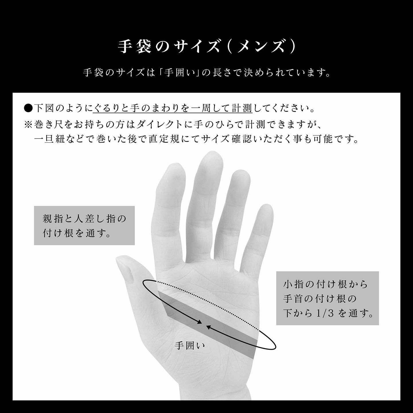 豚革のスエードと柔らかな羊革を組み合わせた、異素材によるコンビネーショングローブ、ピッグスエード×シープ手袋 “Cuffs-Touch Panel”【MEN】。手のひらサイドの親指と人差し指に特殊な加工を施した導電革を採用し、寒いなかでもグローブを装着したままスマートフォンなどのタッチパネル操作が可能。手首まわりにリブニット切り替えでフィットさせるカフス付きの設計で、手袋のなかの温かさを逃さず、冷たい外気の侵入も防いでくれるので防寒性もアップ。さらに、裏地にはマイクロボアを使用していて、保温性も抜群。また、スタイリュシュな3種類のカラーから選ぶことでき、自分らしい配色のコーディネートで冬場のファッションを彩ってくれる。