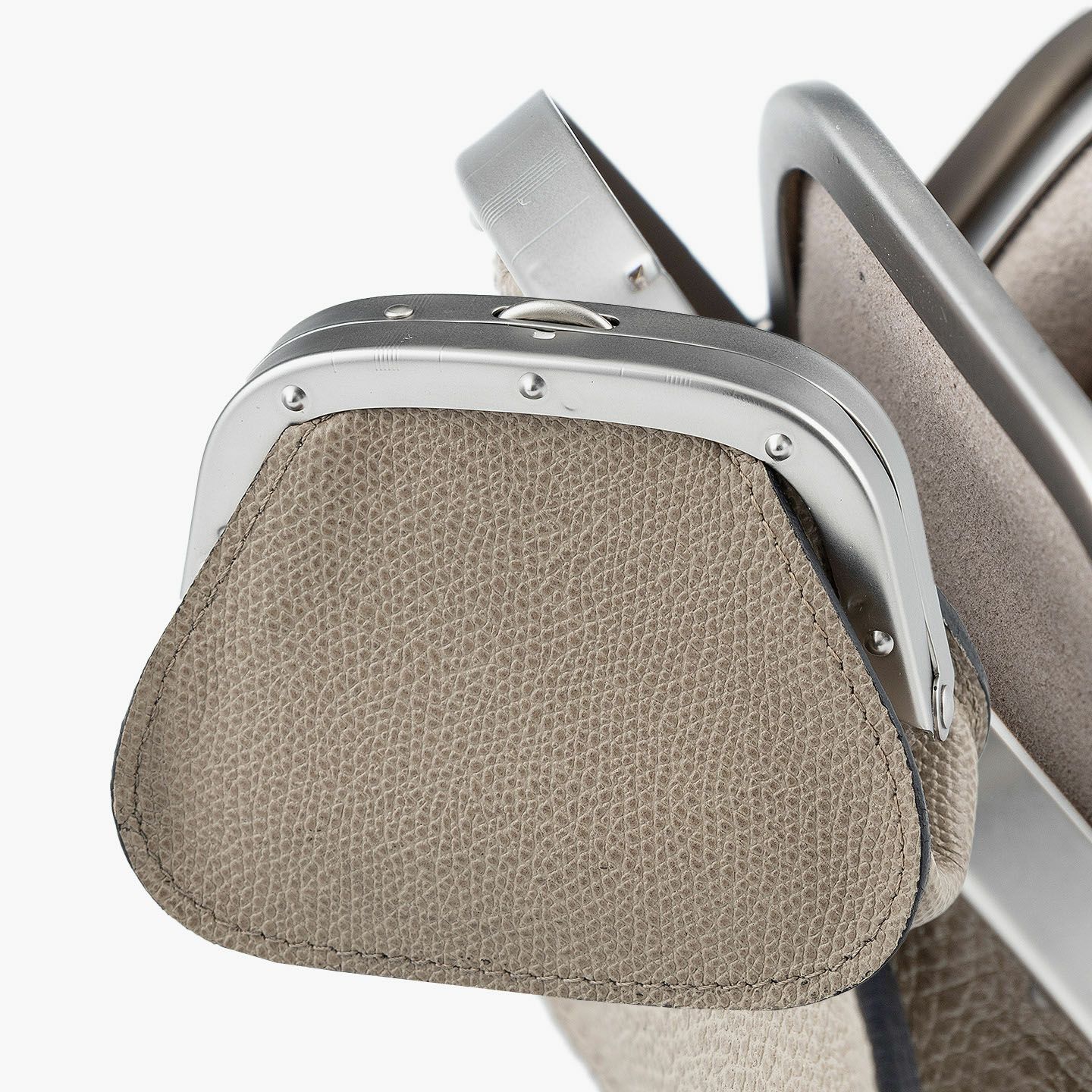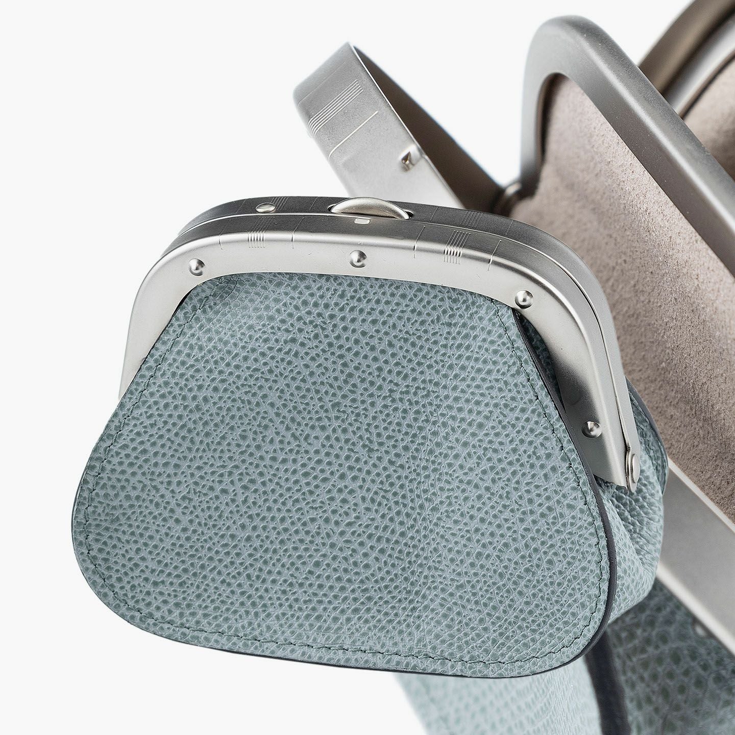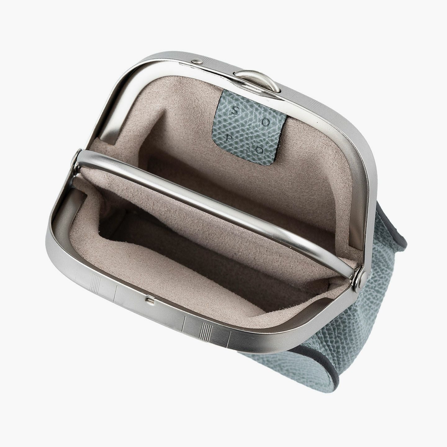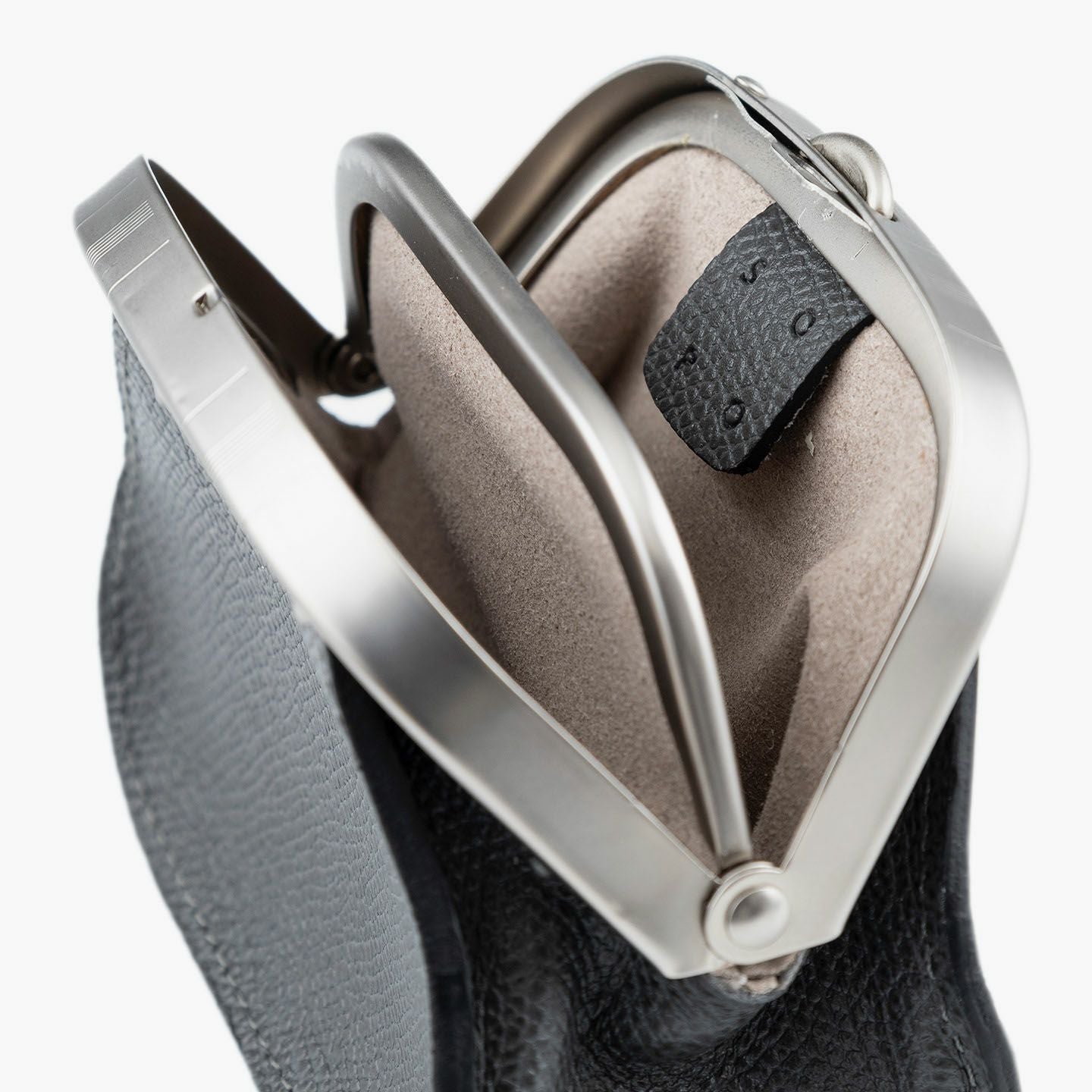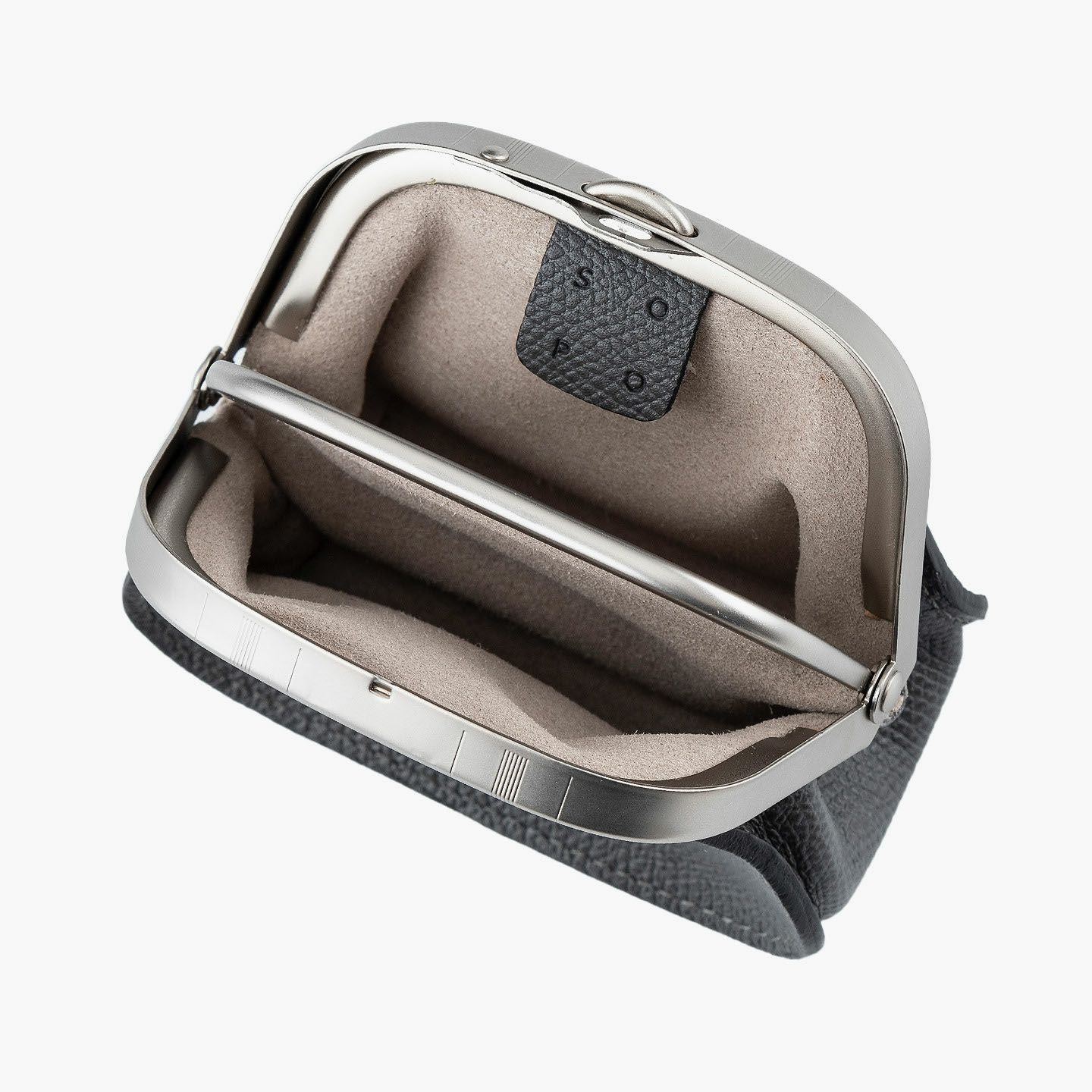 未来のスタンダードとして、独自のデザイン性を取り入れながら日常に彩りを与えていく、ユニークなファクトリーブランド『SOPO』による、がま口ミニウォレット。最高級カーフレザー「ドーフィン」の上質感を、コンパクトな愛らしいフォルムで印象的に引き立てながら、ダイキャスト成型のフレームによる個性的な形状と、ツヤ消しのシルバーによる洗練されたセミマット感で、現代的な“がま口”へとアップデート。上部のボタンで開く内部には、可動する仕切りによりマルチポケット2つを備え、小銭と紙幣(四つ折り)を分けられるなどの実用性も感じさせてくれる。