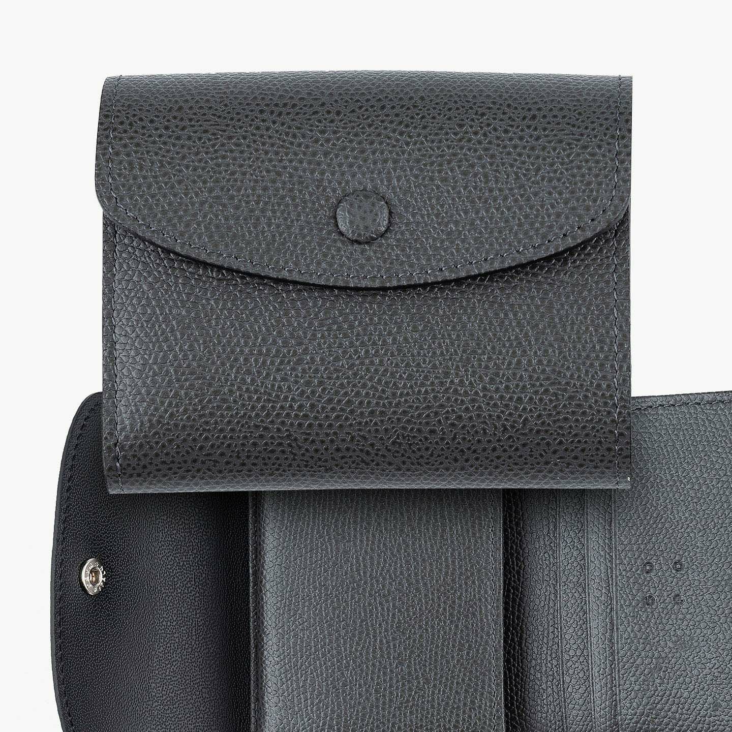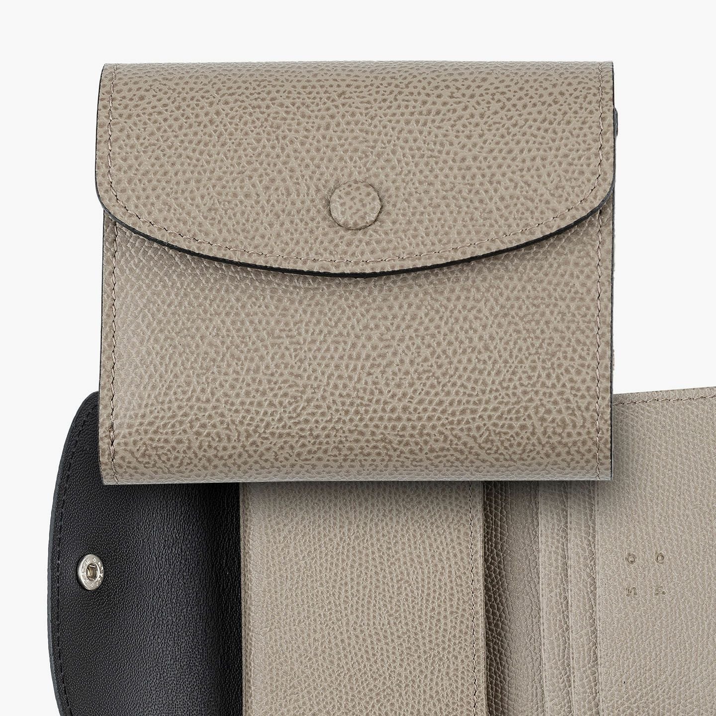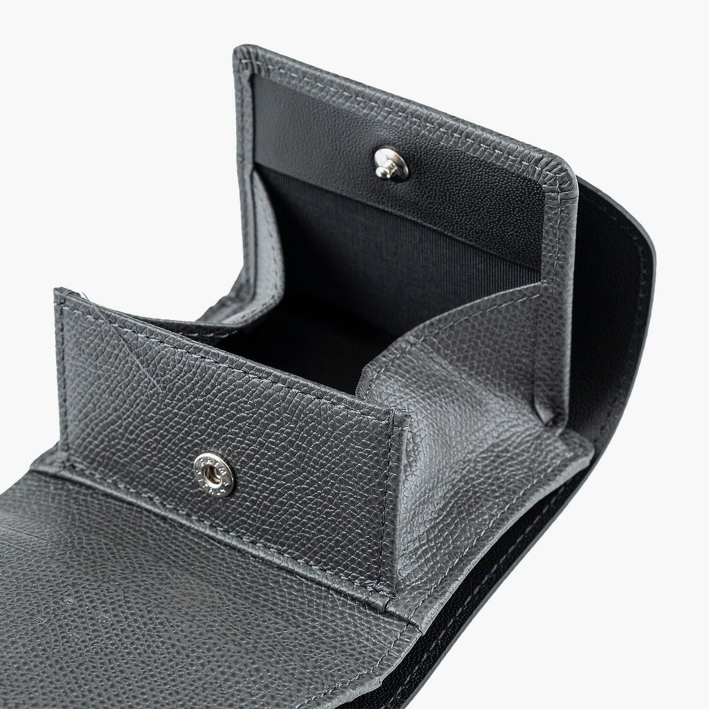 永く愛用される新時代のヴィンテージとして、手にする人たちの個性に心地よく寄り添う、ユニークなファクトリーブランド『SOPO』のロールミニウォレット。濃淡・凹凸のある表情が魅力的な最高級の型押しカーフレザー「ドーフィン」を纏う贅沢なボディを、くるみボタンのアクセントを起点として巻き込むように三つ折りする設計で、トレンドと機能性を兼ね備えたデザイン。コンパクトなサイズ感でありながら、スリット式の札入れやBOX型コインケースを装備し、カードポケット3つ・フリーポケット1つを備えたオールインワンの収納力が、デイリーユースの最適感を担ってくれる。