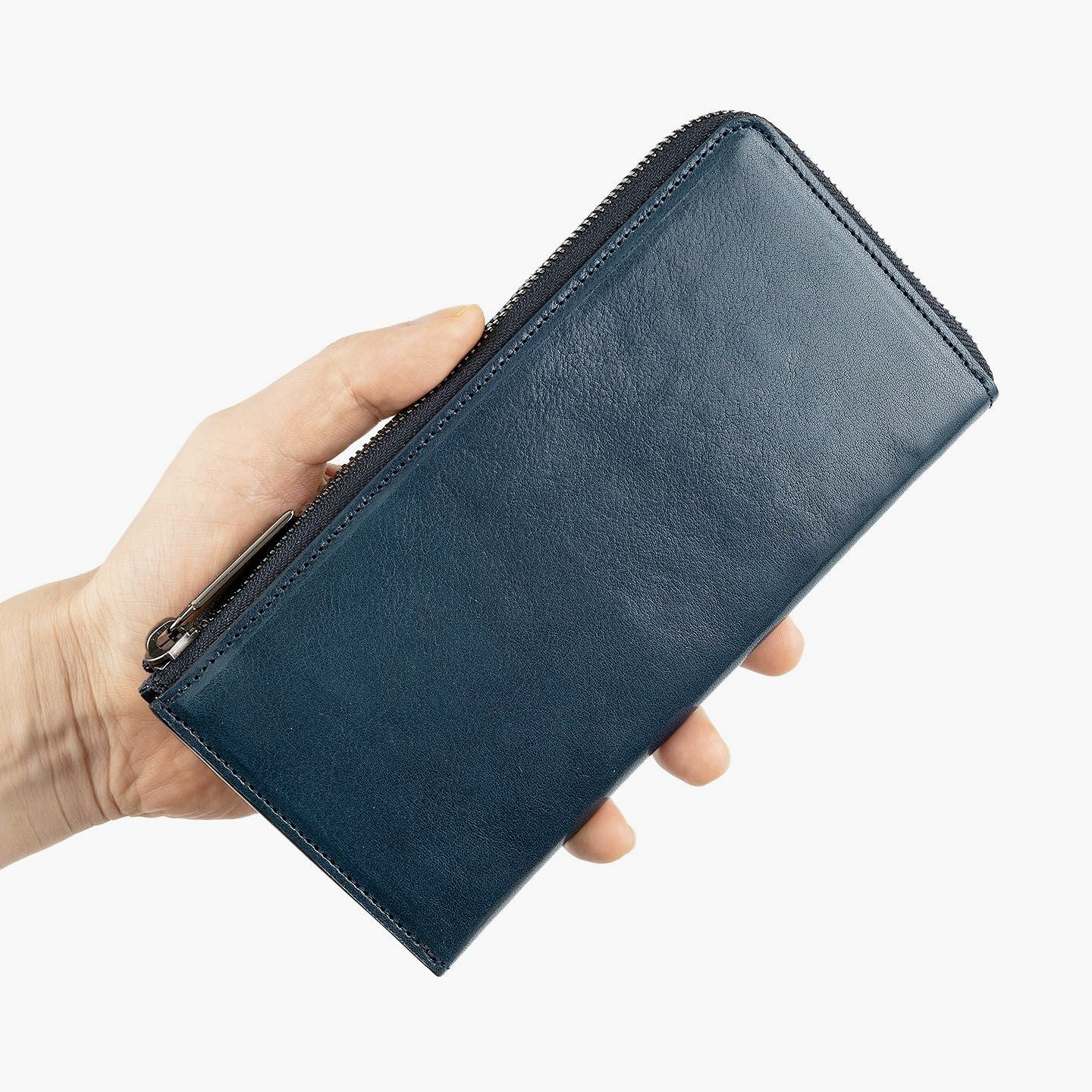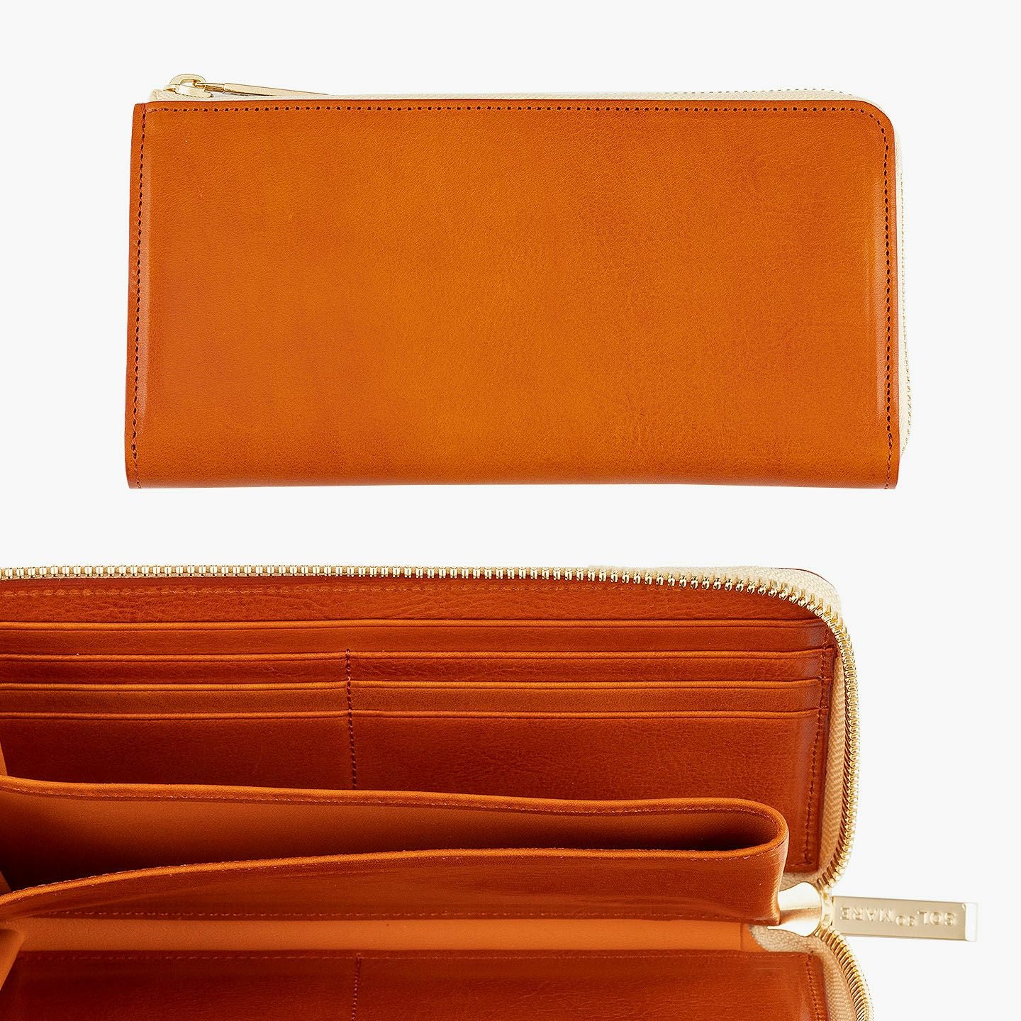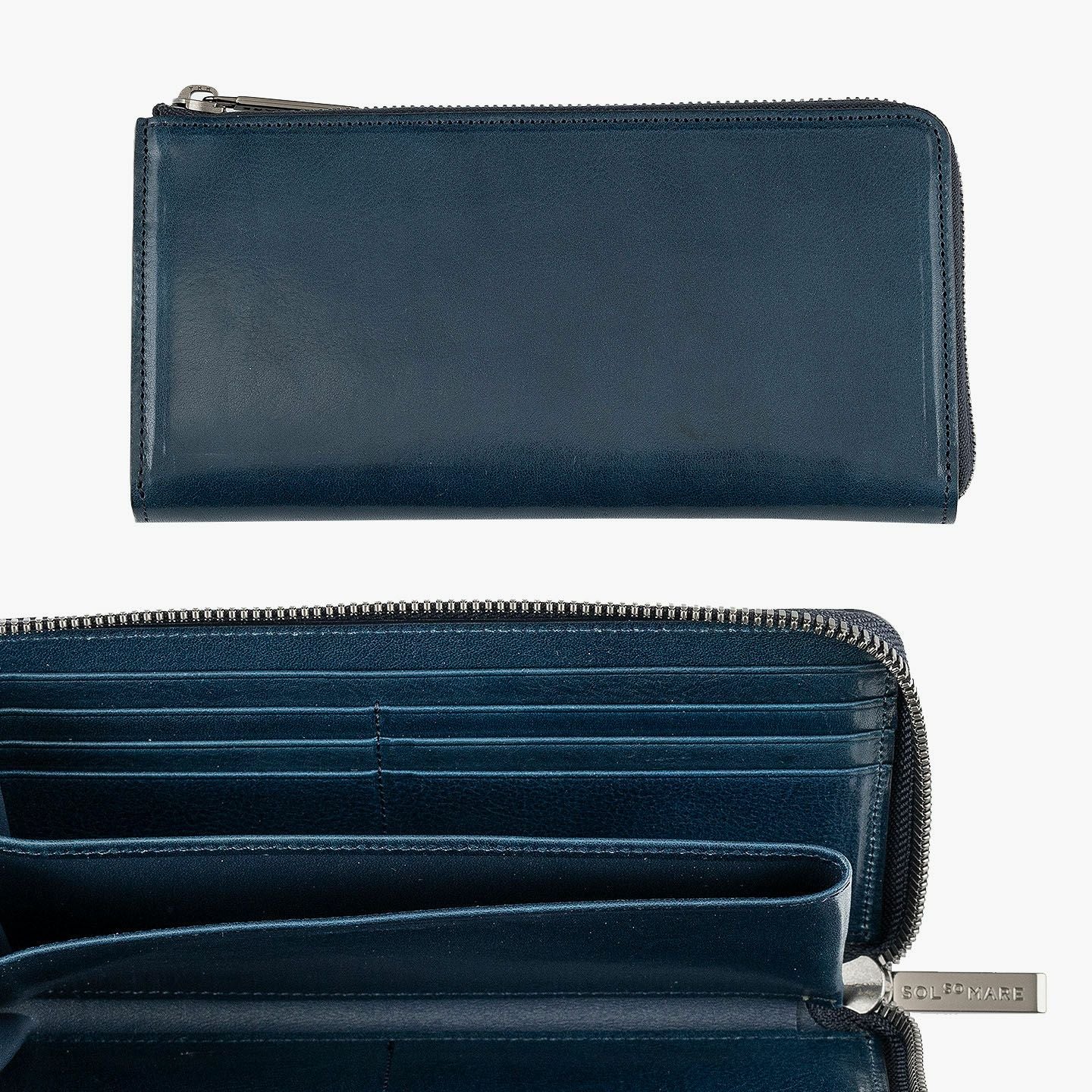 太陽や海などをデザインのモチーフにすることで、自然を感じられる情緒と色彩が織りなす感動を美しく綴っている、ファクトリーブランド『SOLSOMARE』のLFラウンド長財布。厳選された良質な「イタリアンショルダー」を採用し、セレクトできるOrange/Navy Blueごとに異なる金具・ファスナーテープとのカラーコーディネイトが、連れて行きたくなる気分をアップ。オープン式コインポケット・カードポケット12・フリーポケット2・札入れマチ付きポケット2による抜群の収納力が、スマートなL字ファスナーのデザインとともに、普段使いの歓びをもたらしてくれる。
