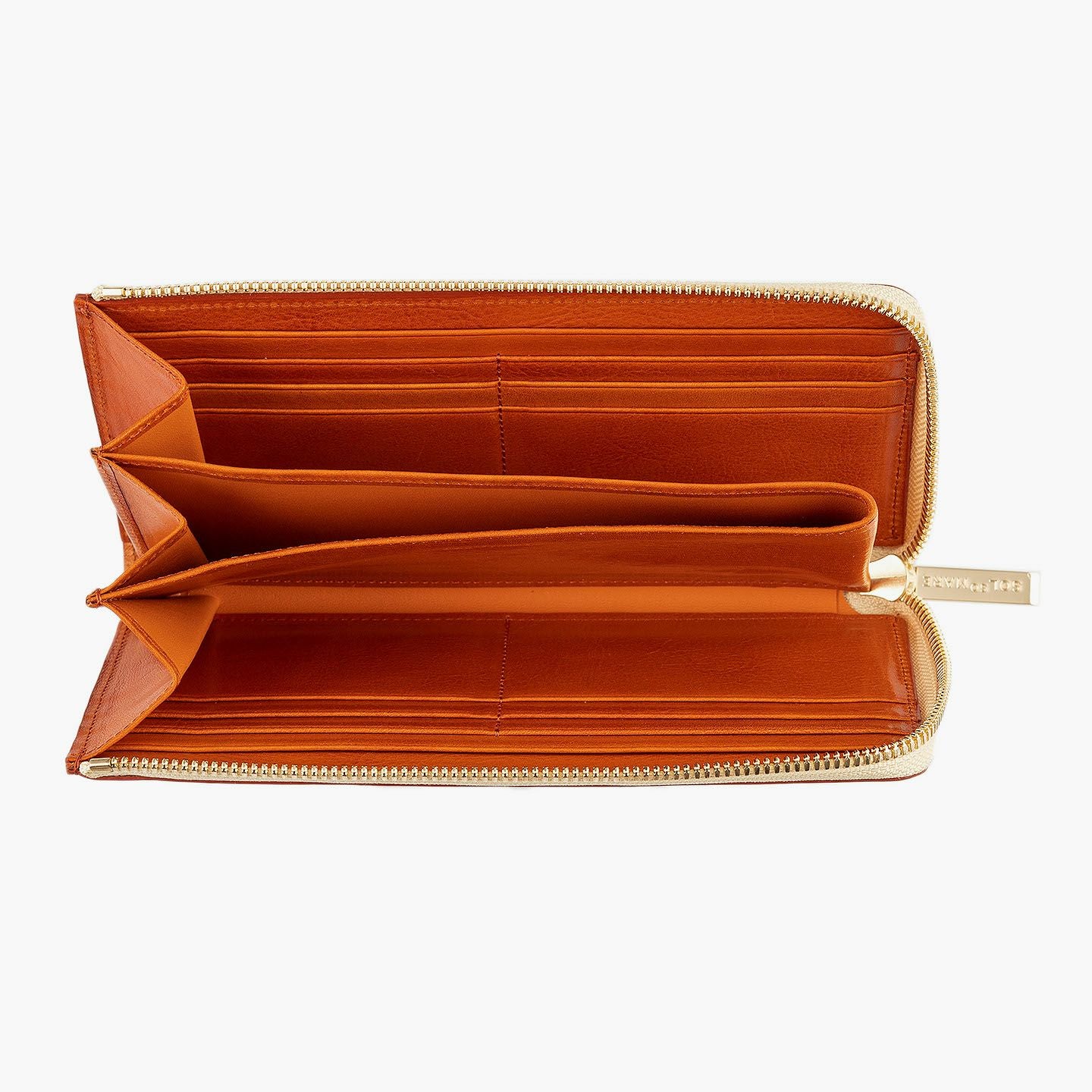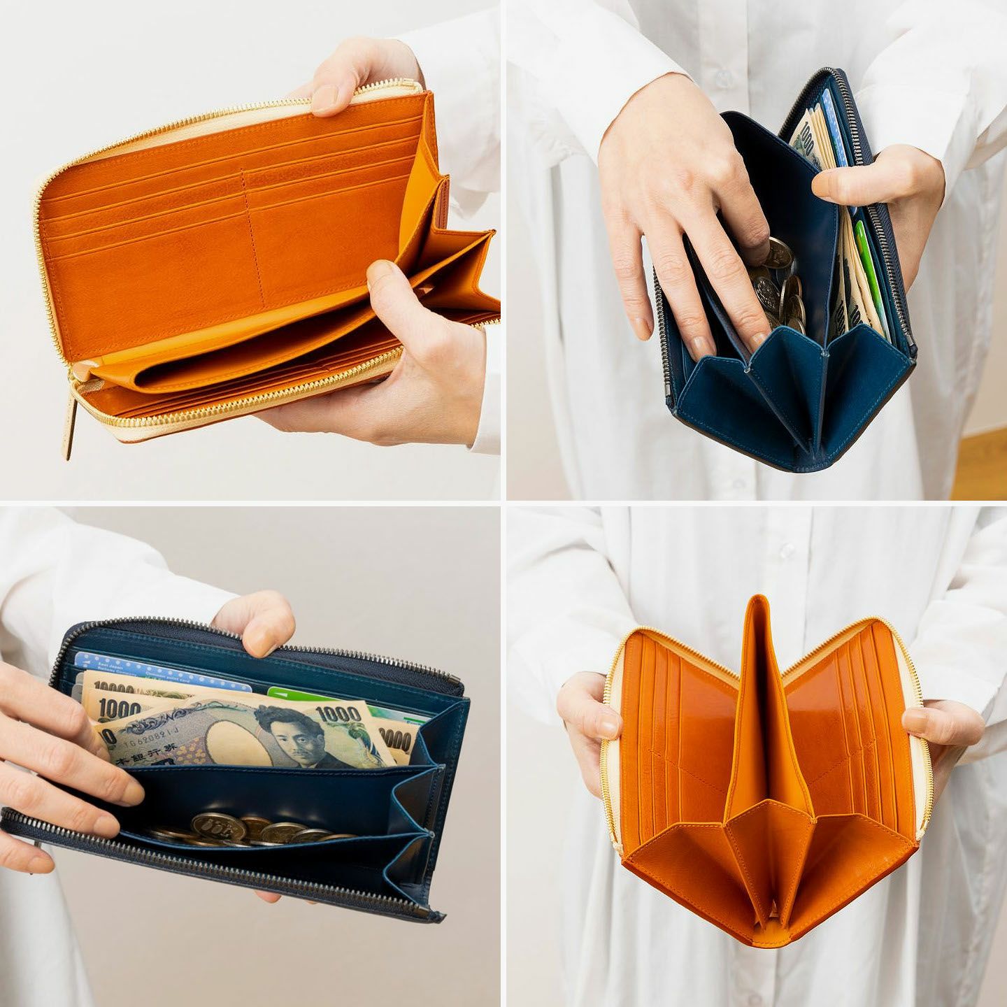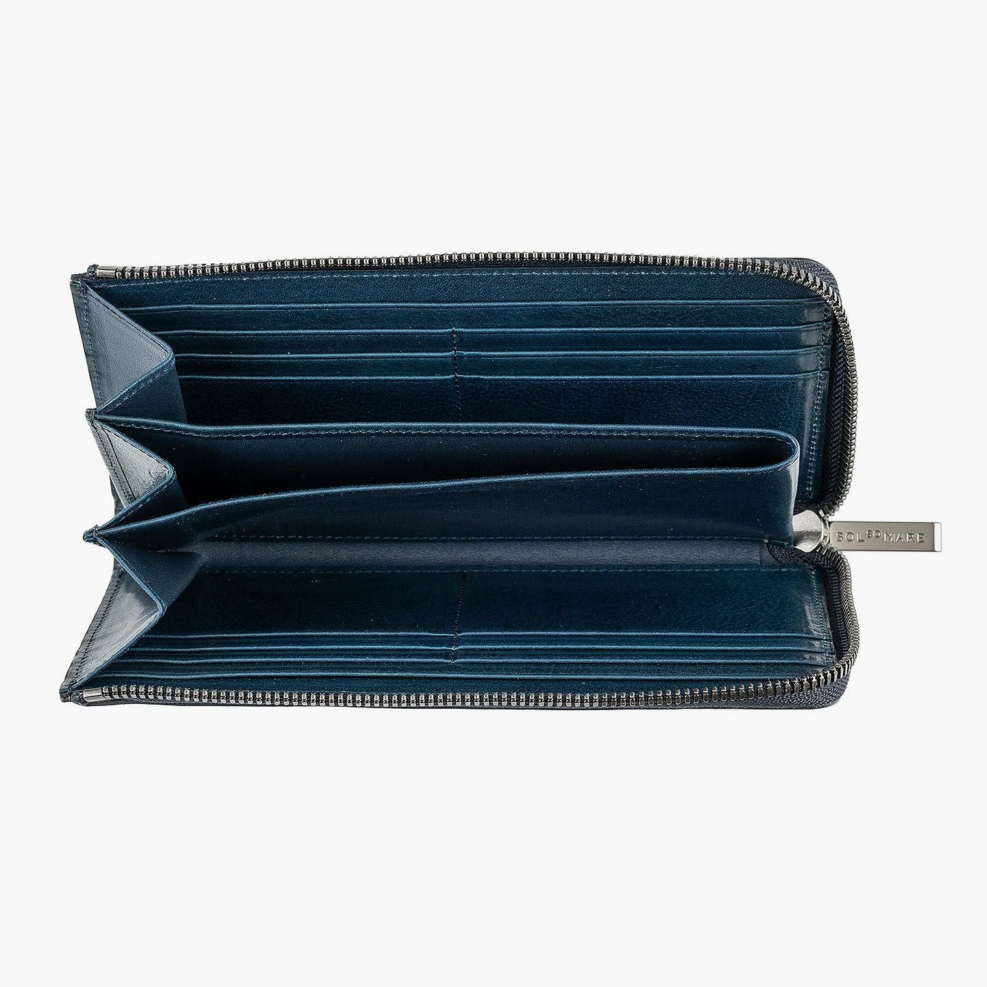 太陽や海などをデザインのモチーフにすることで、自然を感じられる情緒と色彩が織りなす感動を美しく綴っている、ファクトリーブランド『SOLSOMARE』のLFラウンド長財布。厳選された良質な「イタリアンショルダー」を採用し、セレクトできるOrange/Navy Blueごとに異なる金具・ファスナーテープとのカラーコーディネイトが、連れて行きたくなる気分をアップ。オープン式コインポケット・カードポケット12・フリーポケット2・札入れマチ付きポケット2による抜群の収納力が、スマートなL字ファスナーのデザインとともに、普段使いの歓びをもたらしてくれる。