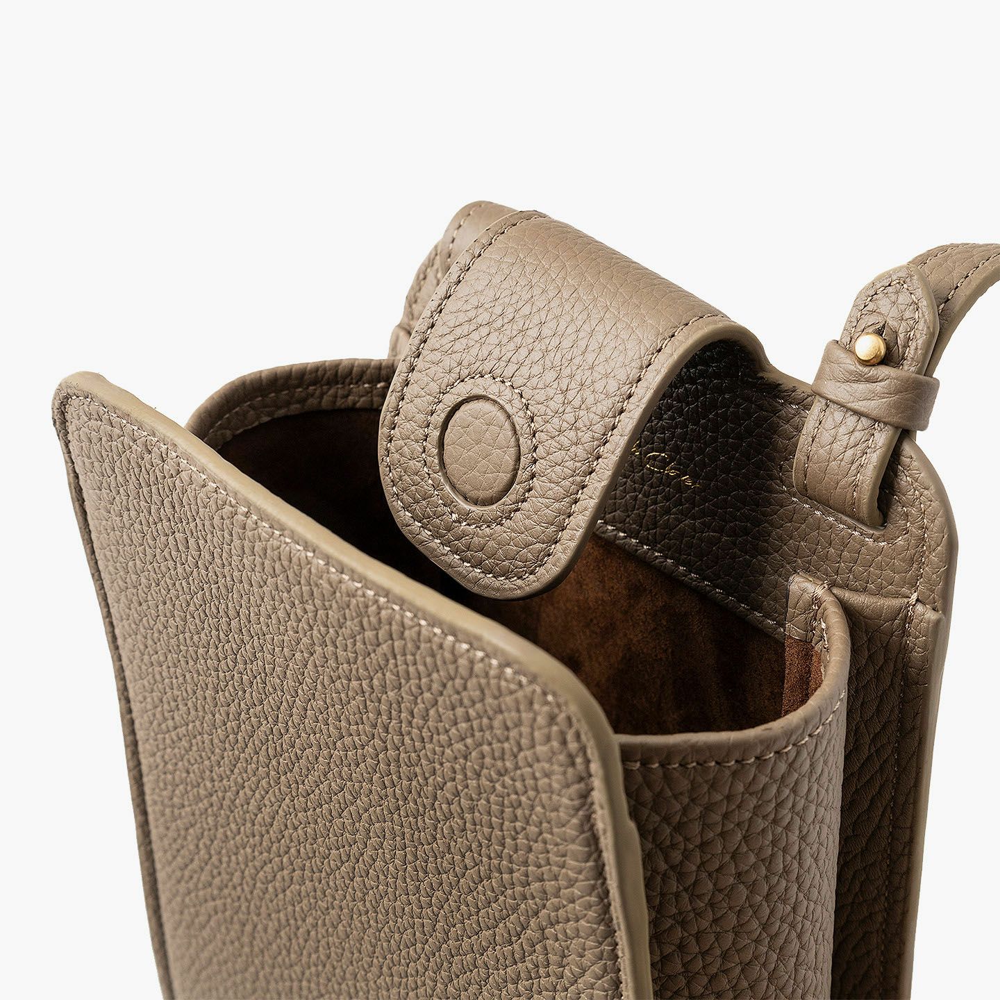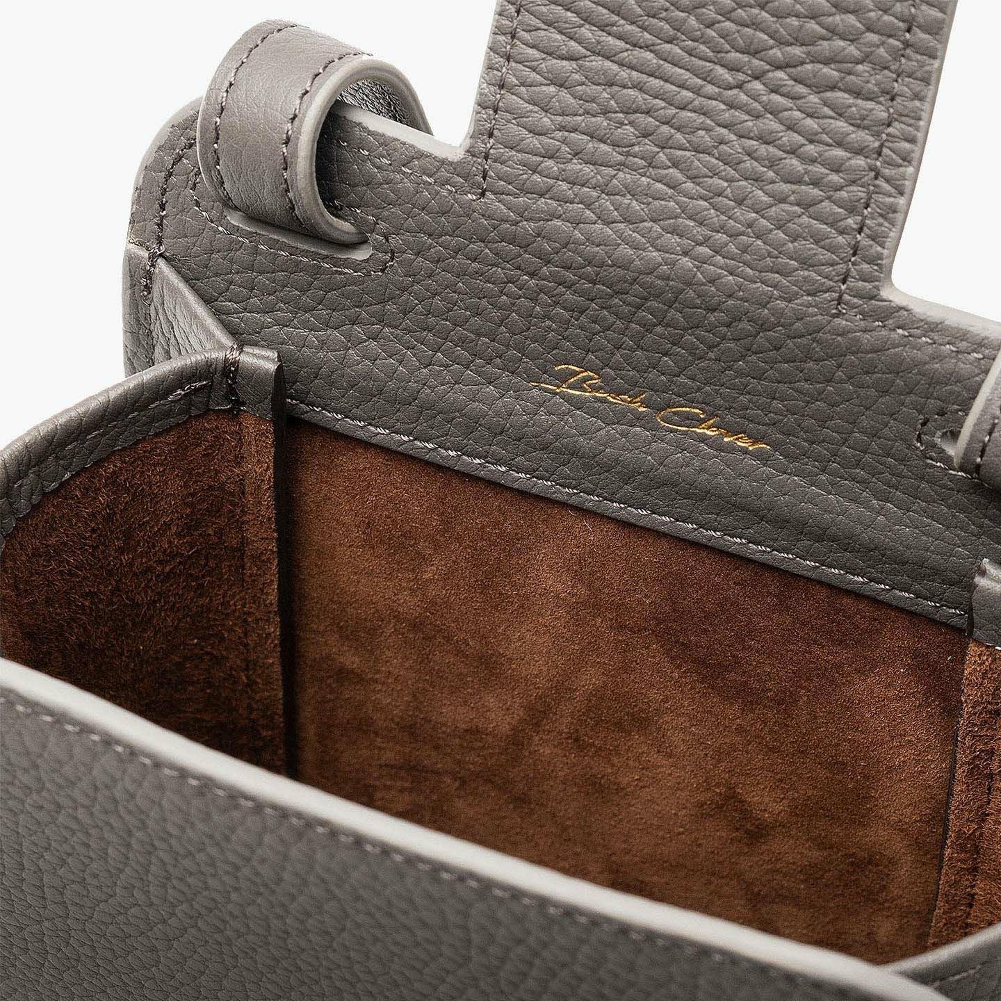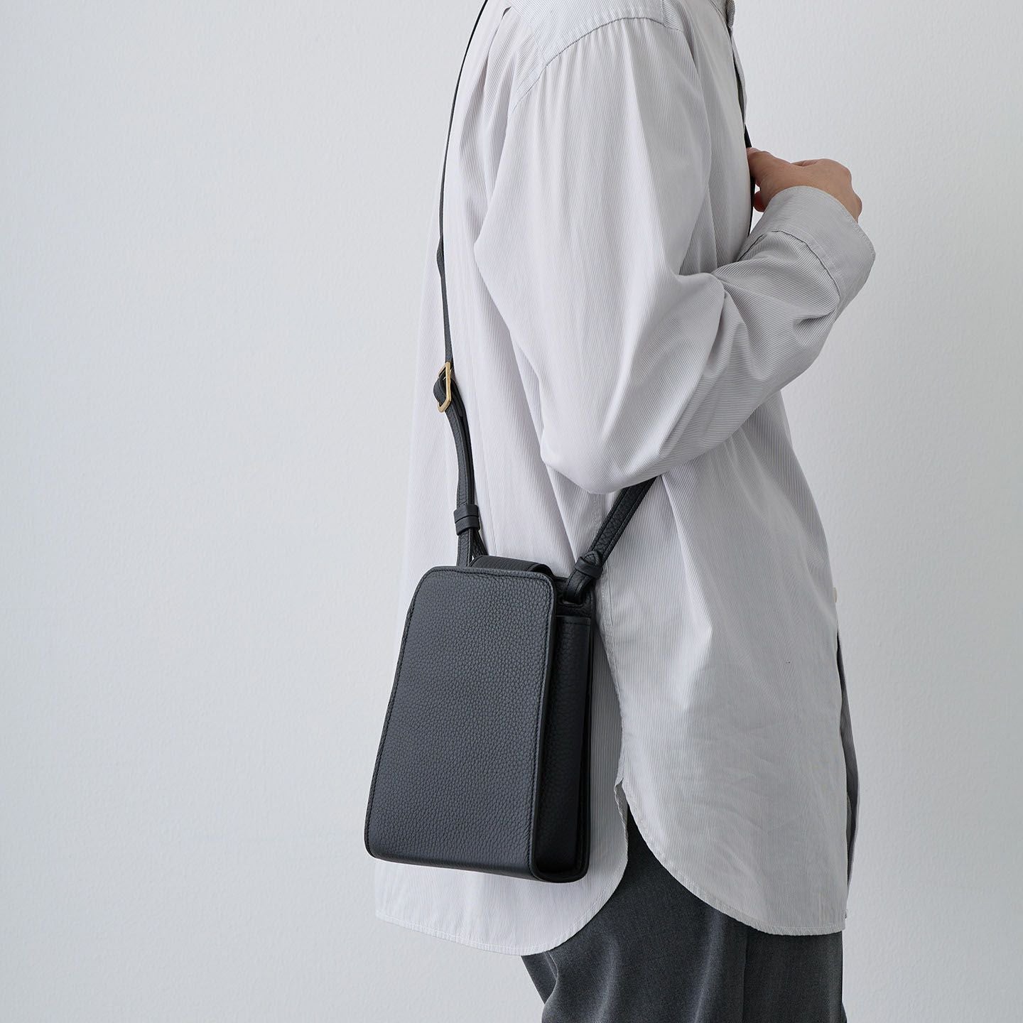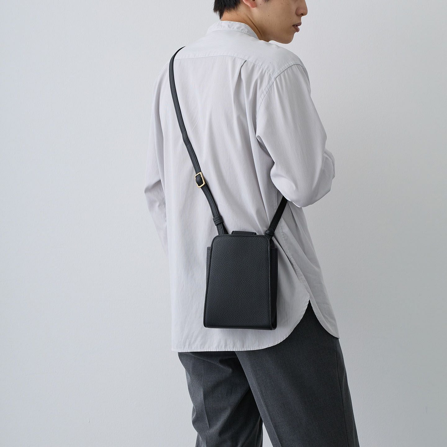 ハイクオリティで丈夫な「モノづくり」を心掛けている職人・萩原新也が、使う人たちに寄り添って素敵なアイテムを届けている、ブランド『Bush Clover』のポシェット。スマートでスタイリッシュに魅せられるシンプルさを追求したミニマルな縦型のデザインと、曲線や丸みを施したソフトでカジュアルな印象が、ラグジュアリーなシュリンクレザー「トリヨンラグーン」による天然シボの魅力的な風合いと発色の美しい表情と、絶妙なバランスを引き立て合いながら洒落感あふれるアイテムへと昇華。性別も年齢も選ばずマルチに使える洗練された印象が、セレクトできる3色それぞれの個性とともに、自分を輝かせる相棒のように気分を上げてくれる。