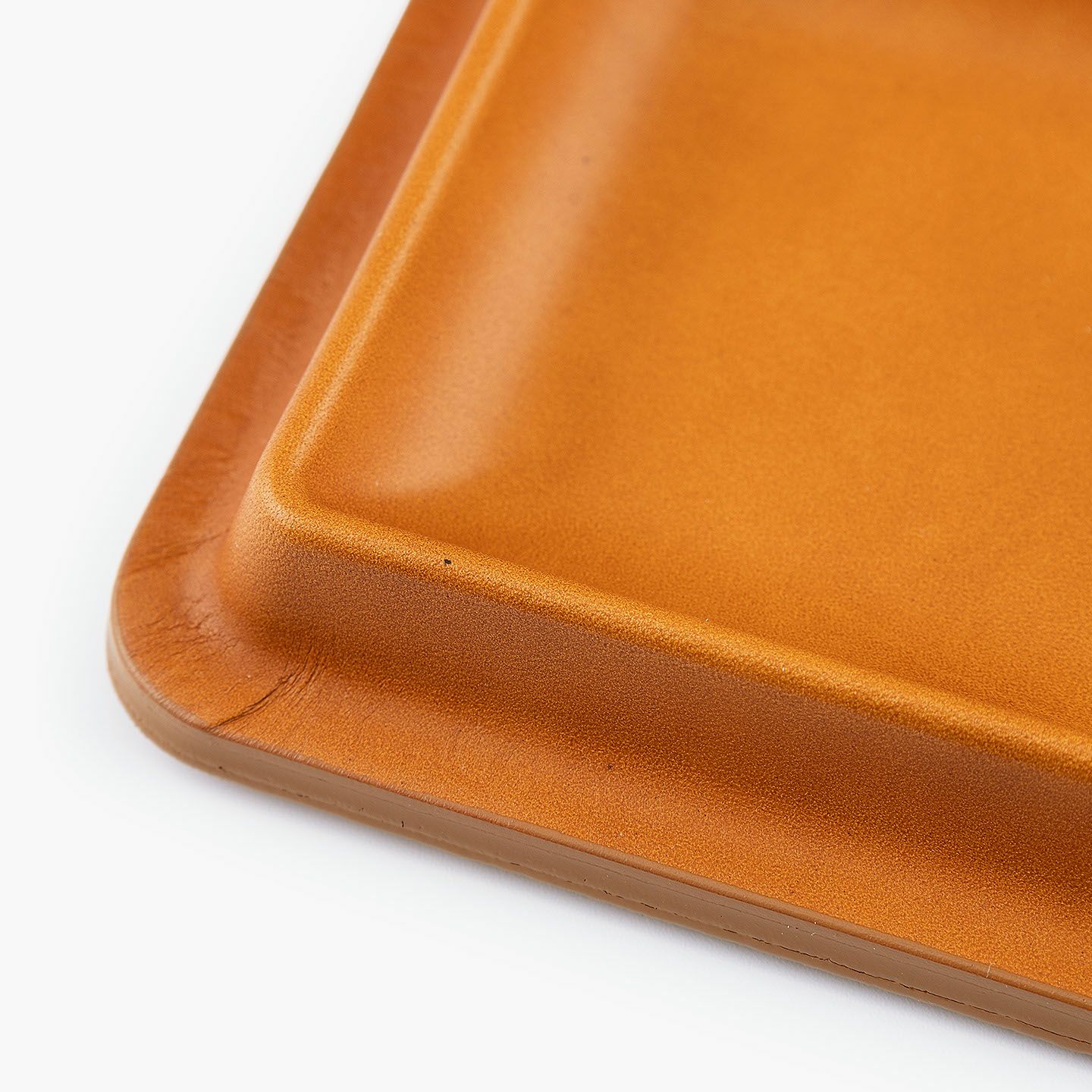 日常的に使っている大切な物を、収納して仕舞うのではなく、手が届きやすく目が留まりやすいスペースに置いておける、立体的でシンプルなデザインのトレー。マテリアルの「牛ヌメ革」は、デニムのように深みのあるBlue・ナチュラルな雰囲気を醸すCamel・上質な高級感を漂わせるBrown・クールな洒落感あふれるBlackの4色から、自分の好みや置く空間に合わせてセレクトできます。また、このSサイズの他に、ペントレーやメガネ置きに最適なMサイズ・スマートフォンもキレイに置くことができるLサイズもラインナップ。各サイズとも厚さが同じで、長さも共通している組み合わせもあるので、用途に合わせてサイズ違いで揃えて使えば、さらに空間をお洒落にアップデートできます。