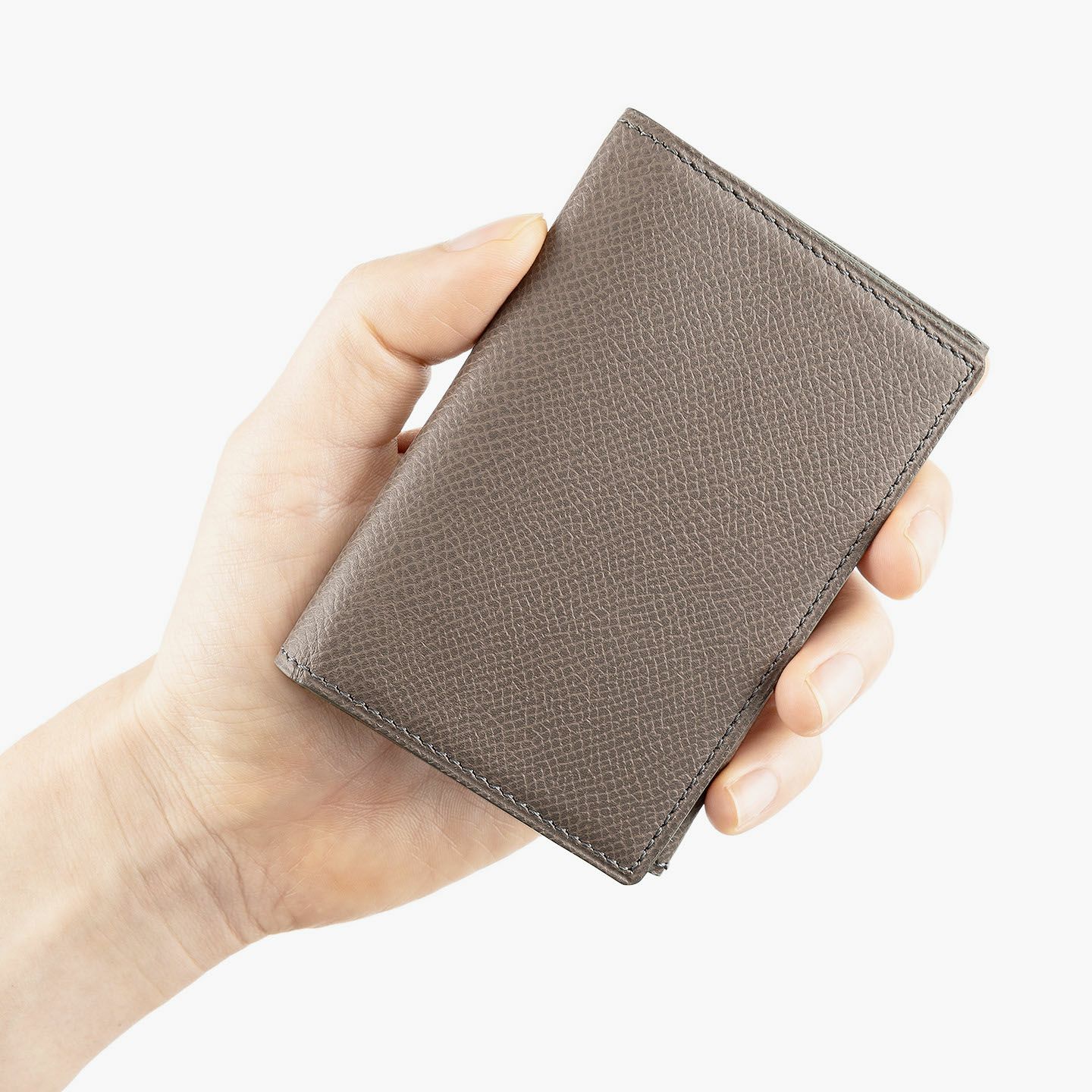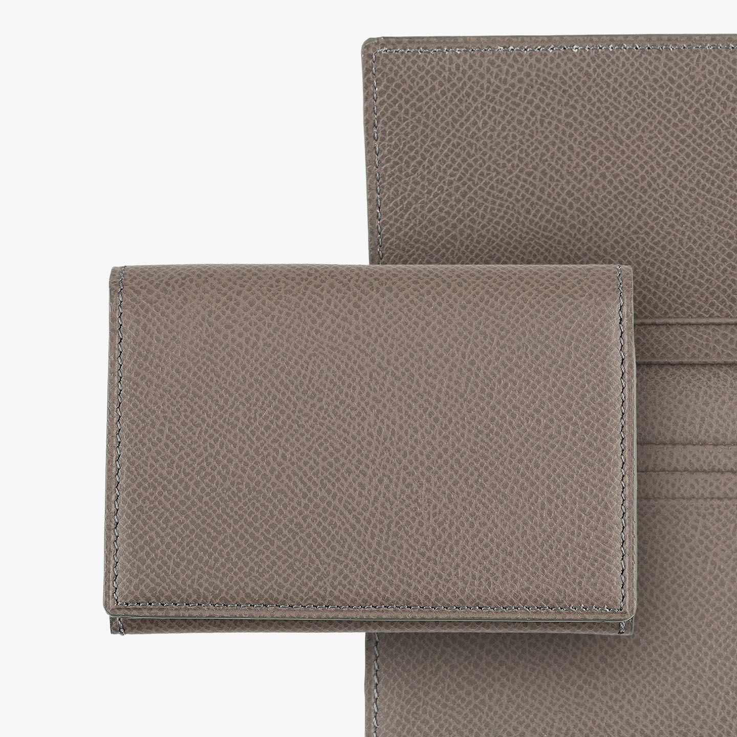 日本独特の高度な伝統技法である風琴マチを、2つ重ねた山型(シェブロン)のデザインが、アイテムの象徴になっているシェブロンカードケース。シンプルな装いの外装とエレガントな佇まいの内装には、小石模様の陰影を想わせる細かな型押しが施された、フランス・アース社製の「ダービー」を採用。ヨーロッパの有名老舗メゾンにも人気がある素材で、マットな表情でハリ感もあり、小キズ・汚れが目立ちにくく水分に強いのも魅力。名刺の端が折れる心配のない、アコーディオンの蛇腹のような独特の意匠と、美しい発色が醸し出す上質な高級感が、ひとつ上の大人のアイテムとして、ビジネスシーンなどをハイセンスに彩ってくれる。