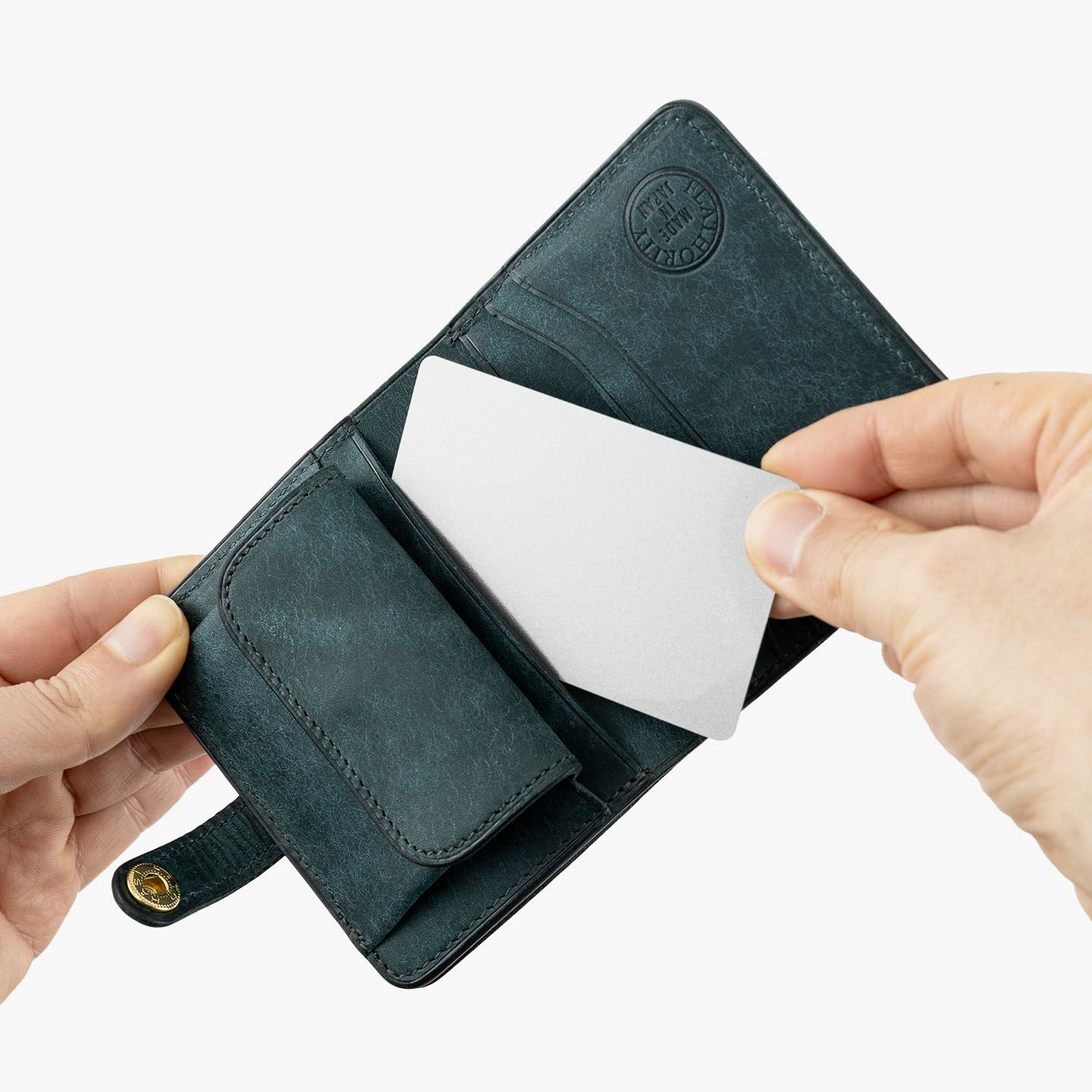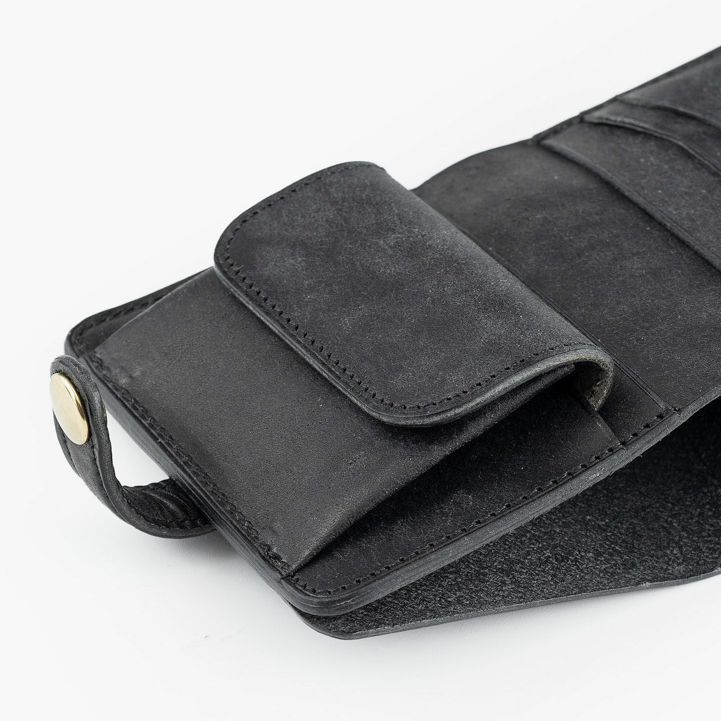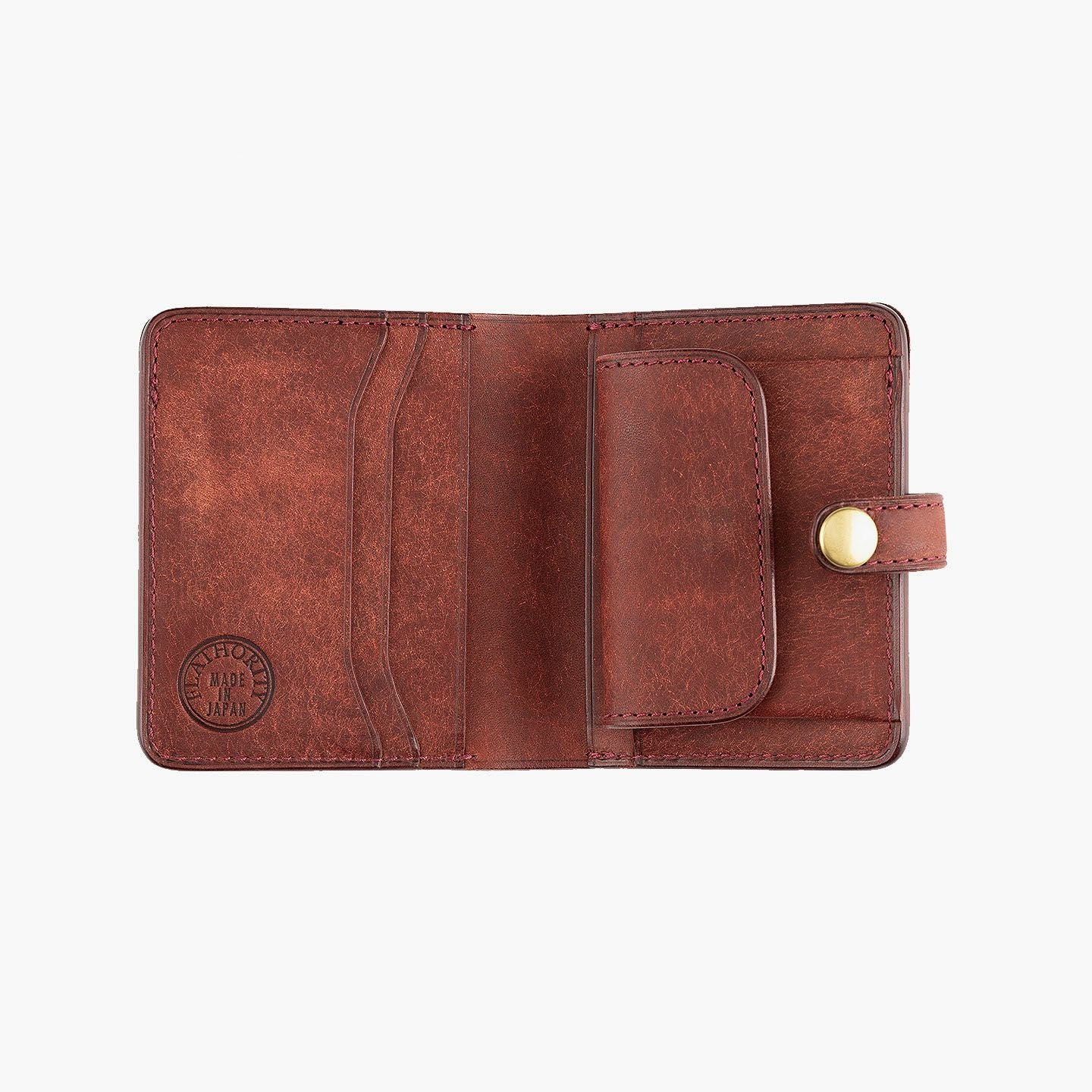 国内有名ブランドの鞄を製作し、数々のコンテスト受賞歴を誇る鞄メーカー岩瀬が、企画・製作すべてを一貫して行うファクトリーブランド『Flathority』のミニウォレット(ベルト付き)。まるで和紙のような独特の味わいが魅力的な外装・内装の「プエブロレザー」が、ザラザラした独特の風合いからツルツルした美しいツヤ肌へと経年変化していく楽しさとともに、ベルトタイプのクラシックな感とふっくらフォルムのジェンダーレス感をさらに引き立て、革小物としての価値をより一層アップデート。紙幣を折らずに収納できる限界までコンパクトにしたオールインワンのサイズ感が、他では感じられない軽快な使い心地を奏でてくれる。