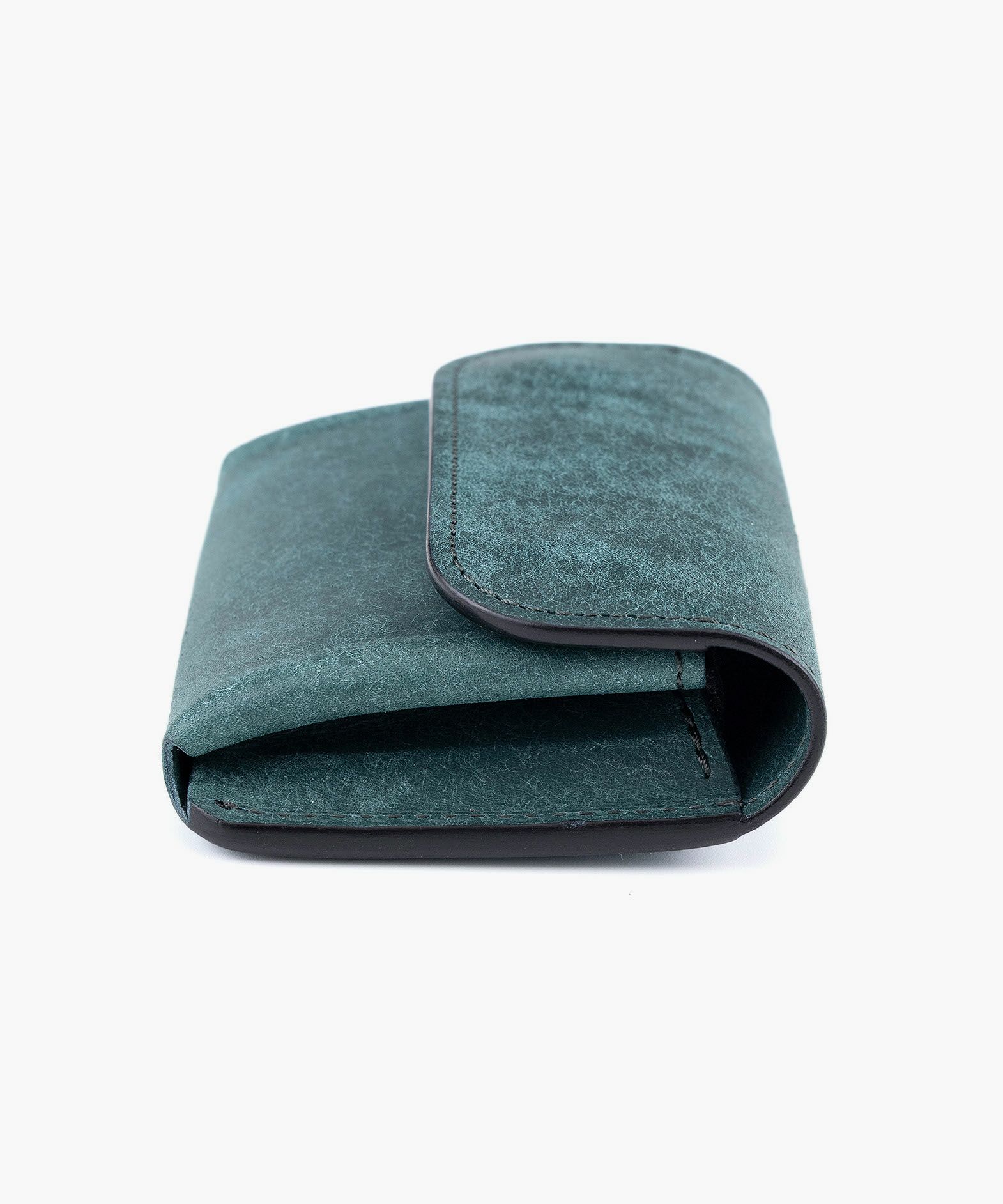 FlathorityとWILD SWANSの手によって生まれたフラップ付きコンパクトケースは、ミニマルな見た目ながら、日常使いにちょうどいい実用性を備えたレザーアイテムです。メインのフラップポケットにはカードや折り畳んだ紙幣、小銭をまとめて収納でき、背面にはカード専用ポケットを装備。極小財布としても活躍するつくりで、他のアイテムと組み合わせても無理のないサイズ感に仕上げられています。素材には、イタリア・バダラッシィ・カルロ社による高級レザー「プエブロ」を採用。和紙のように起毛された独特の風合いは使い始めはざらつきがありながら、使い込むうちにオイルが馴染み、自然な艶と深みが現れる豊かな経年変化を楽しめます。Gray、Green、Ortensia、Camelの4色展開。飾りすぎず、それでいて革の魅力を確かに感じさせてくれる佇まいは、コンパクトであることを忘れるような存在感を放ちます。毎日の所作の中で静かに寄り添う、手のひらサイズの機能美です。