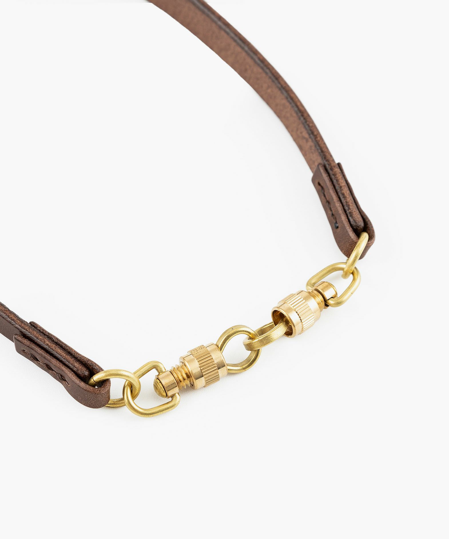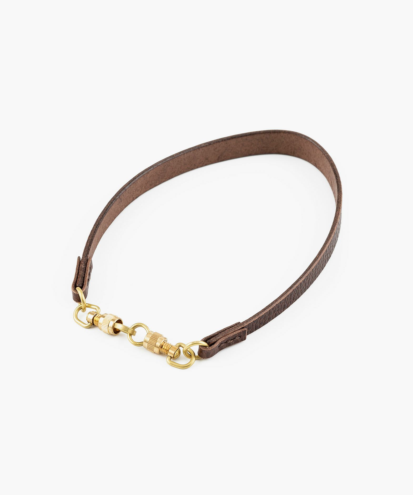 巾着バッグ“AKATSUKI”に装着することで、ハンドバッグやショルダーバッグのように使うことができる、巾着バッグ“AKATSUKI”用アタッチメントストラップ。本体の巾着バッグと同じく、ブラック・ダークブラウンの2色から、スムース・型押しの2タイプと組み合わせてセレクトオーダー。カジュアル感のある革紐ではなく、ストラップを手持ちハンドルとして扱えば、フォーマルな場面にも似合うハンドバッグのようなエレガントな印象に。ストラップを革紐の結び目と繋げて長くすれば、ショルダーバッグの肩当てみたい使いこなせて斜め掛けすることも。このアタッチメントストラップを装着することで、巾着バッグの概念を超えた、さまざまなシチュエーションで持ち歩ける機会を広げてくれる。