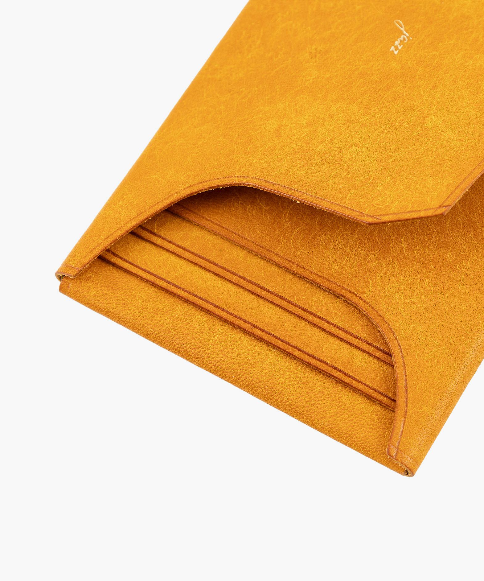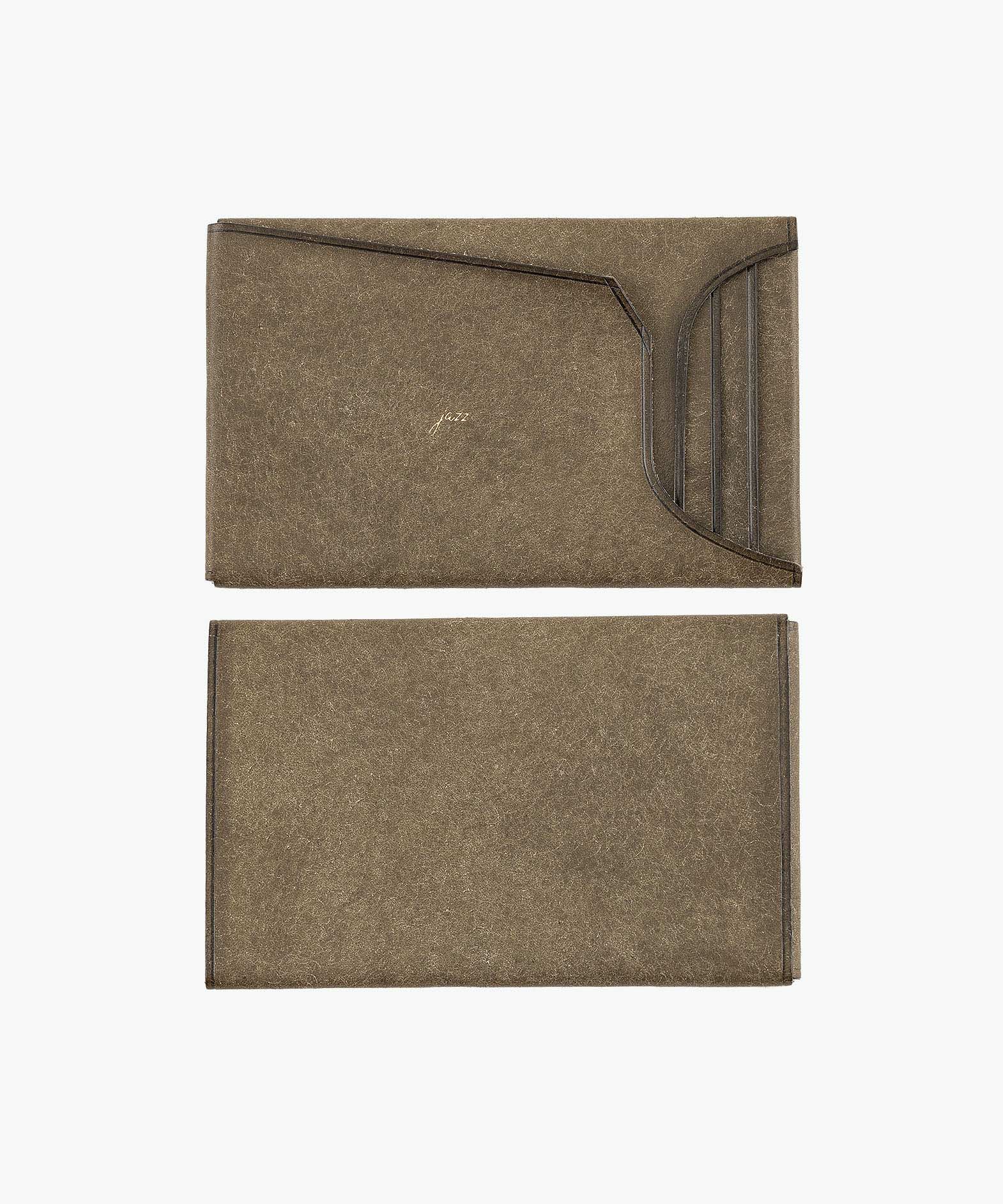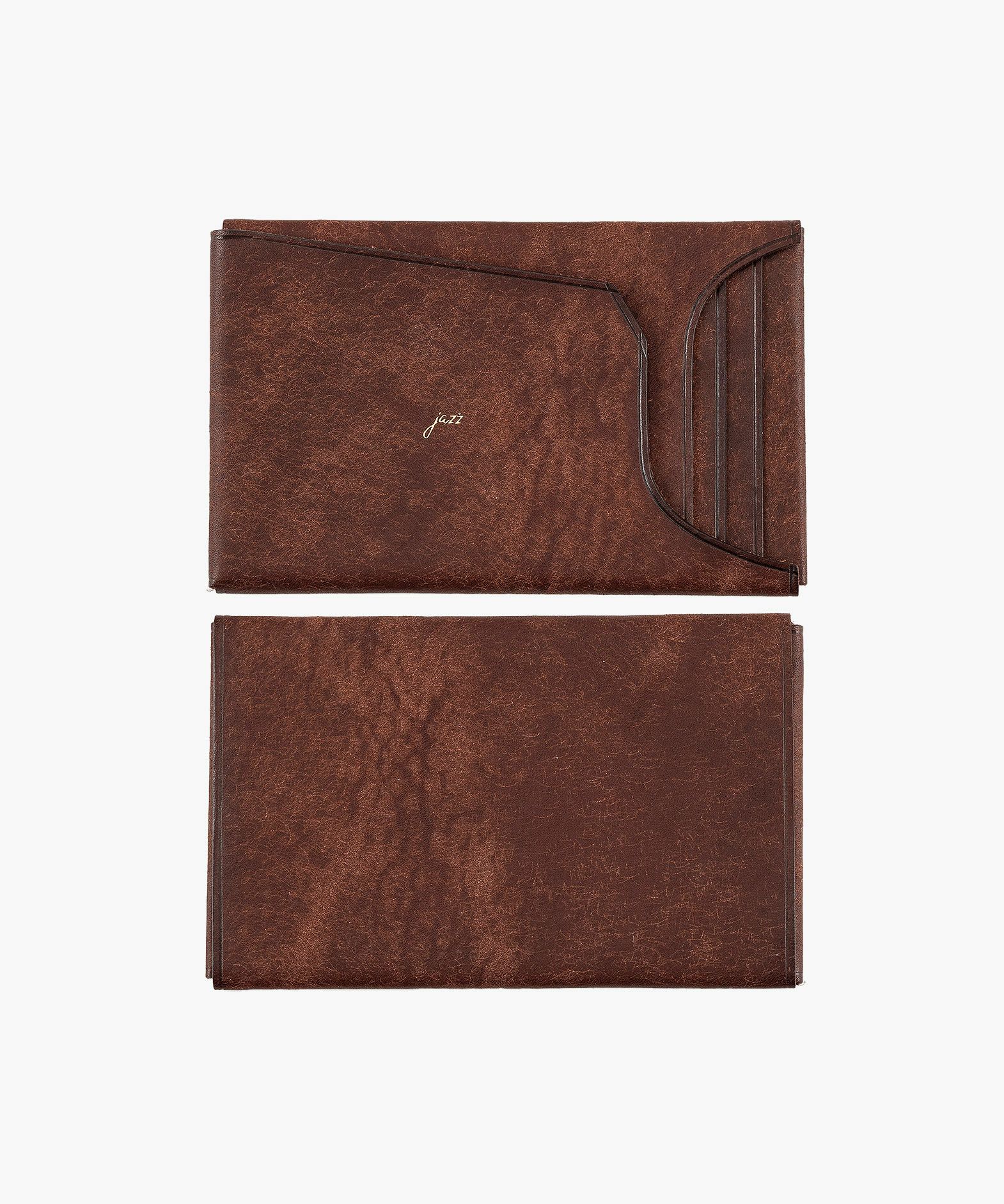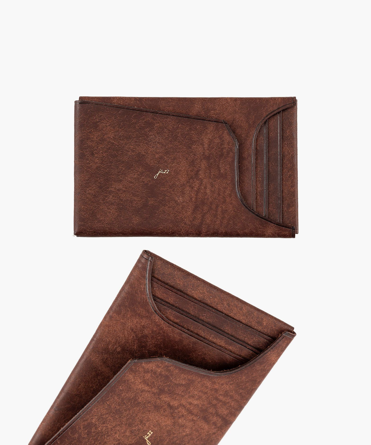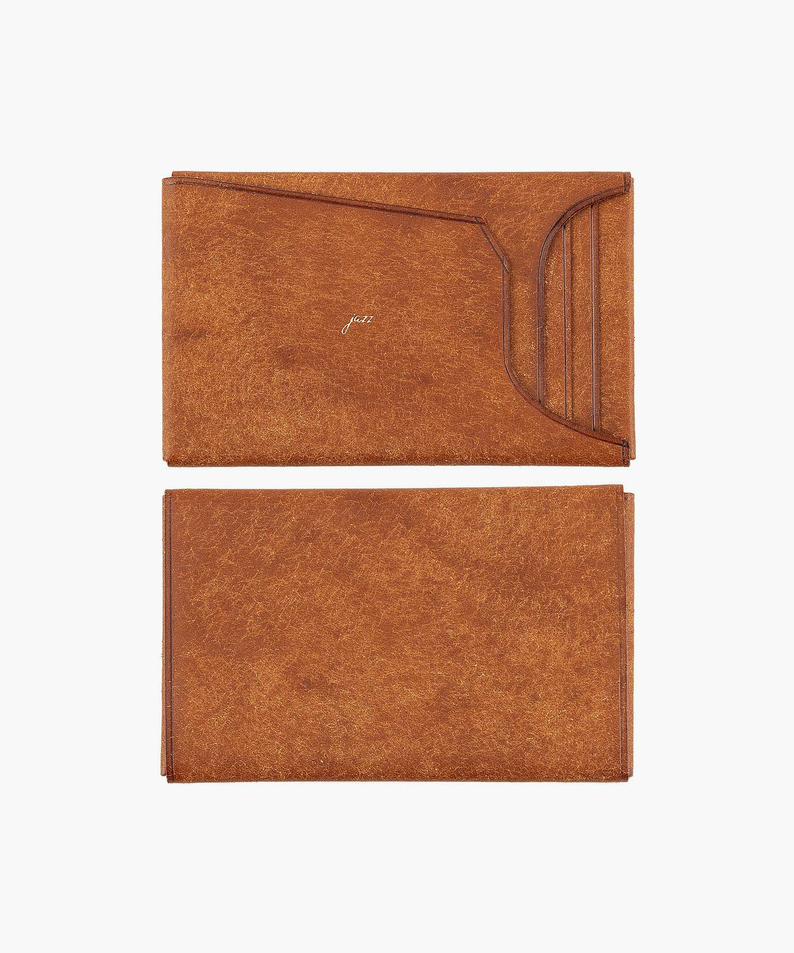 和紙のように表面を起毛させた独特な風合いが魅力的な「プエブロ」の一枚革を、折り紙のように折り畳んで独創的なデザインへと昇華させている、名刺入れ“リスカム 1.0”。サラザラした肌触りから、使い込むほどに美しいツヤ肌になっていき、ビンテージ感が漂う経年変化を楽しめる。丁寧に総手縫いを施しながら、あえて縫い目を見せないようにすることで、洗練されたスタイリッシュ感も創出。胸ポケットにも軽やかに収まり、スマートに使いこなせる所作は、さまざまなビジネスシーンで洒落た印象へ。5色(Cognac・Grigio・Napori・Black・Tabacco)からセレクトでき、カードケースとしても使えるので、自分用としてはもちろん、大切な人へのプレゼント用としても、ひとつ上のセンスを発揮させてくれる。