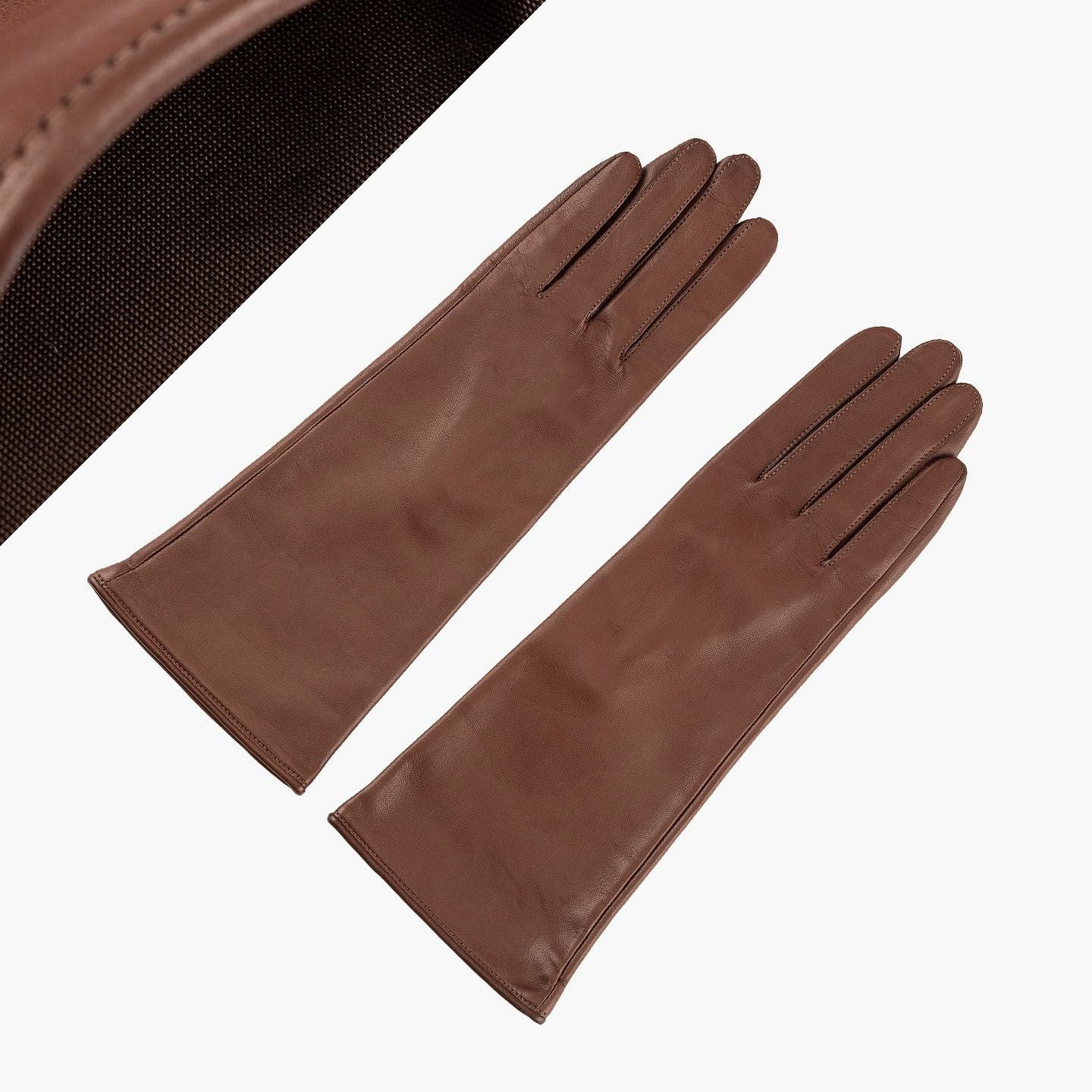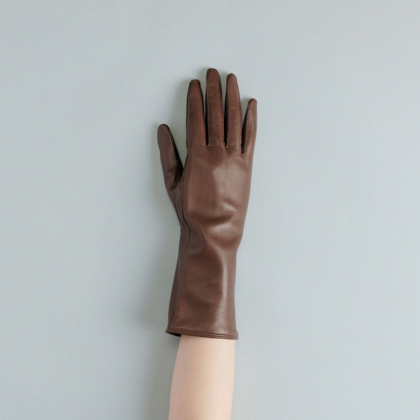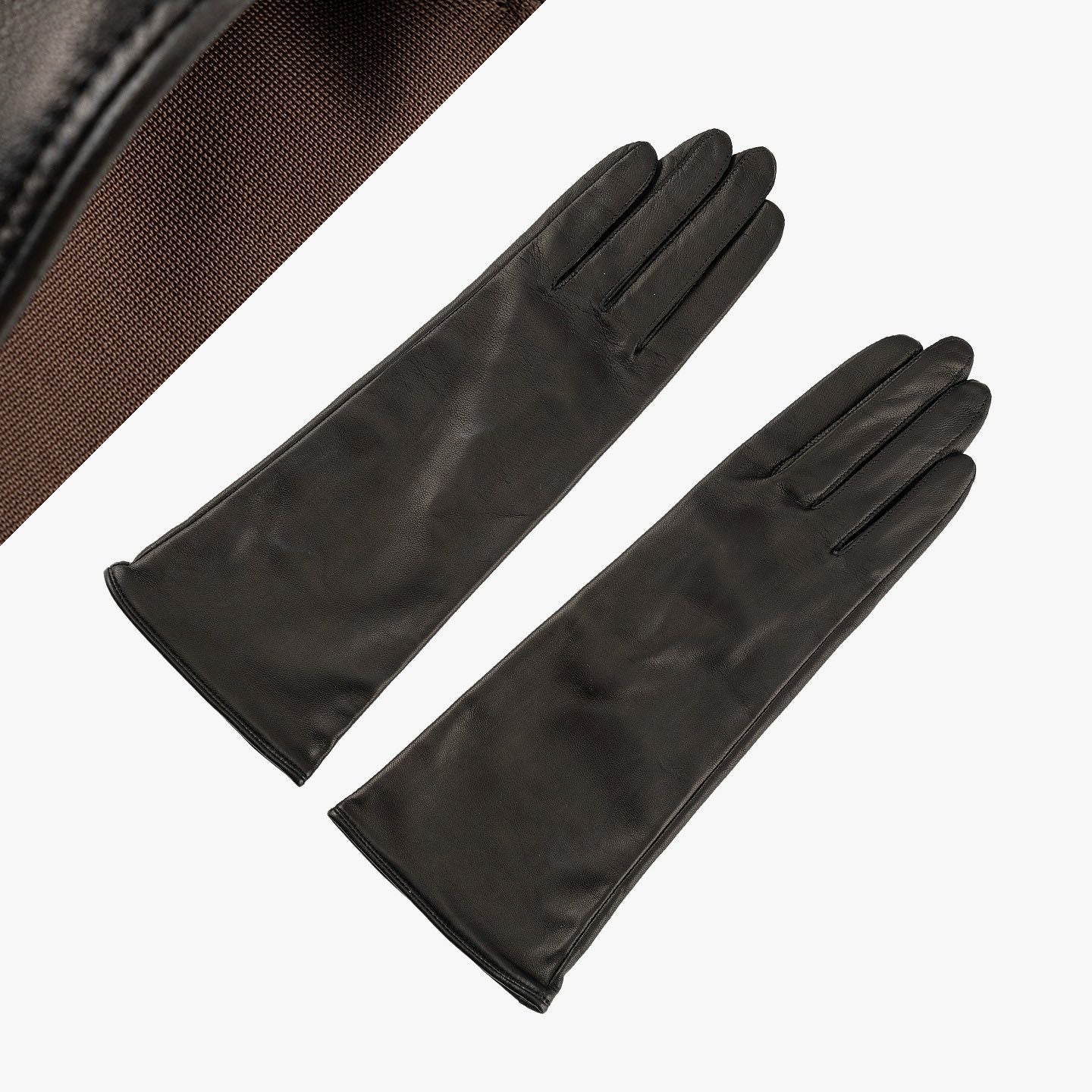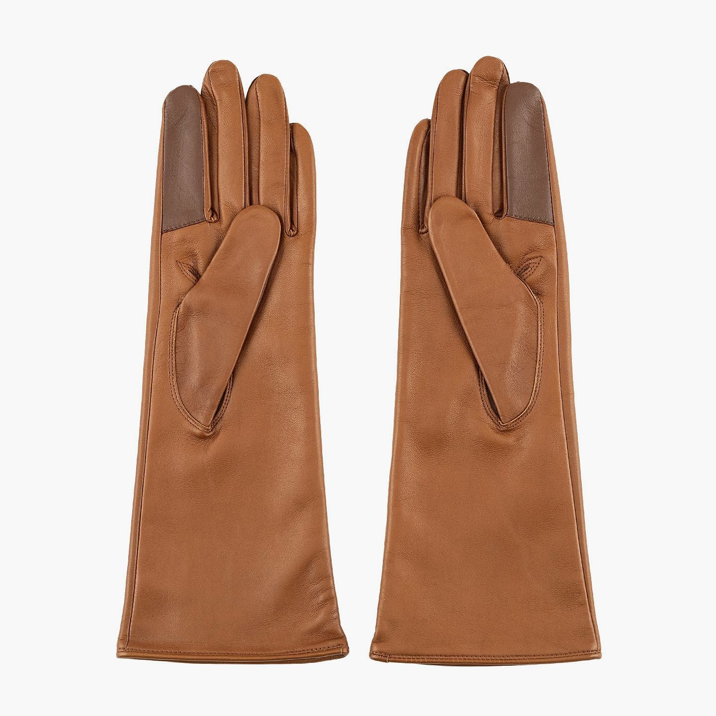イタリア・ポルトラーノ社による発色の良い羊革「イタリアンラムレザー」を、ロングレザーグローブとして贅沢に使用した、イタリアンシープ手袋 “Long-Touch Panel”【WOMEN】。柔らかく滑らかでモチモチとした触り心地と、使い込むほど手に馴染んでいくことも魅力。手のひらサイドの親指・人差し指には導電革を施しているので、装着したままスマートフォンなどのタッチパネル操作も可能。裏地には、手をスムーズに入れやすく肌への刺激も少ない、吸湿発熱効果のあるベンベルグを採用。“ピケ縫い”という指先を長くキレイに見せる、こだわりの縫製を用いて日本で丁寧に仕立てることで、スッキリとした細身のルックスで女性の手をさらに引き立ててくれる。