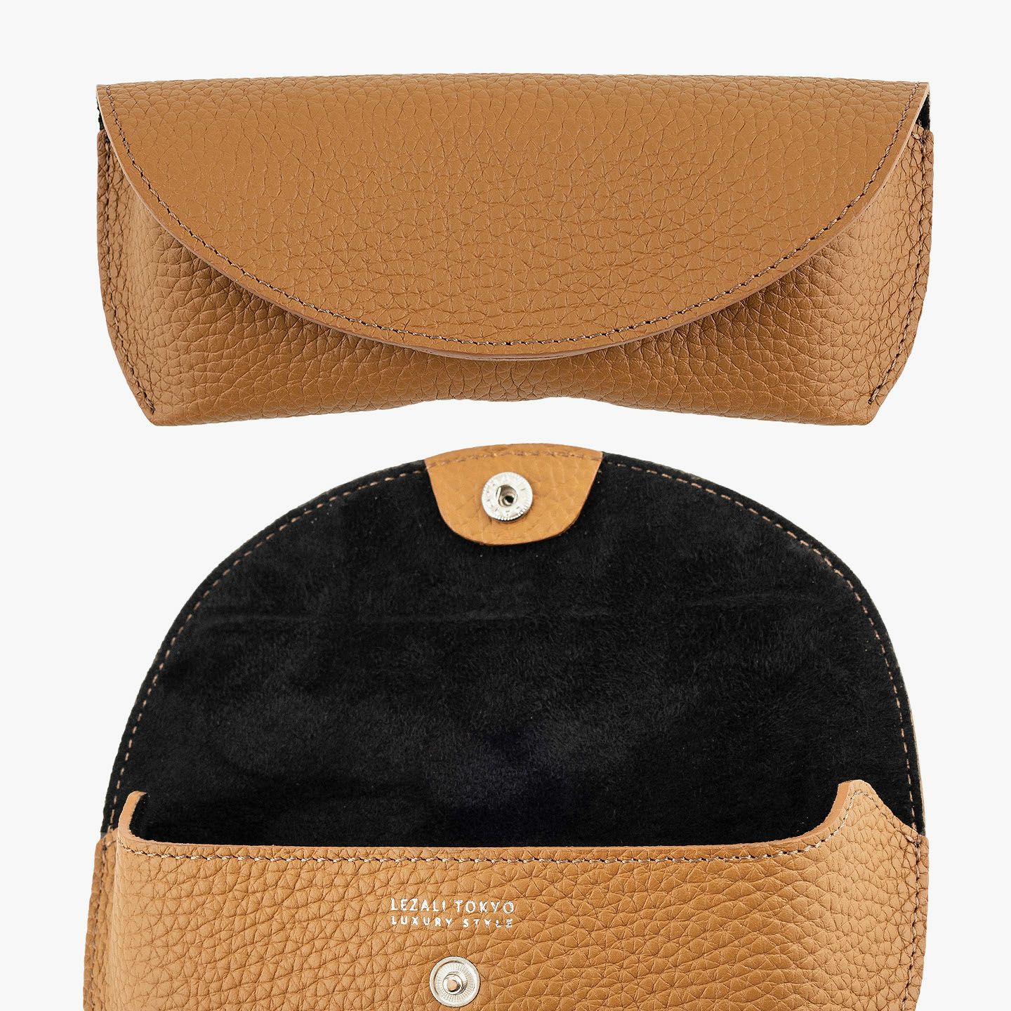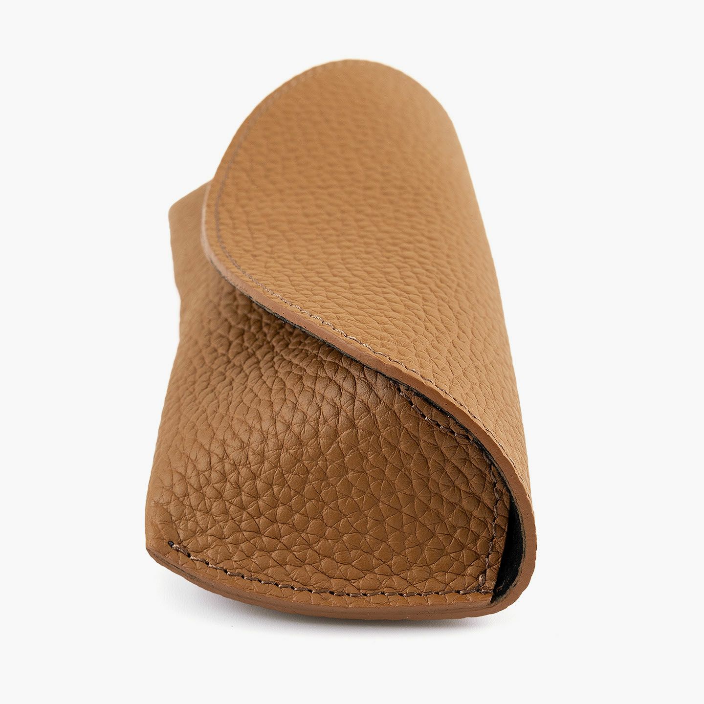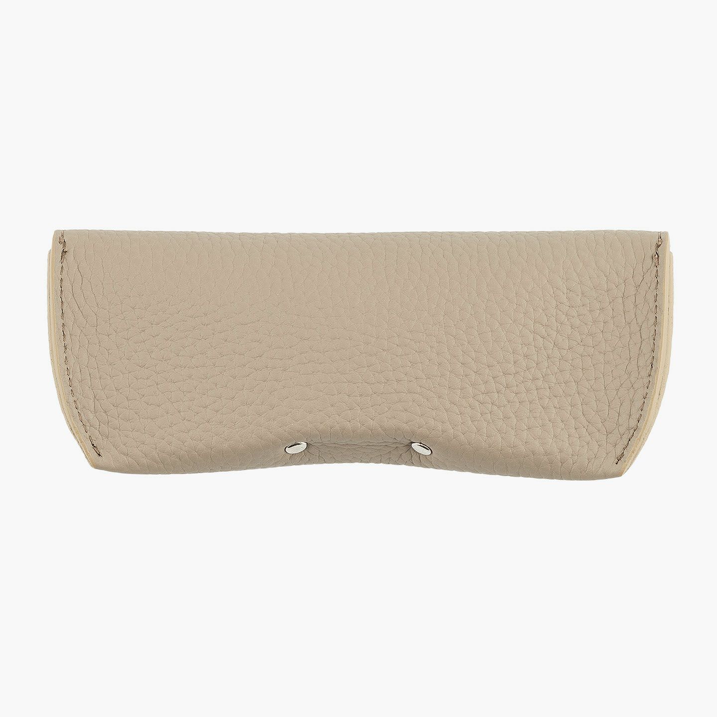 シンプルなフォルムが、素材の魅力を引き立てるオールレザーのメガネケース。外装には、深く自然なシボと美しい光沢を湛えた、厚みのあるエンボスレザーを贅沢に使用。重厚感と高級感を兼ね備えた革が、使うほどに愛着を深めてくれます。内装にはピッグレザーを合わせ、滑らかな手触りとメガネの保護性を両立。さらに、ケース内部には硬めのレザー製鼻あてを備え、型崩れや傷つきを防ぐ設計で実用性も十分。カラーバリエーションは、シックなブラック、上品なトープ、遊び心あふれるスカイ、大人の品格漂うゴールドの4色。いずれも落ち着きのある発色で、性別や年齢を問わず愛用いただける洗練のカラーラインアップです。国内老舗タンナーによって仕上げられたこのエンボスレザーは、一般的な1.5mm前後の革とは異なり、約2.0mm弱の厚みを確保。この“わずか0.5mm”が、仕上がりの印象を一段引き上げ、ペラつきのない堂々とした存在感を演出します。革の品質に一切の妥協なく選ばれた、こだわりの逸品です。