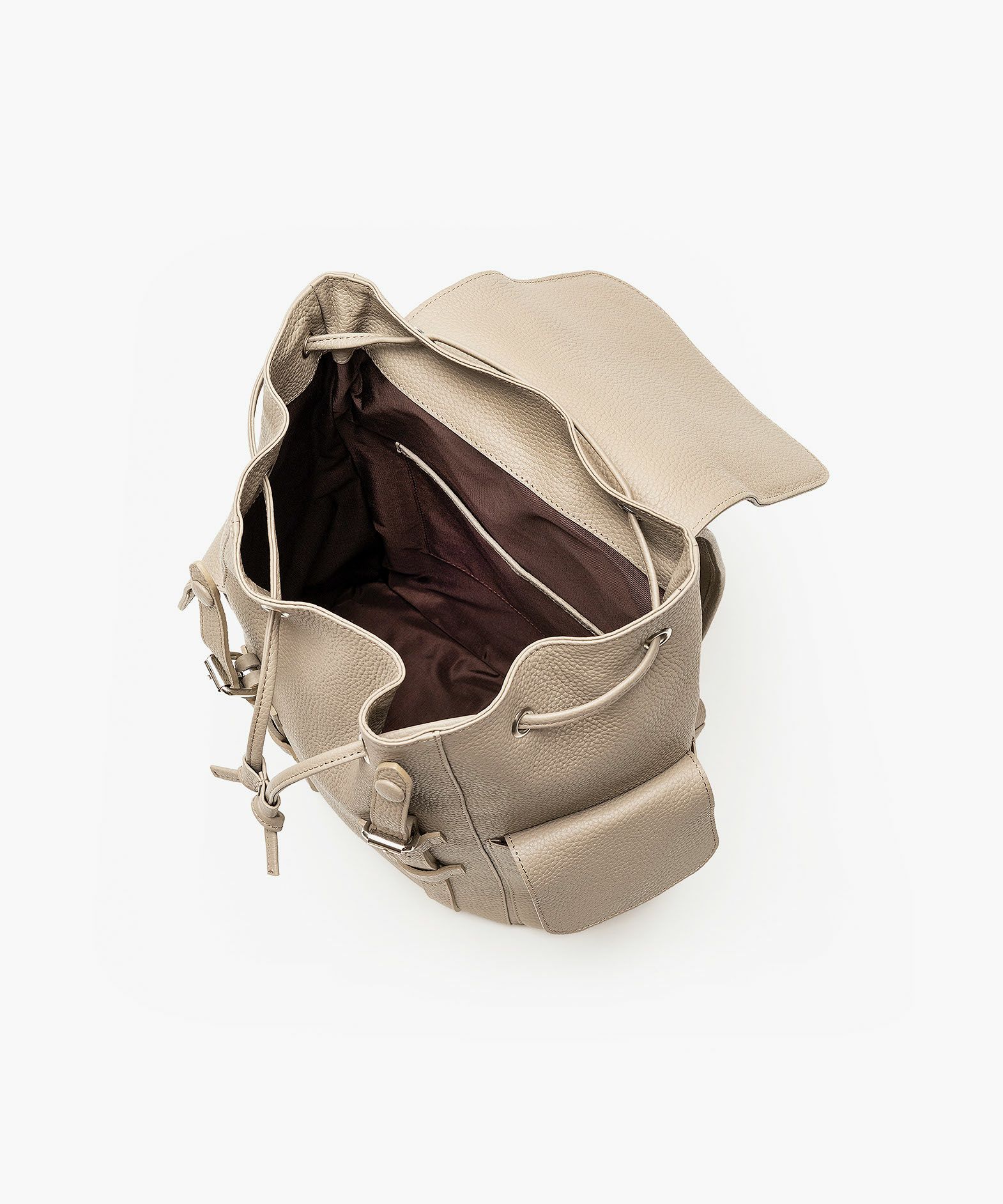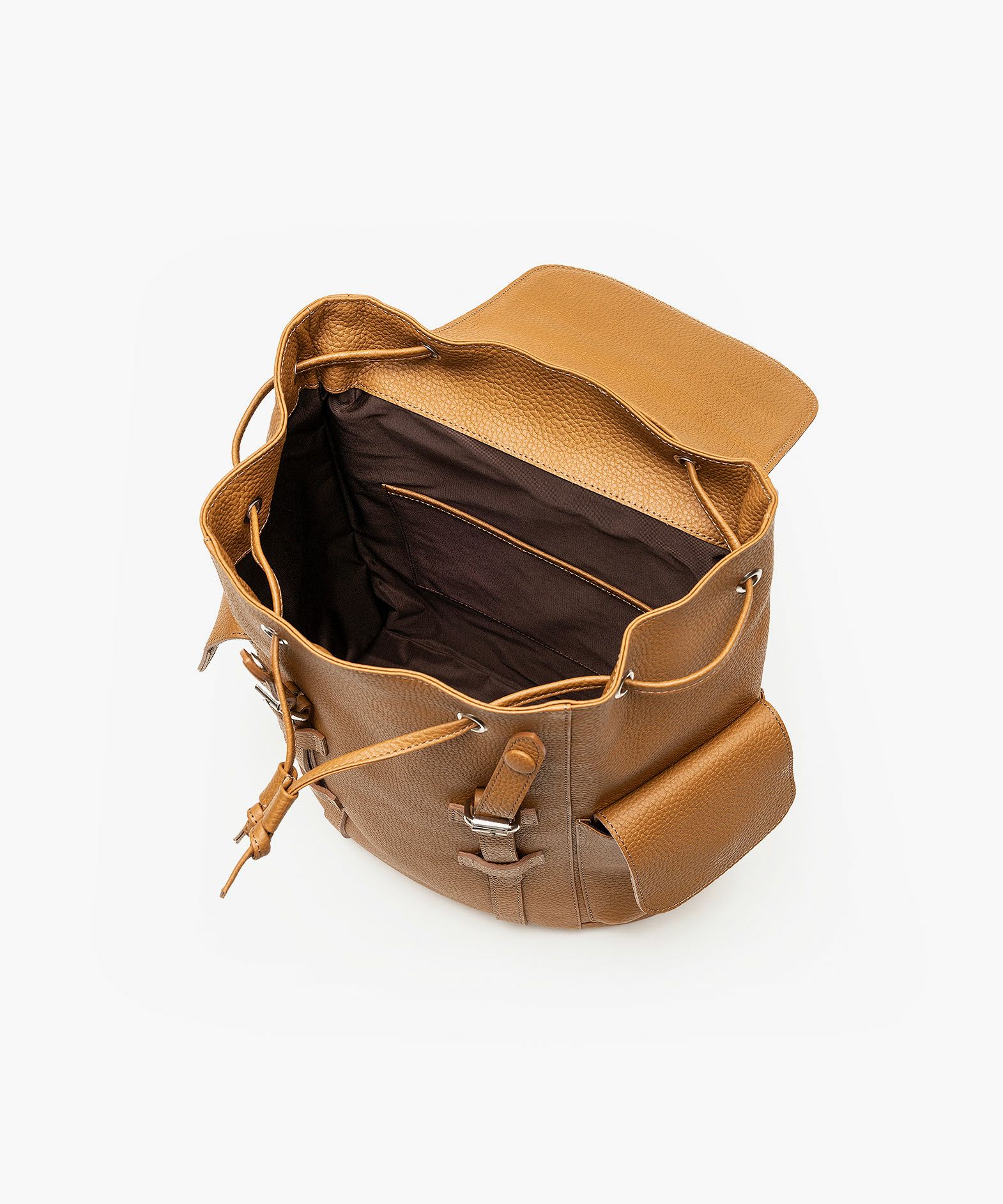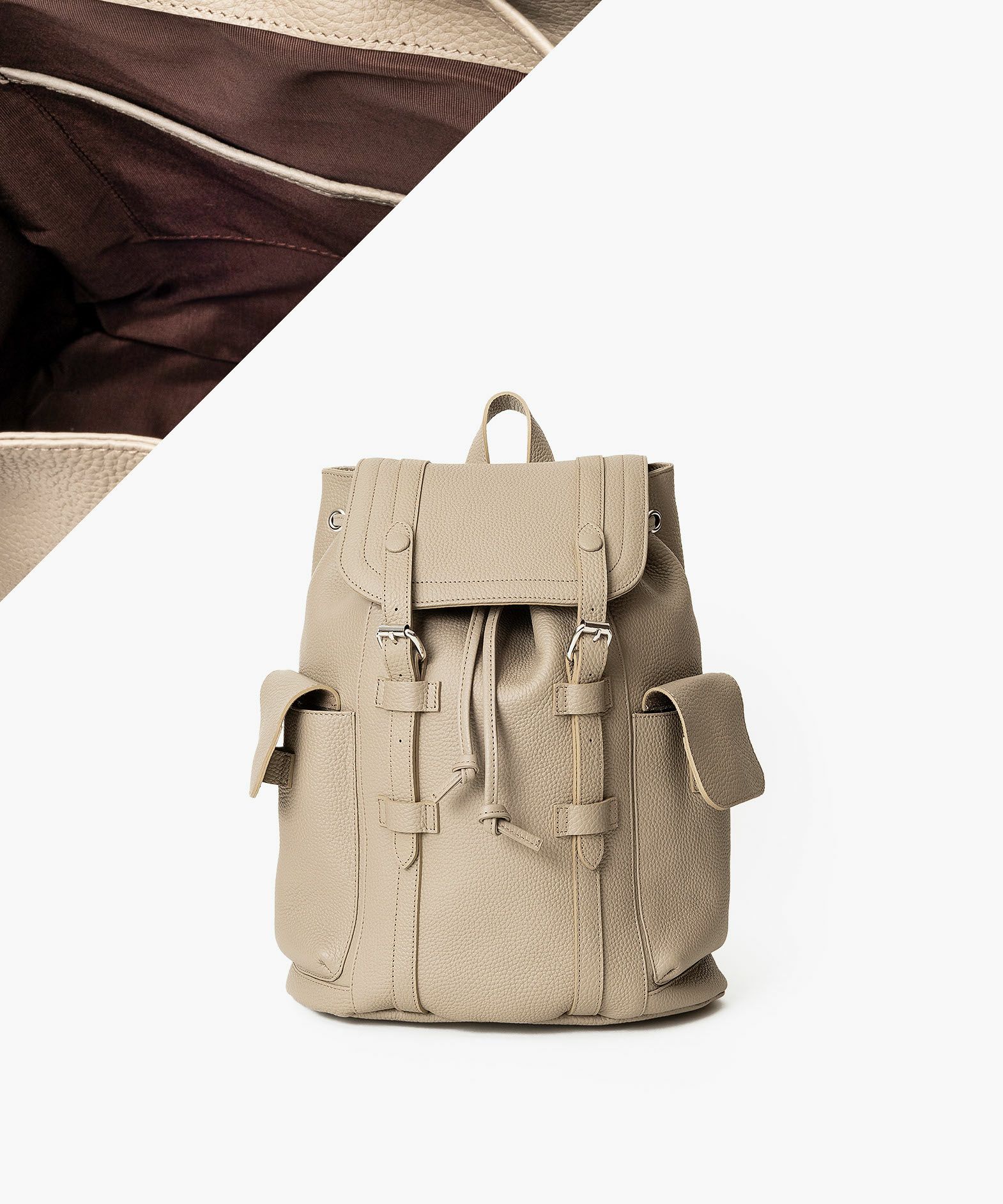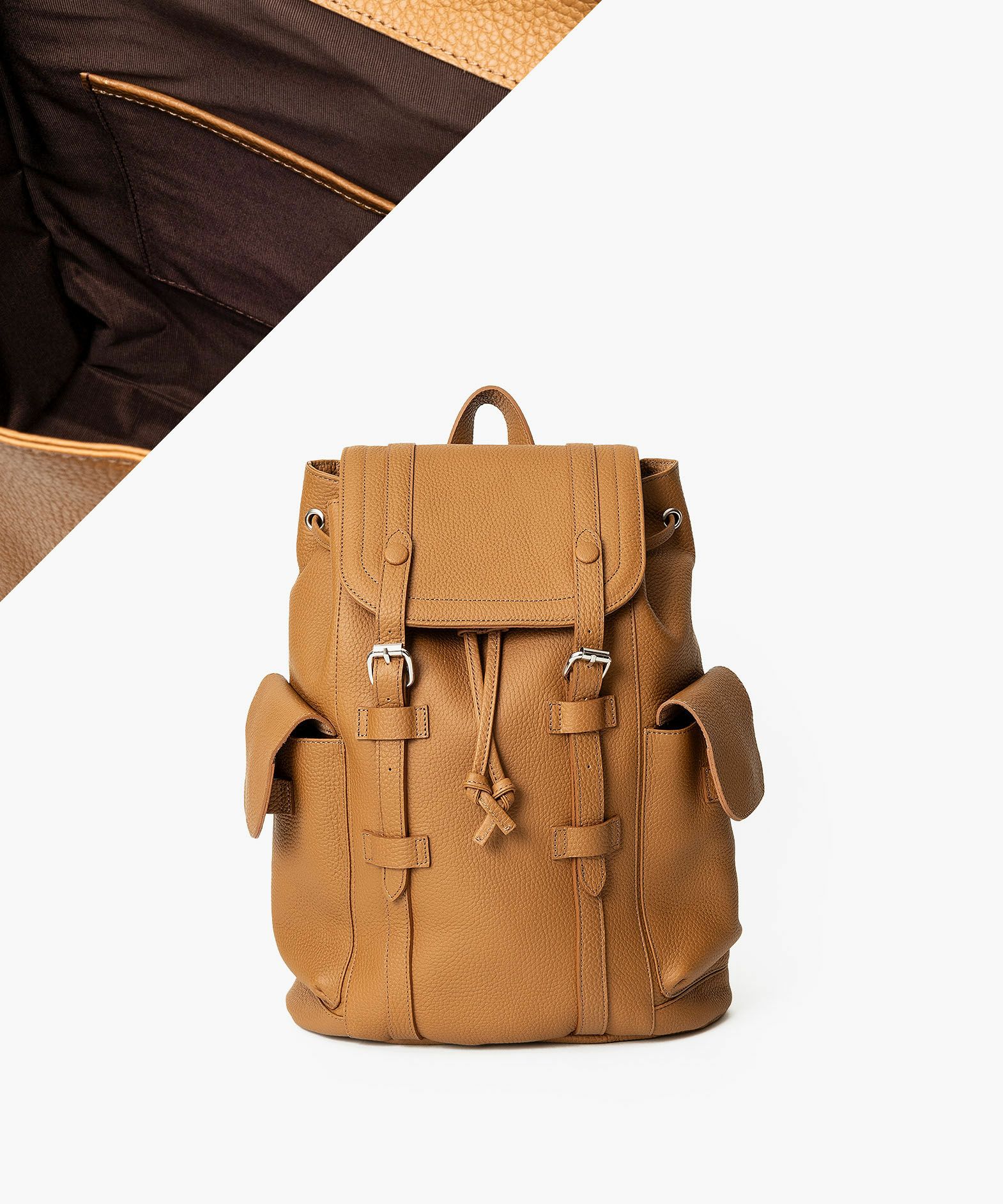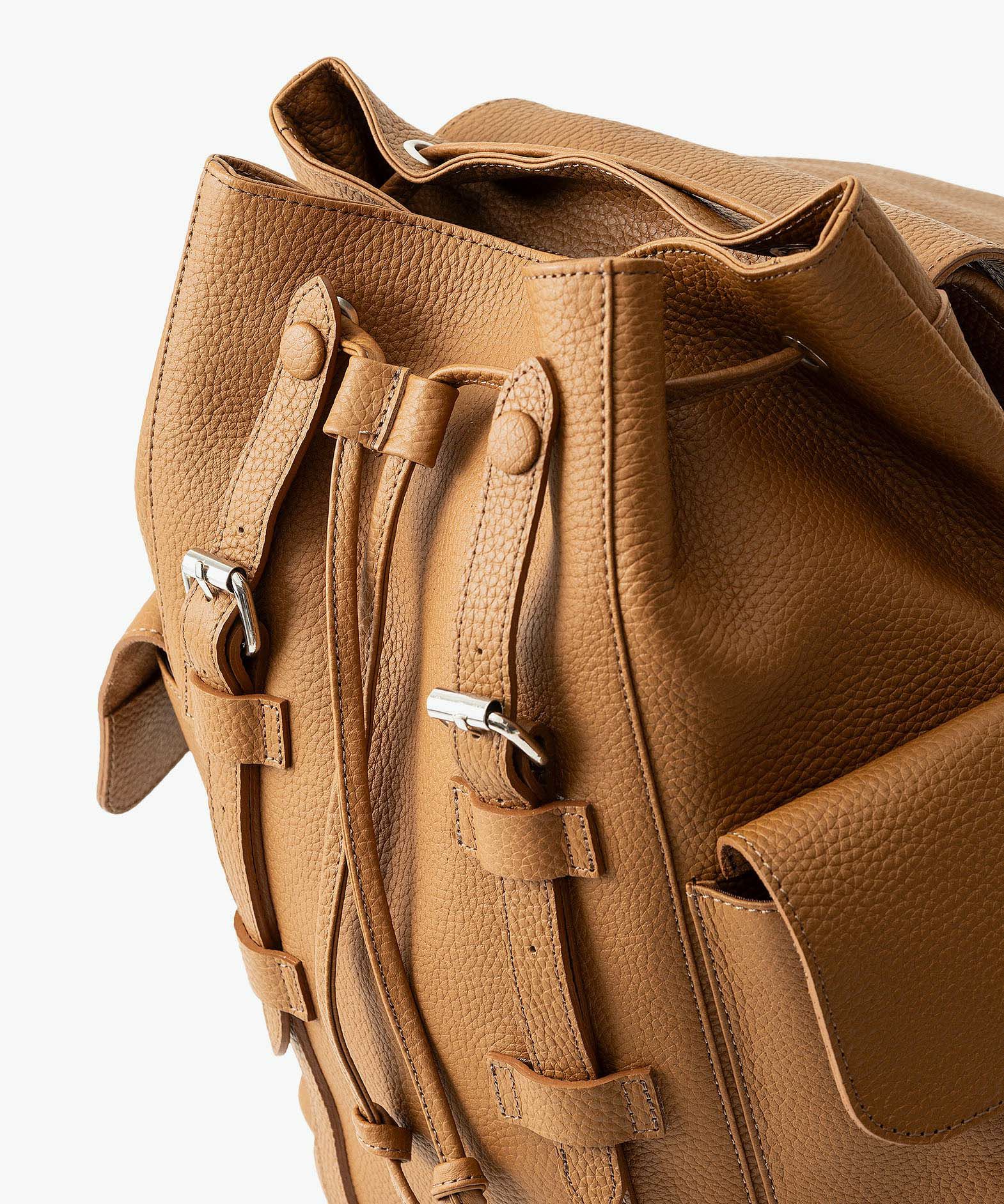 性別も年齢も問わず、オンでもオフでも合わせやすいので、幅広いユーザーが幅広いシーンで持ち歩ける、上質スタイルのデイパック。国内の老舗タンナーが仕上げた、気品あふれる外装「エンボスレザー」は、通常より革厚が0.5mmほど厚い20mm弱を採用し、贅沢なフルレザーとともに重厚感と高級感を創出。キズが付きにくく、水にも比較的に強いので、ラフな使い方をすることも。絶妙に組み合わせられた50以上のパーツで構成され、各パーツを職人の手で丁寧に仕上げているのも魅力。A4サイズを余裕で入れられる大容量設計と、巾着式の開閉によるオープンポケット1つのシンプルな構造で、ざっくりと荷物を収納できて出し入れも簡単。実用性にも優れる洗練されたデザインが、大人の感性を響かせてくれる。
