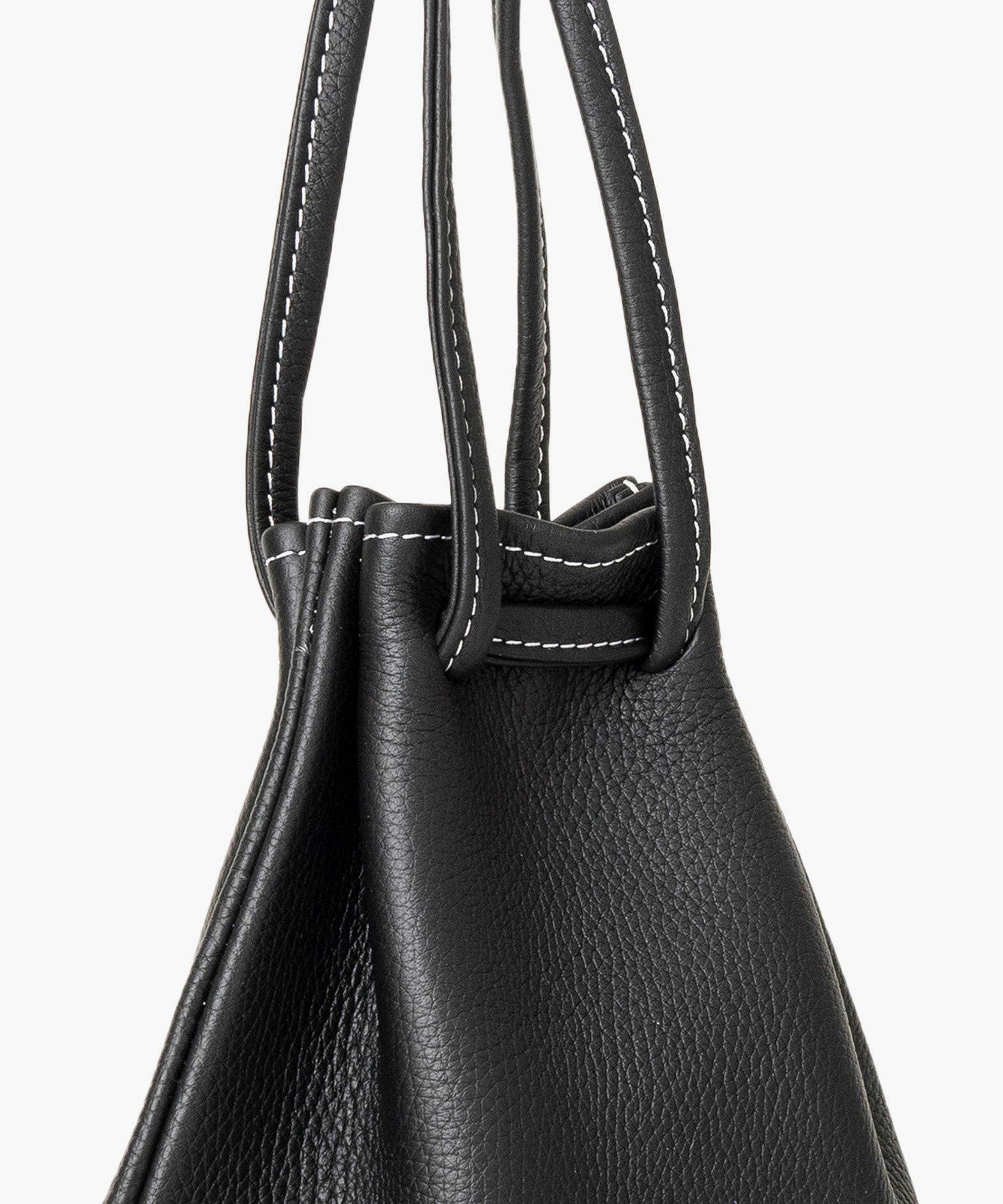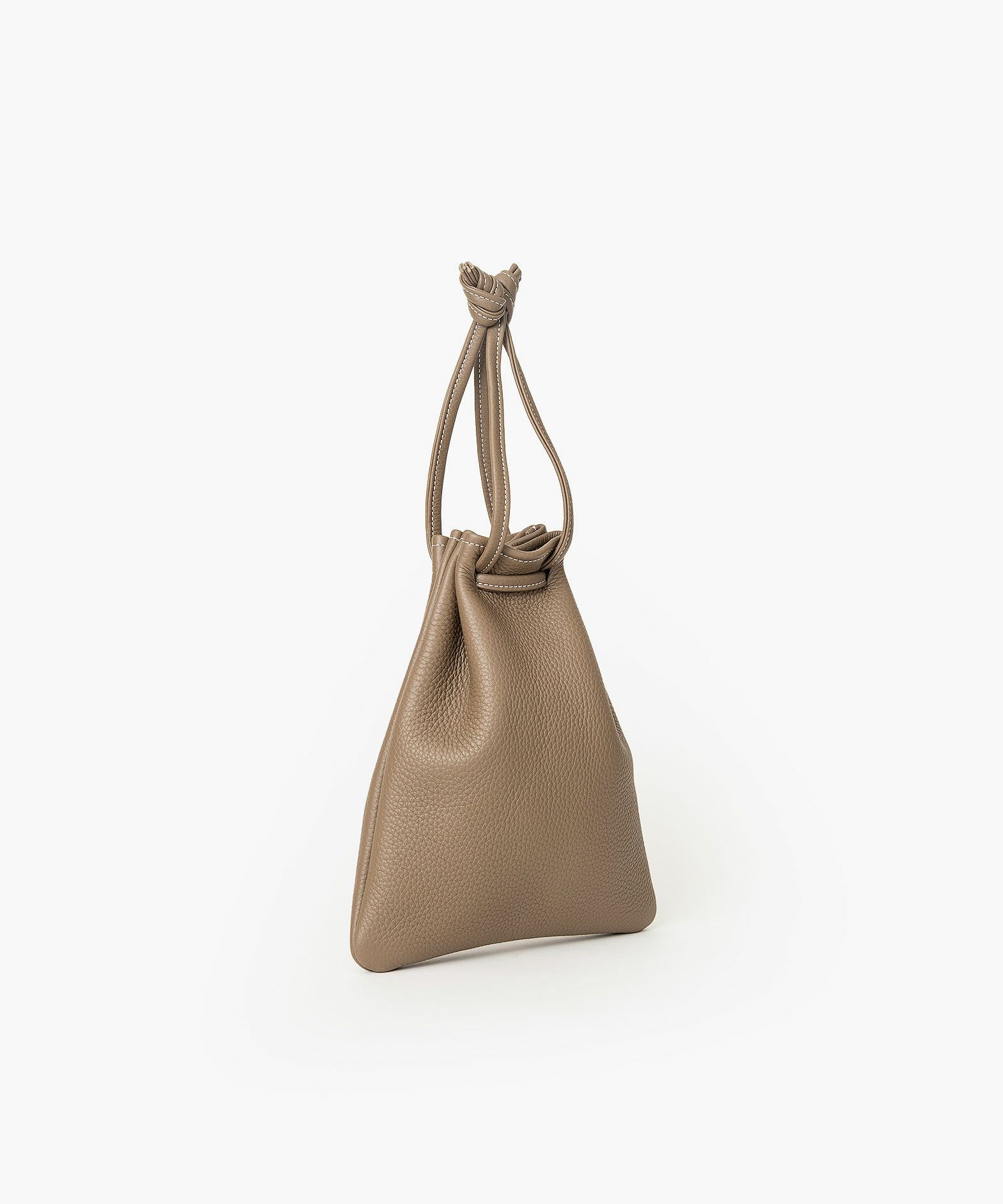 丸みを帯びた愛らしいフォルムから、小鍋を連想して名付けられた、汎用性が高く気軽に使いこなせる巾着“Cocotte”。誰もが知る高級ブランドにも扱われている、フランス・レミーキャリアット社製の最高級シュリンクレザー「トリヨンクレマンス」を採用し、あえて原厚で裏地を使わないことで、革本来の重厚感と質感を漂わせ、大きめの美しいシボで魅了。自然な柔らかさとモチモチとした質感も特長的で、使い込むほどに柔らかさがさらに増し、収納物を入れていないときには真っ平にすることも。柔らかみのある風合いを生かしたシンプルなデザインで、さまざまなスタイルに幅広く合わせられ、耐久性に優れキズも目立ちにくいのでラフな普段使いにも最適。紐まで同じ素材ですべて統一させ、エレガントな高級感を演出しながら、手軽に持ち歩いて親しみやすい相棒感ももたらしてくれる。
