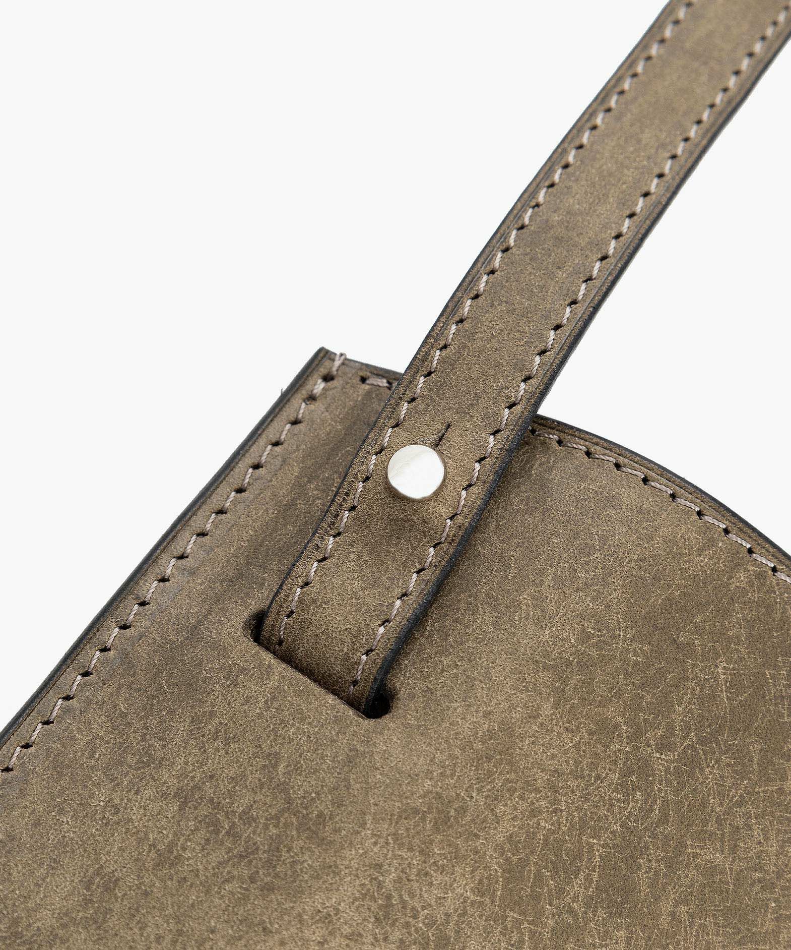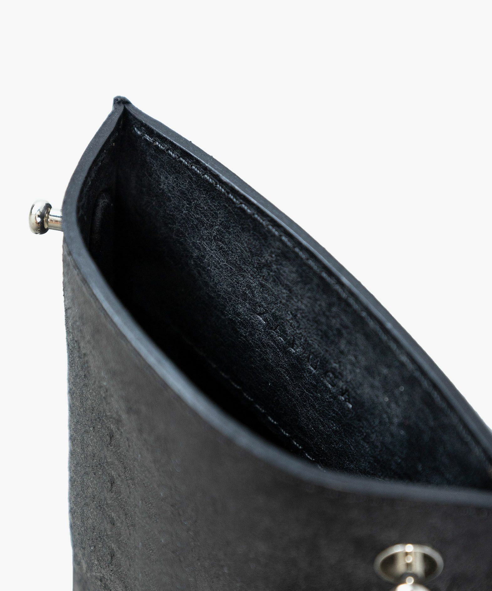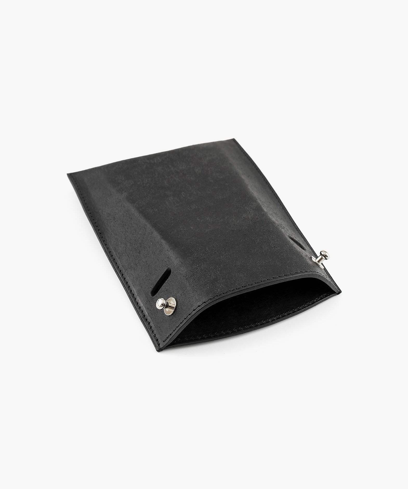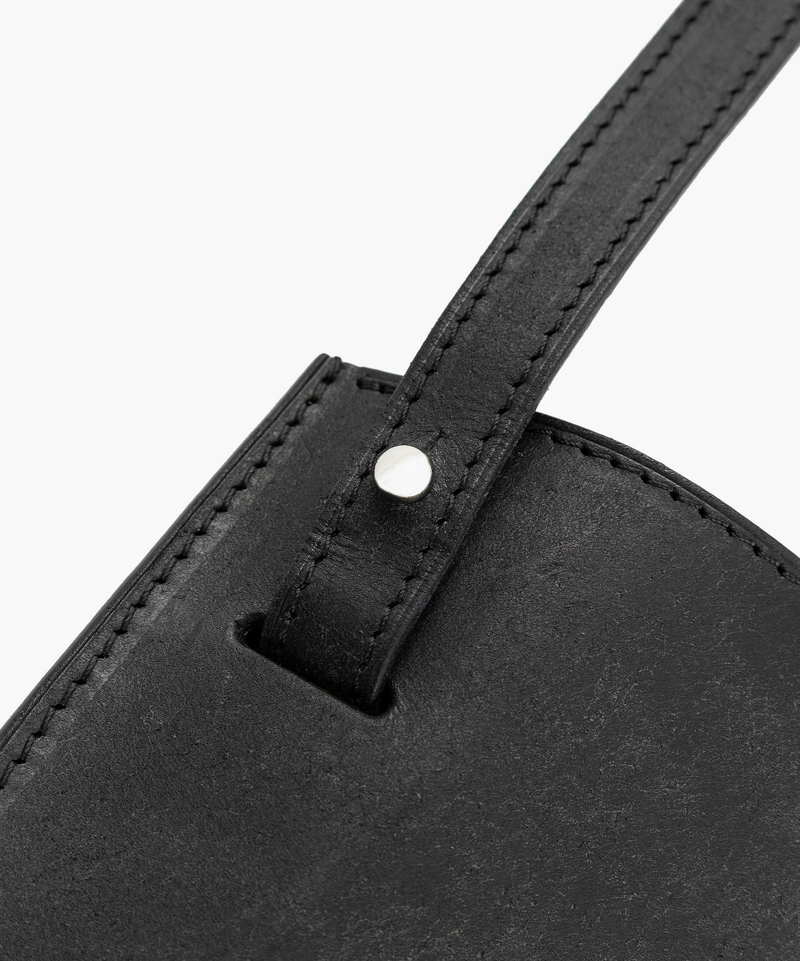 曲線の折れ目(=FOLD)が印象的なシルエットと、カブセを排したクール(=COOL)なデザインと使い心地から、2つを組み合わせた造語をアイテム名にした、スマホポシェット“FOLCO”。和紙のように表面を起毛させた独特の風合いが魅力的な「プエブロ」の一枚革を、前面と背面で形状を変えて縫い合わせ、独特の膨らみを形作った立体感を創出。2種類の芯材を組み合わせながら、裏面に少し溝を彫ることで、美しく柔らかいラインの折り目へと昇華。ショルダーベルトは、スッキリ感のあるギボシで接続させ、両サイドそれぞれで長さを調整することも。スマートフォン1台をスマートに収納できる、遊び心あふれる量産できない独創的なポシェットが、性別も年齢も問わず、すべての人たちを楽しませてくれる。